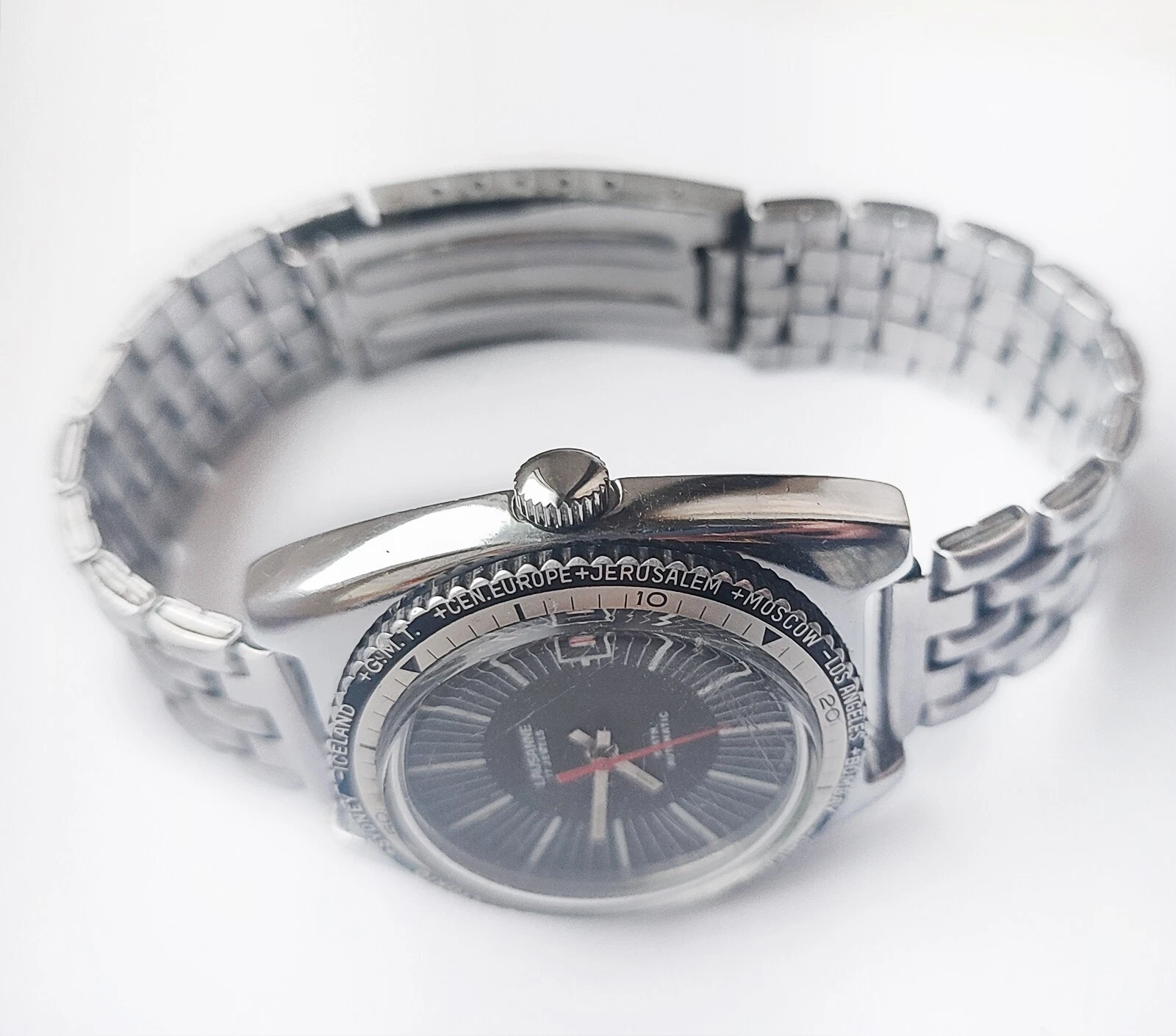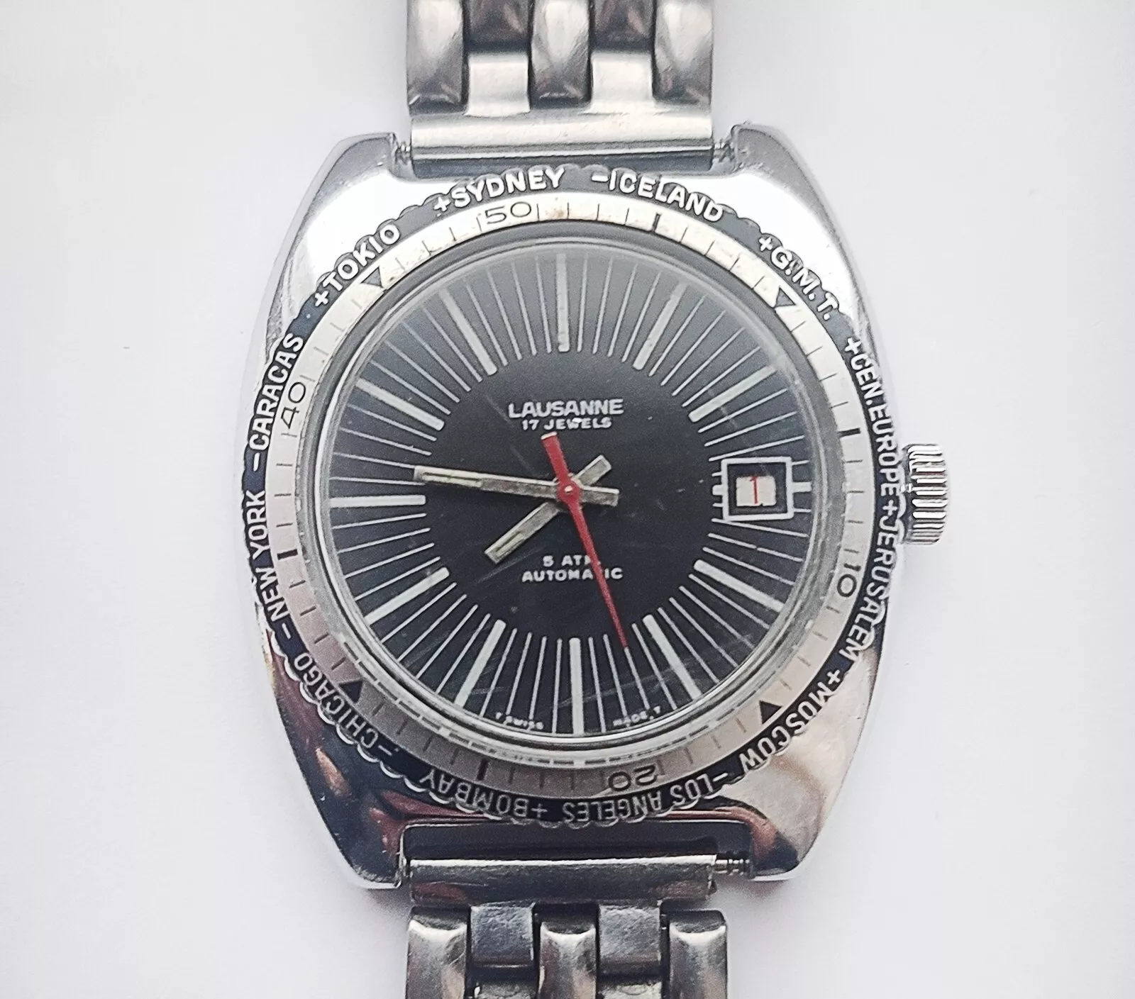 Vintage Lausanne World Time BF 158 Stainless Steel Automatic Watch Diver