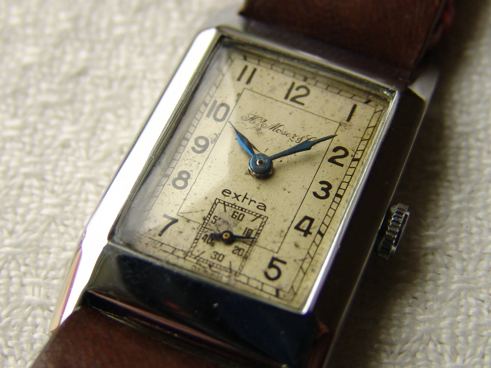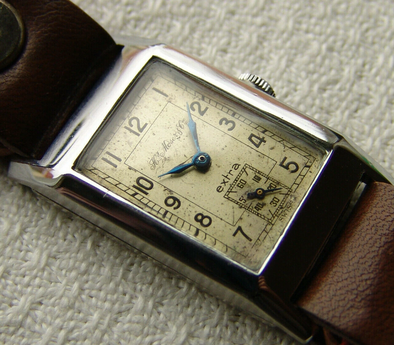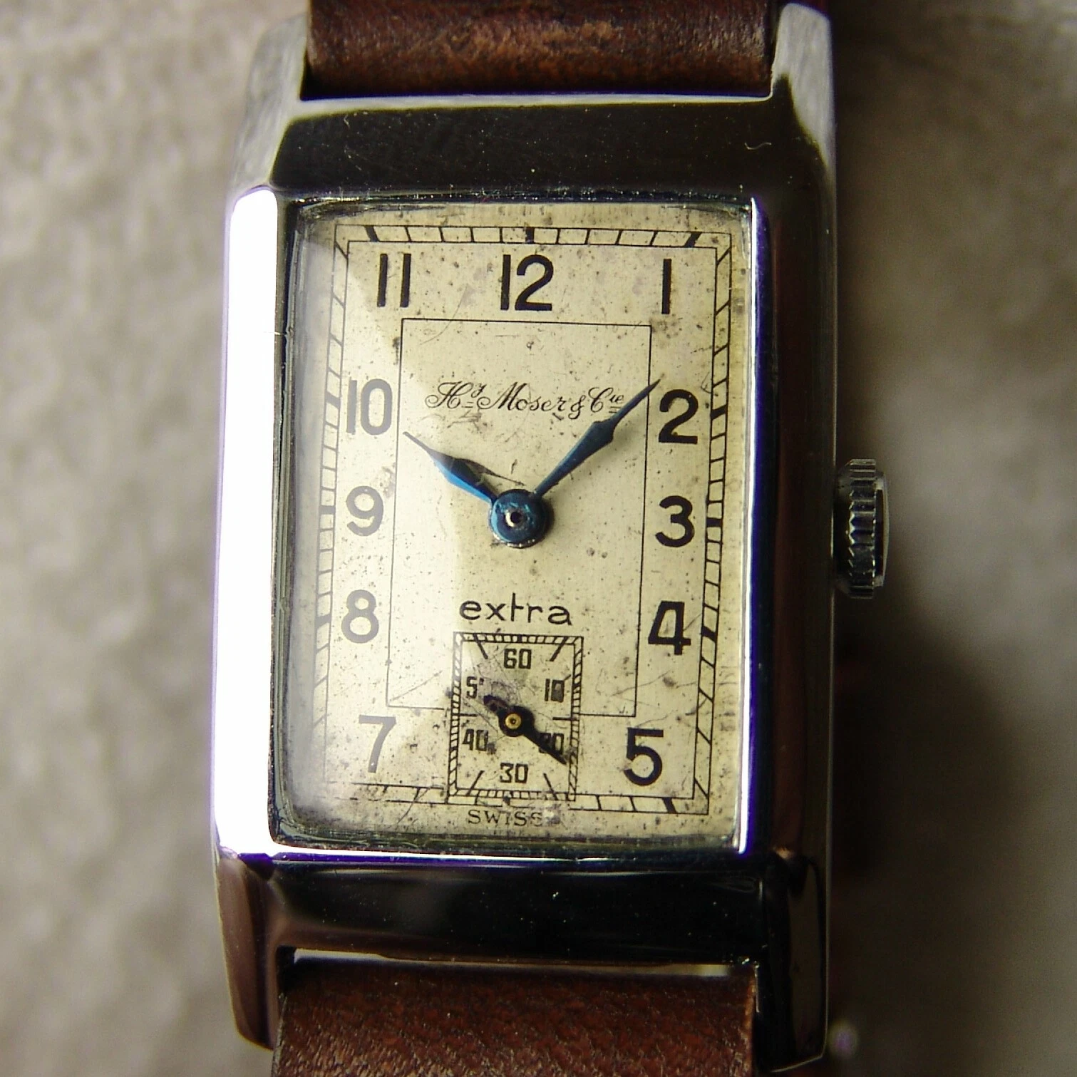 VINTAGE MEN'S WWII era H. MOSER & Cie EXTRA RECTANGLE WRISTWATCH GOOD CONDITION