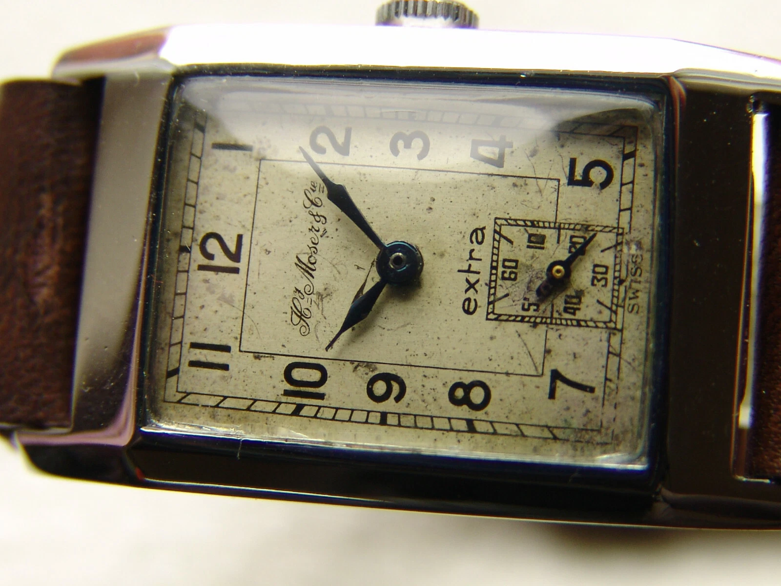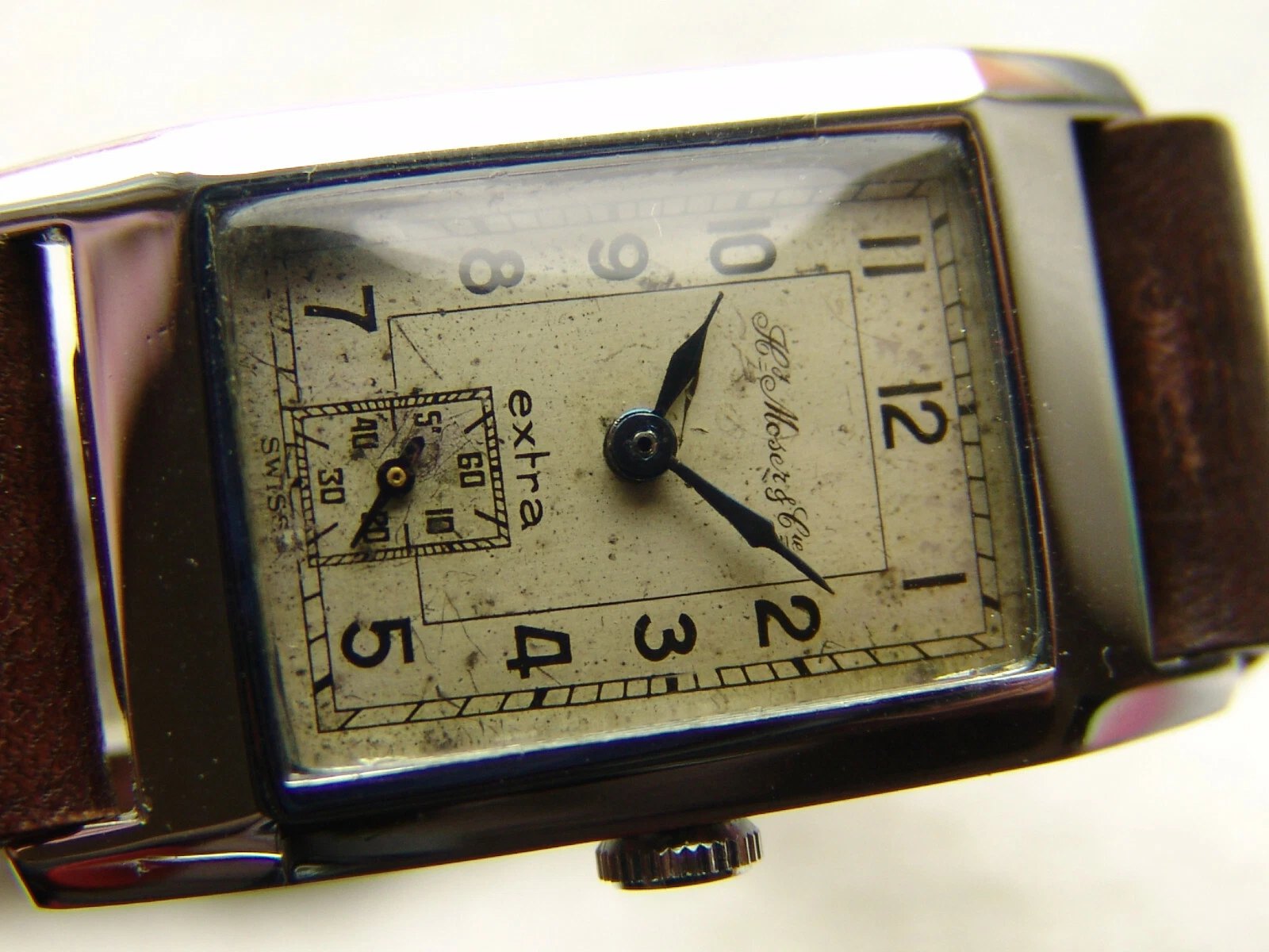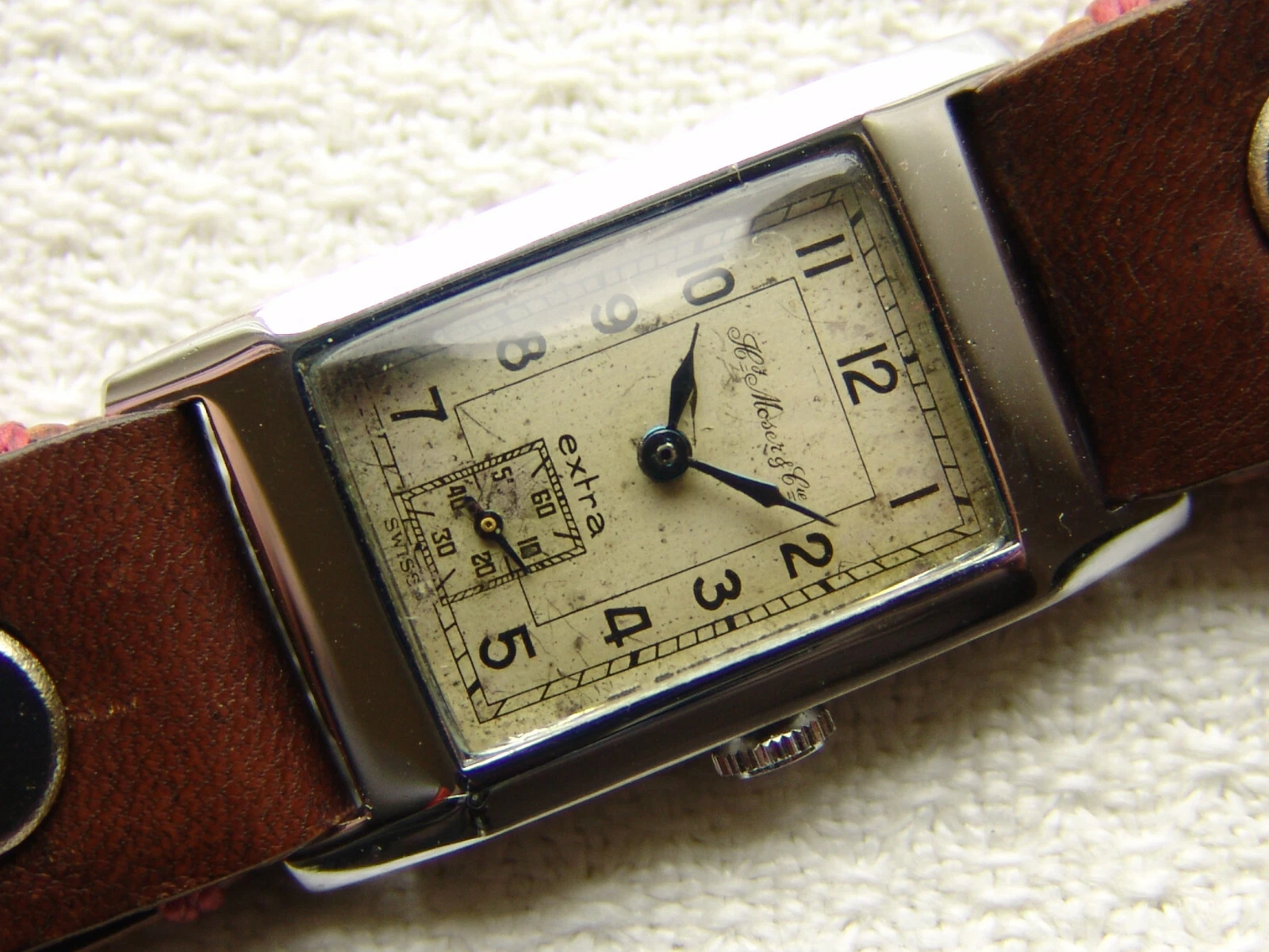 VINTAGE MEN'S WWII era H. MOSER & Cie EXTRA RECTANGLE WRISTWATCH GOOD CONDITION