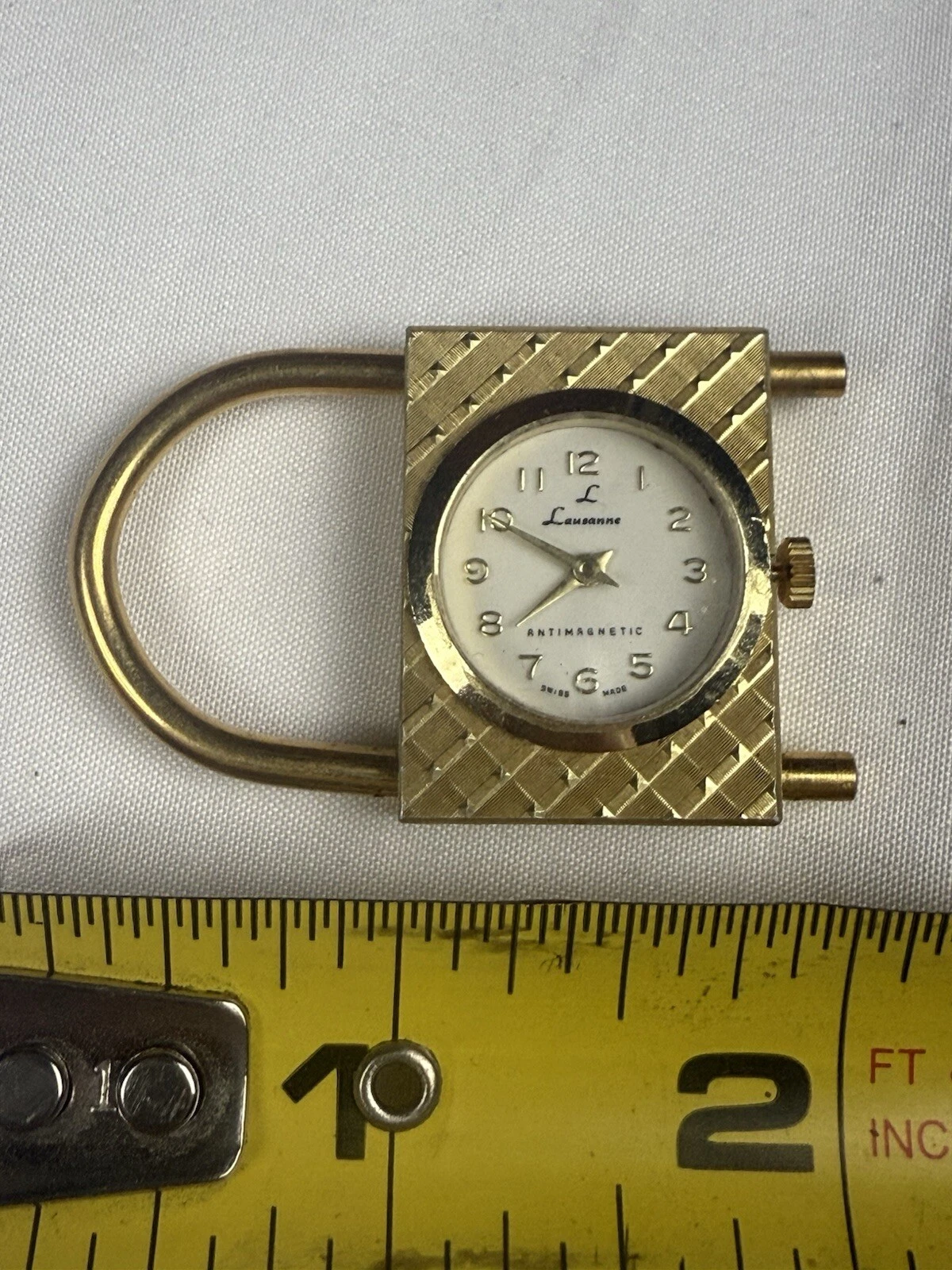 VINTAGE RARE GOLDEN TONE COLLECTIBLE MEN'S LADIES SWISS WATCH PADLOCK"LAUSANNE"