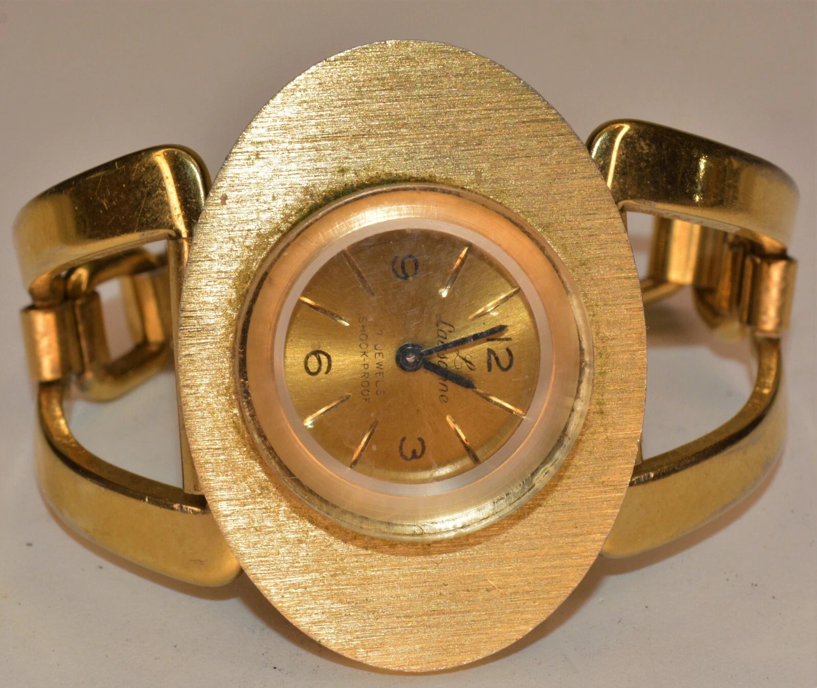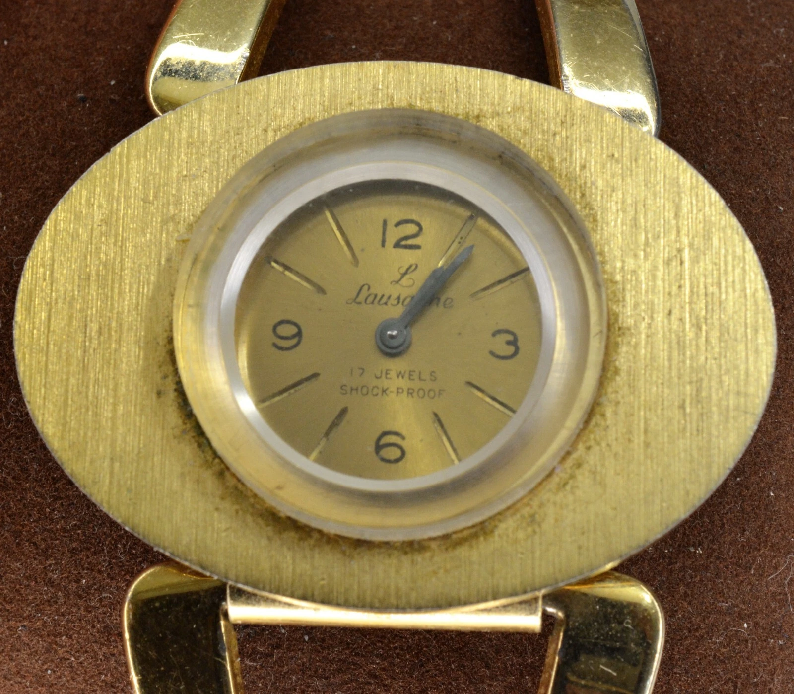 VTG Lausanne Swiss gold color women’s manual winding 17j bracelet watch runs