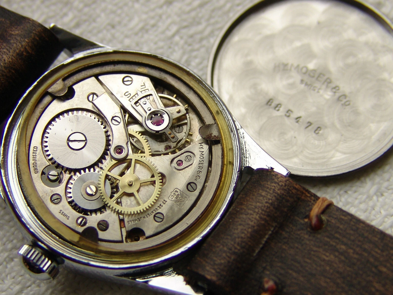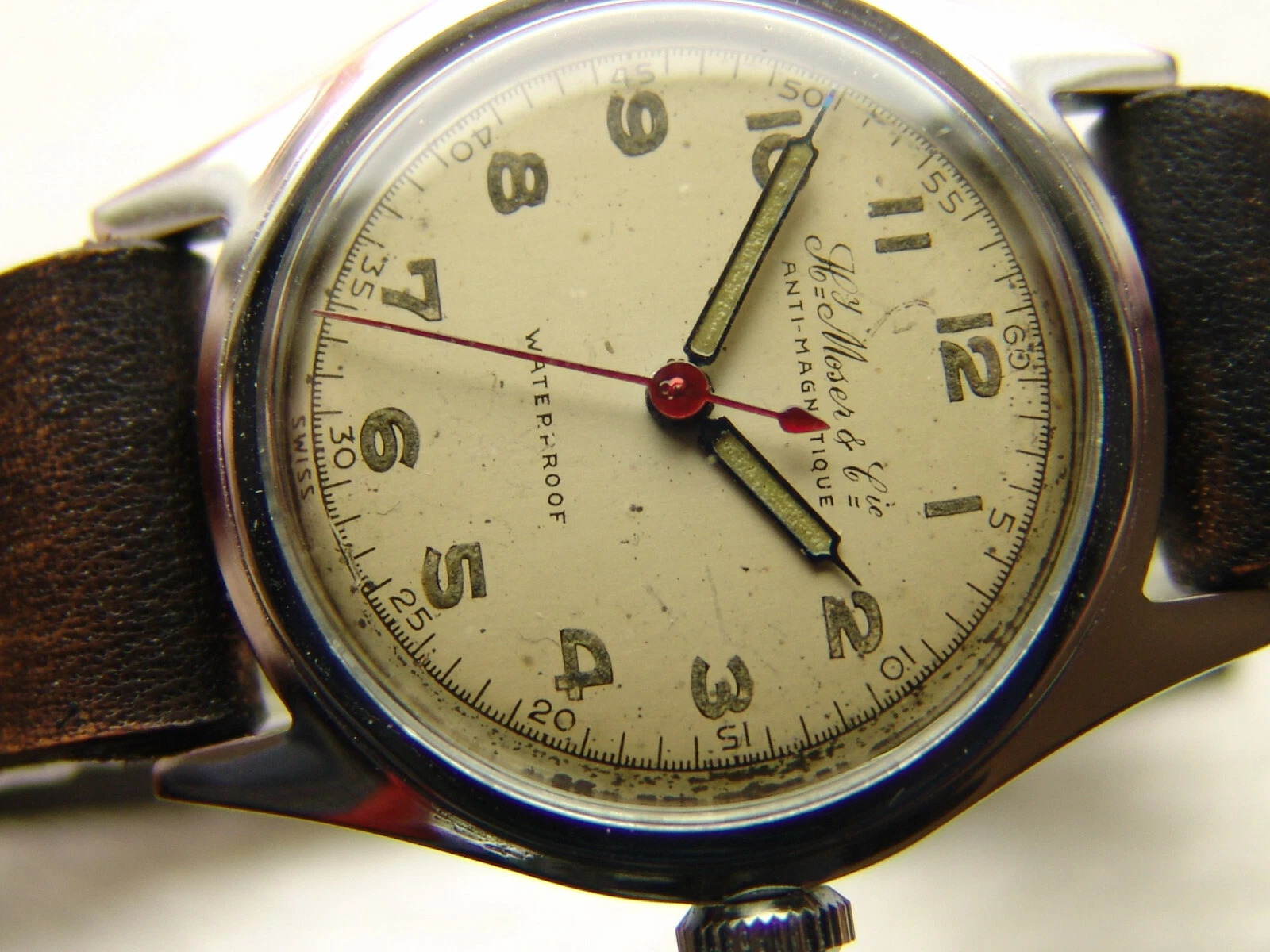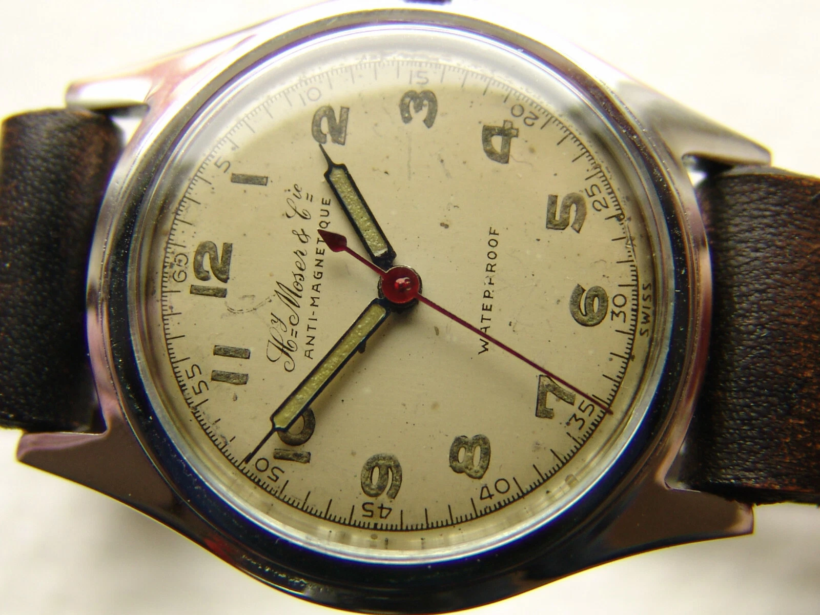 MEN"S WWII PERIOD VINTAGE H.MOSER & Cie MILITARY WRISTWATCH GOOD CONDITION