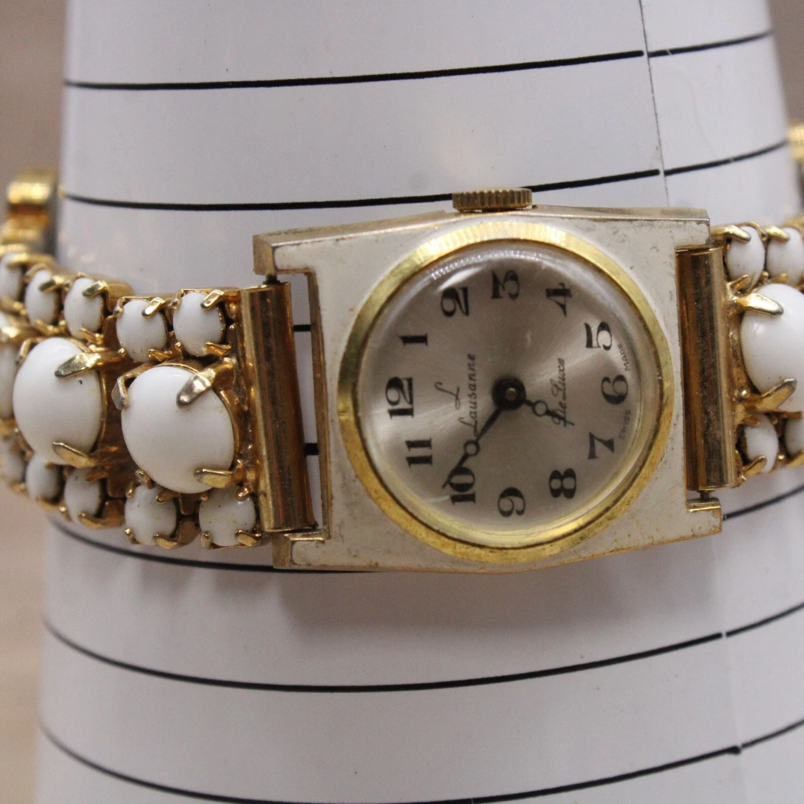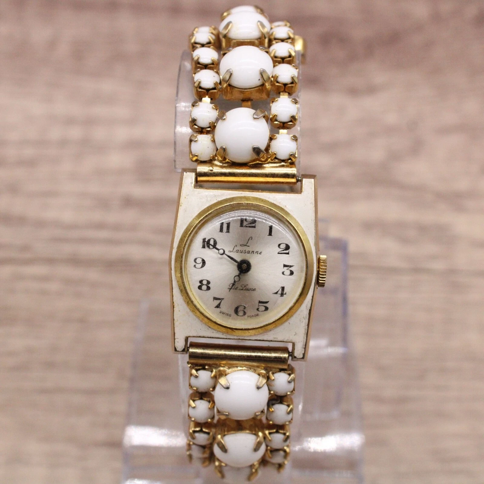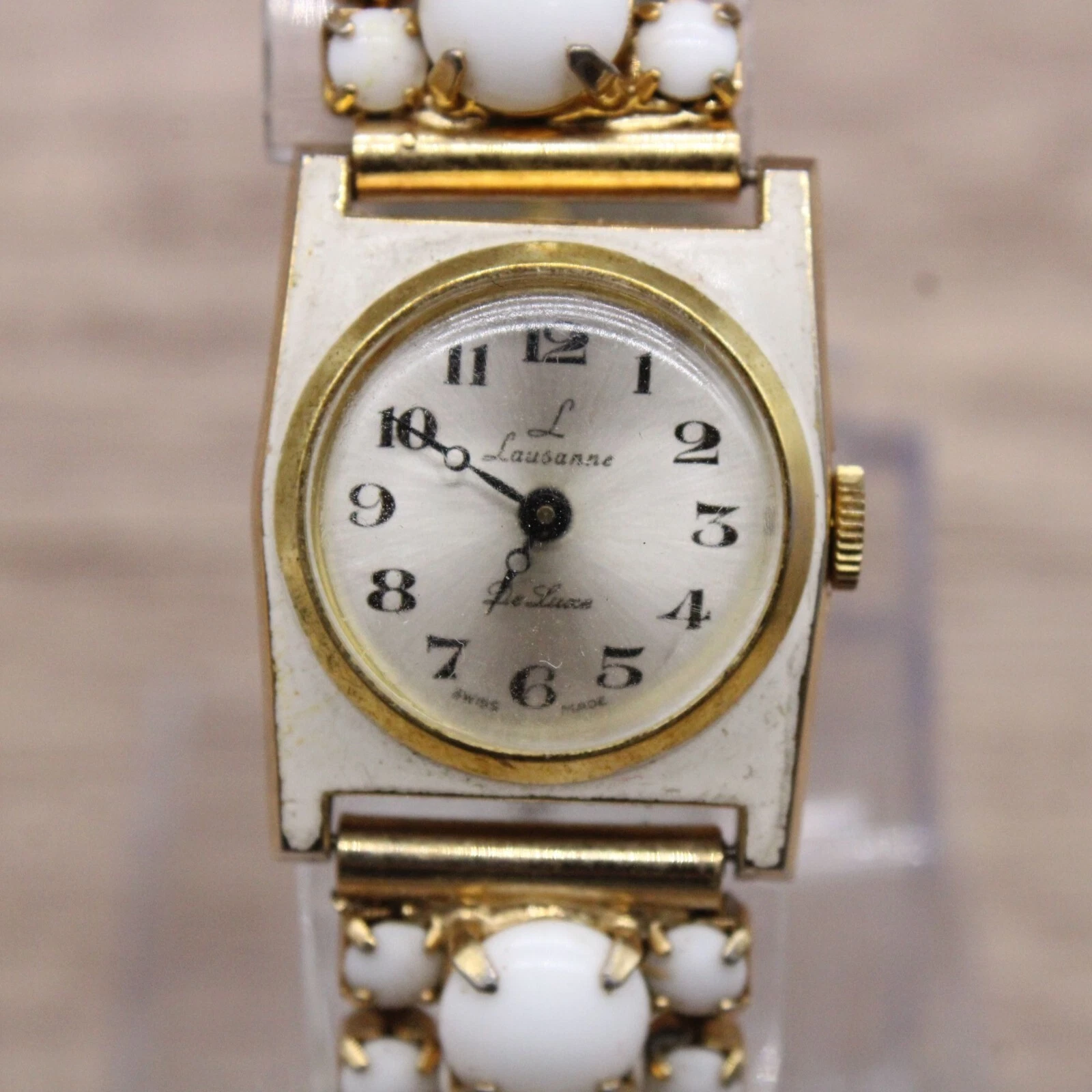 Vintage Lausanne Swiss Made Watch Womens Gold Tone Stainless Steel Art Deco 60's