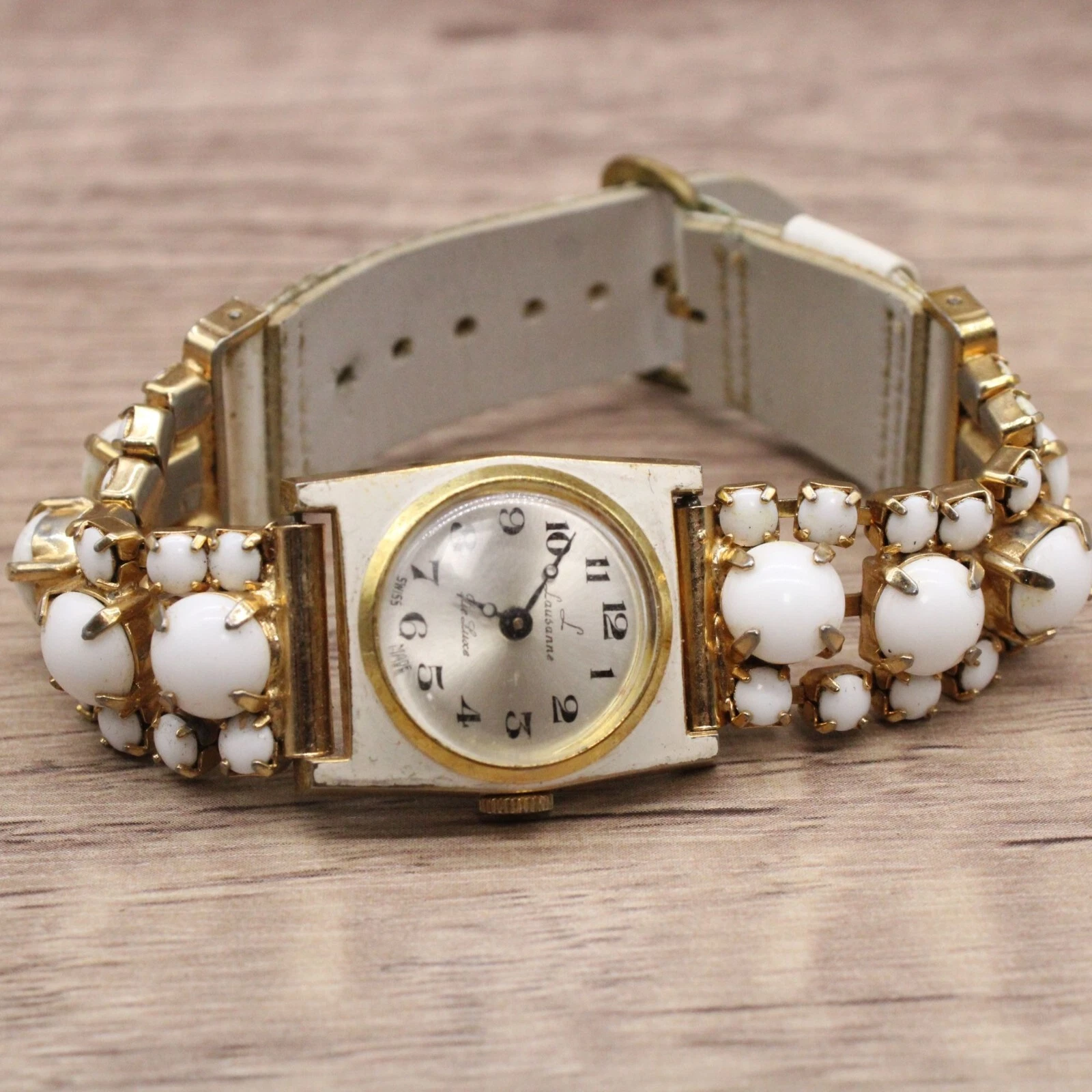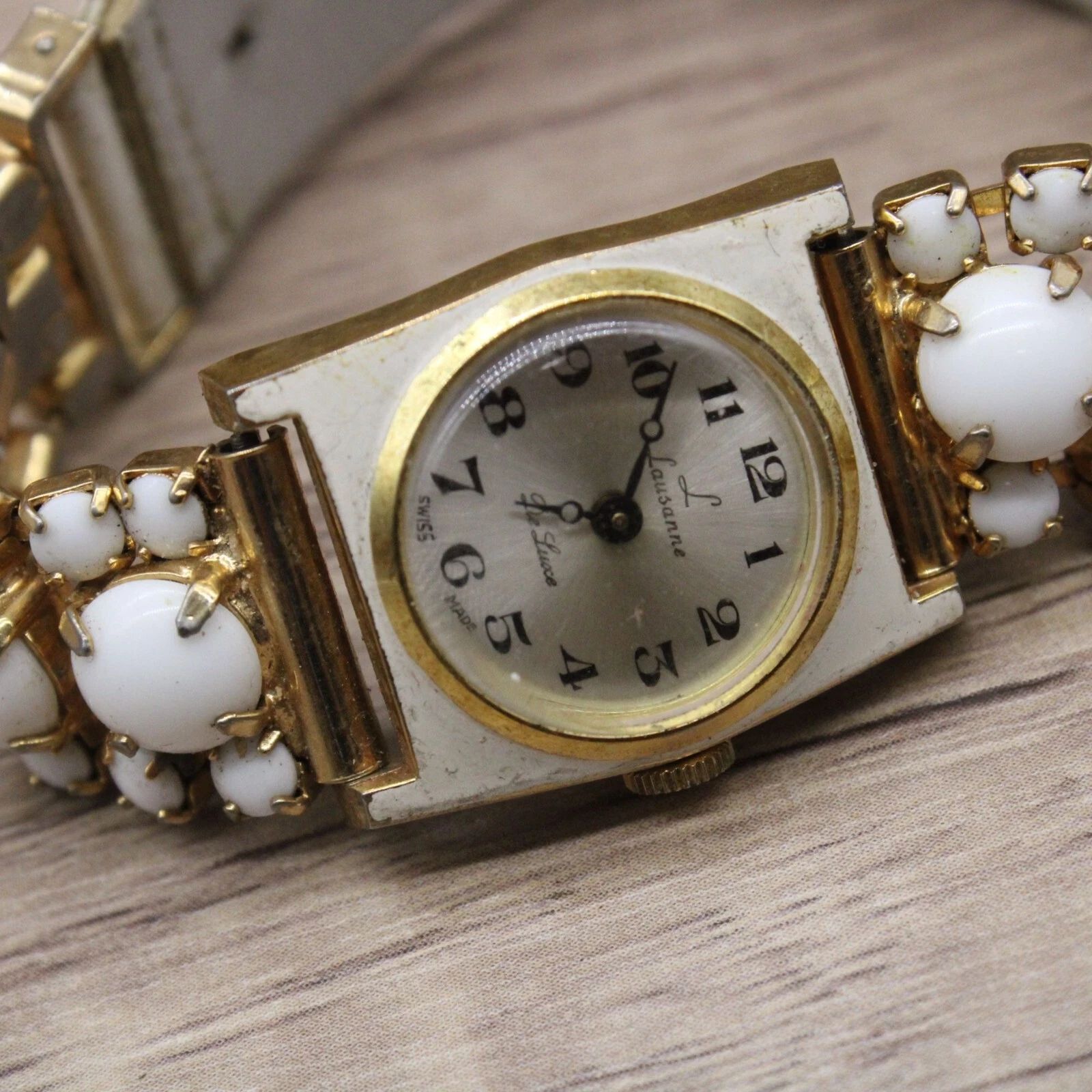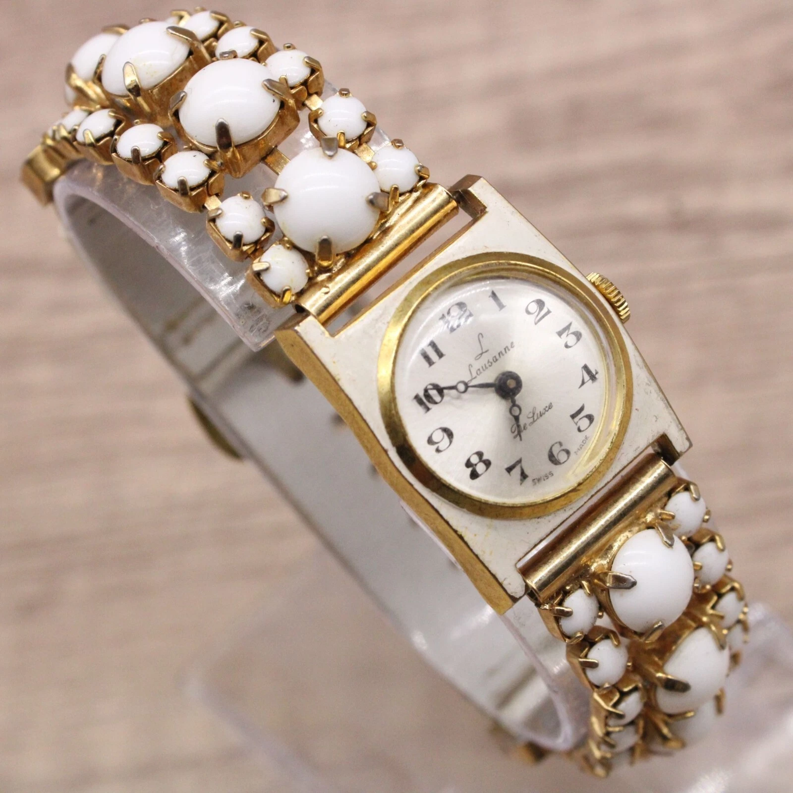 Vintage Lausanne Swiss Made Watch Womens Gold Tone Stainless Steel Art Deco 60's
