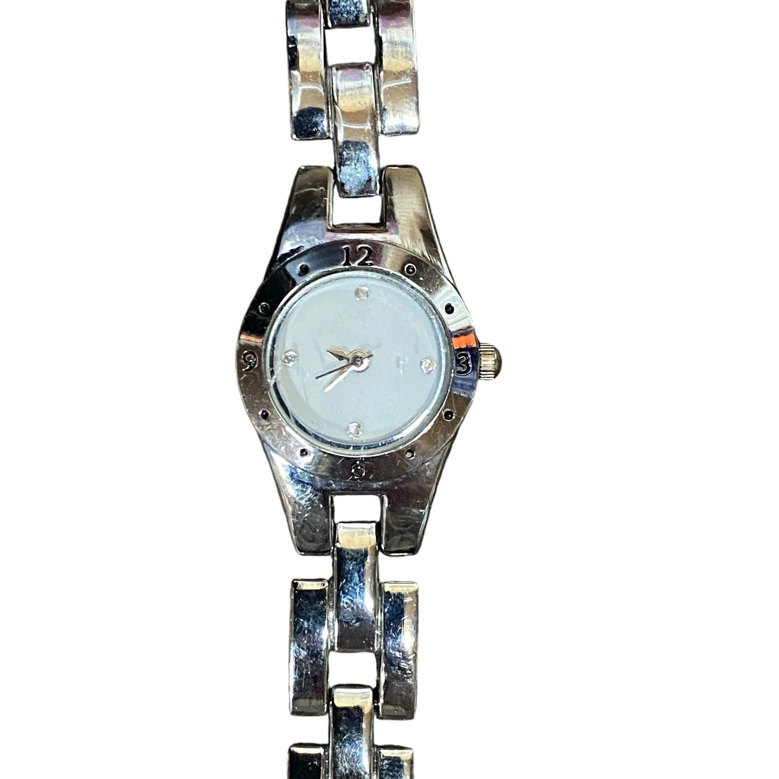 Women's Haband Quartz Watch Silver Bracelet Band White Dial Case Diamond Accent