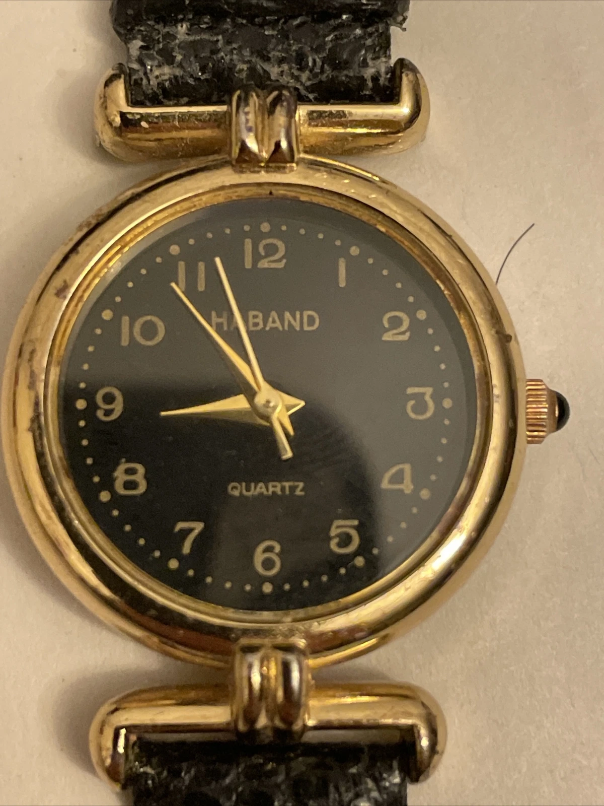 Vintage Haband Women's Quartz Watch. leather Steel back new battery