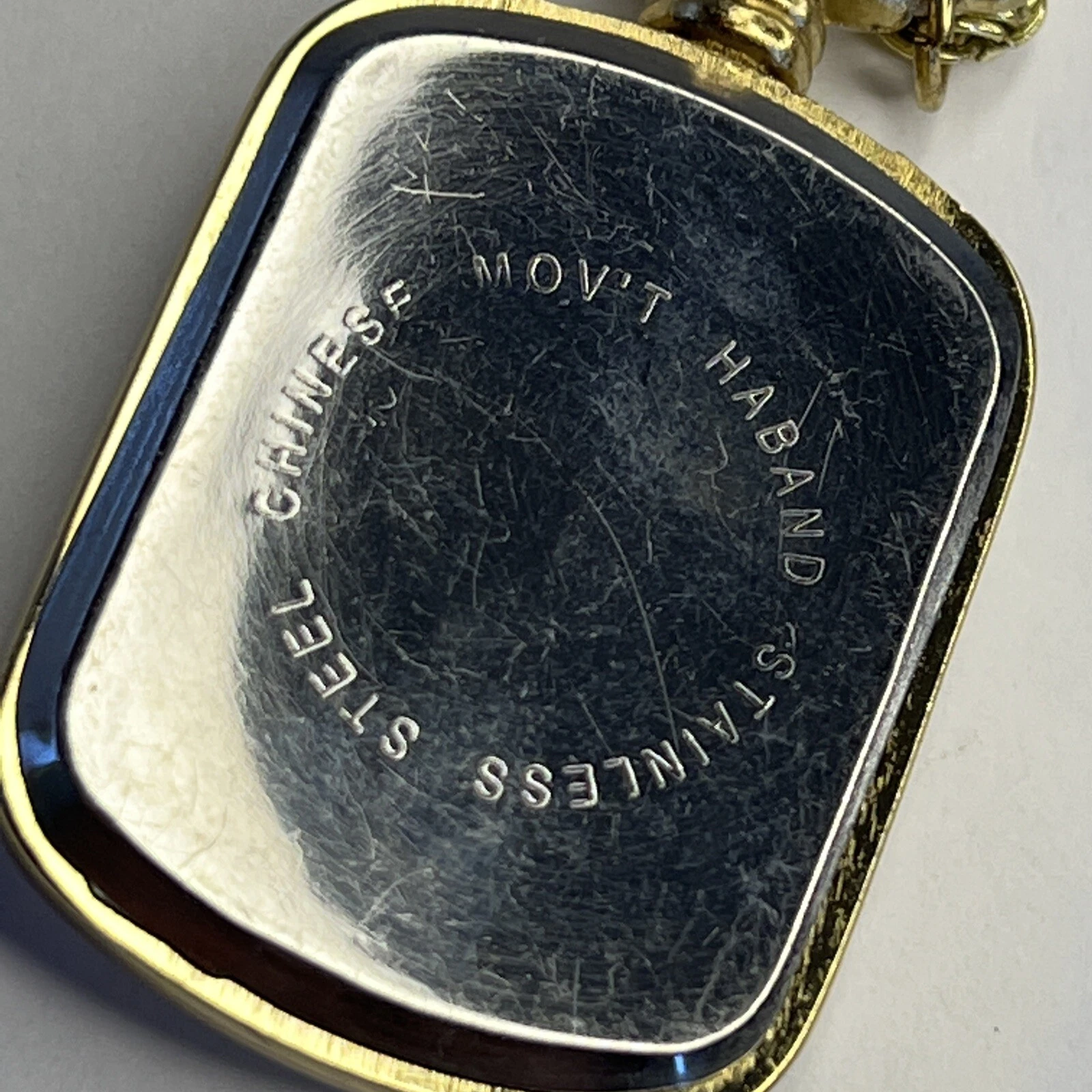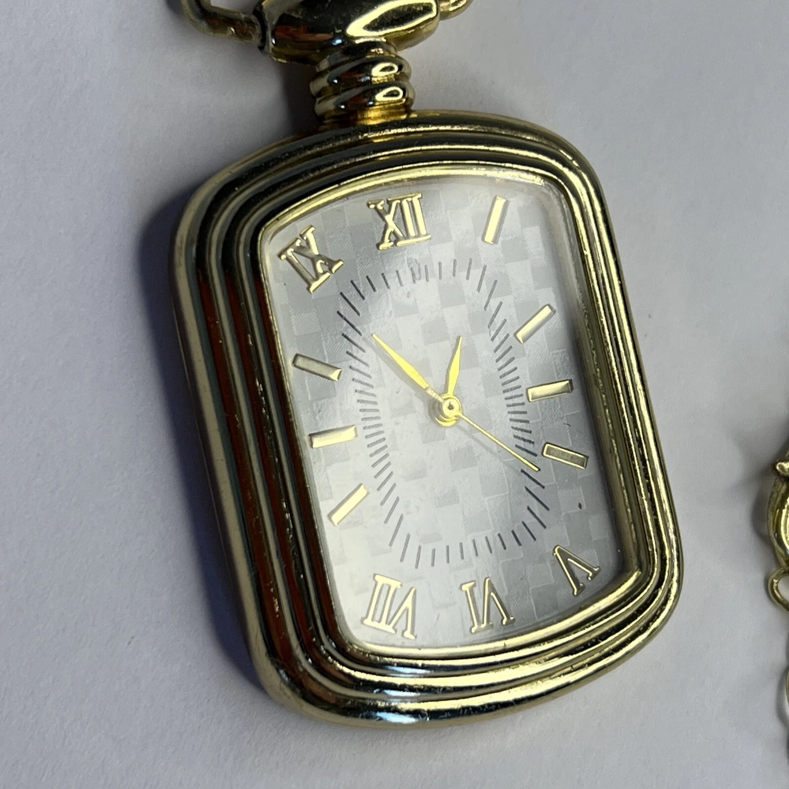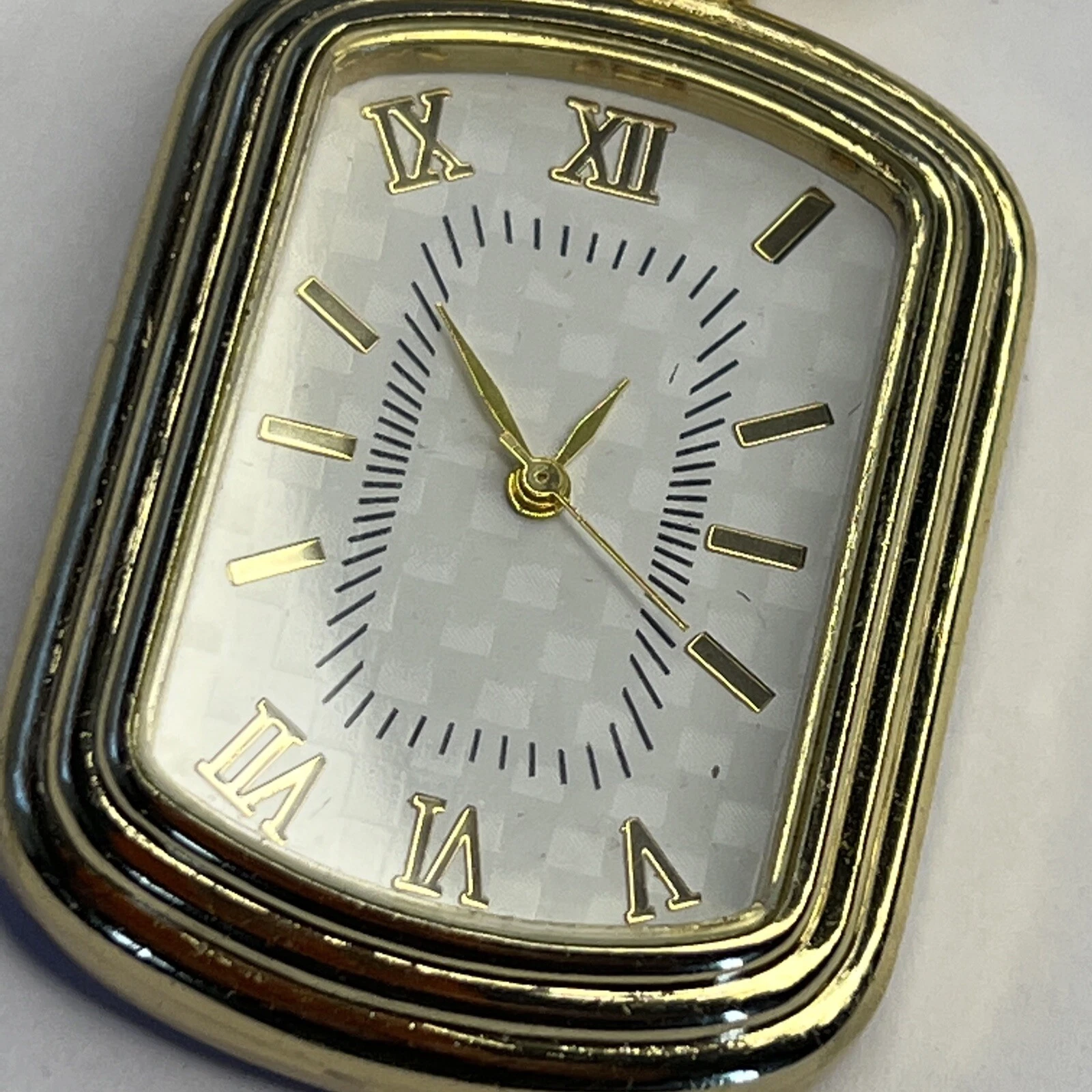 24-27" HABAND Gold Tone Rectangle Pendant Watch White Dial