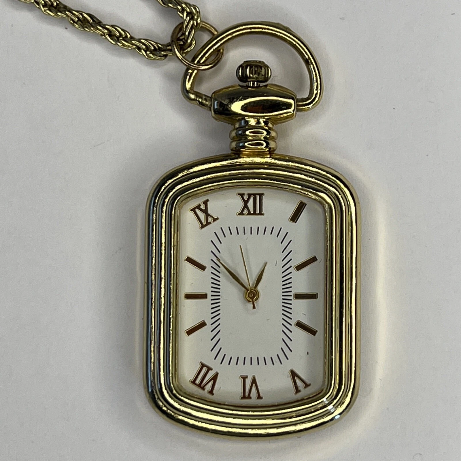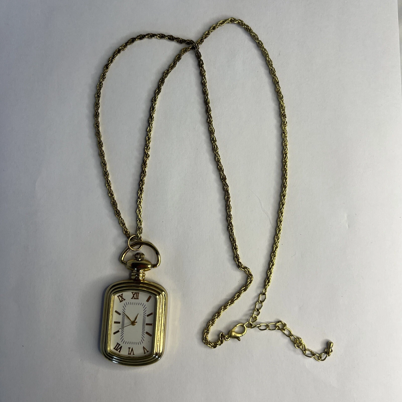 24-27" HABAND Gold Tone Rectangle Pendant Watch  White Dial