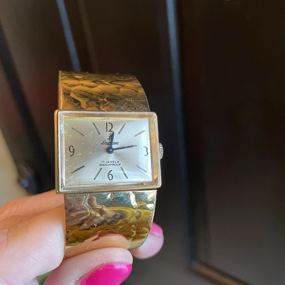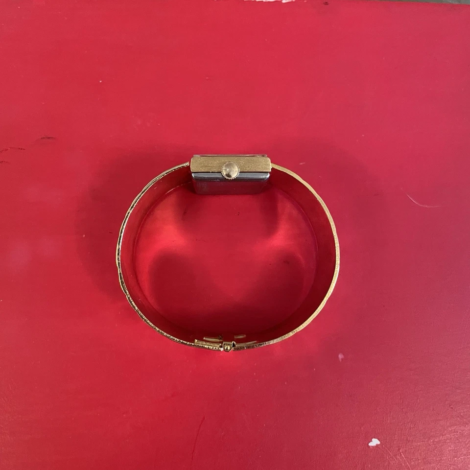 Vintage 1980s Ladies LAUSANNE Gold Tone Hinged Bangle Bracelet Watch Wind Up