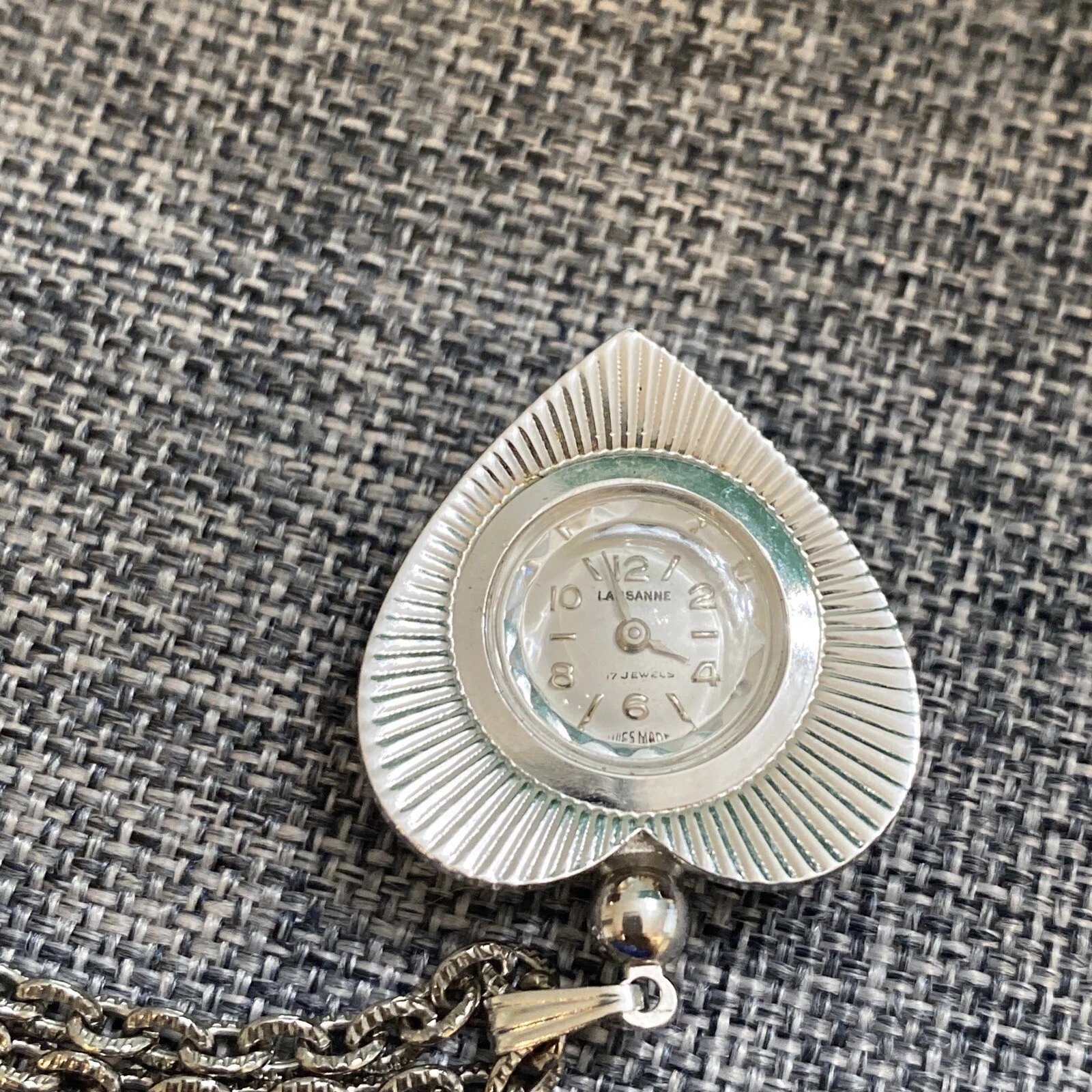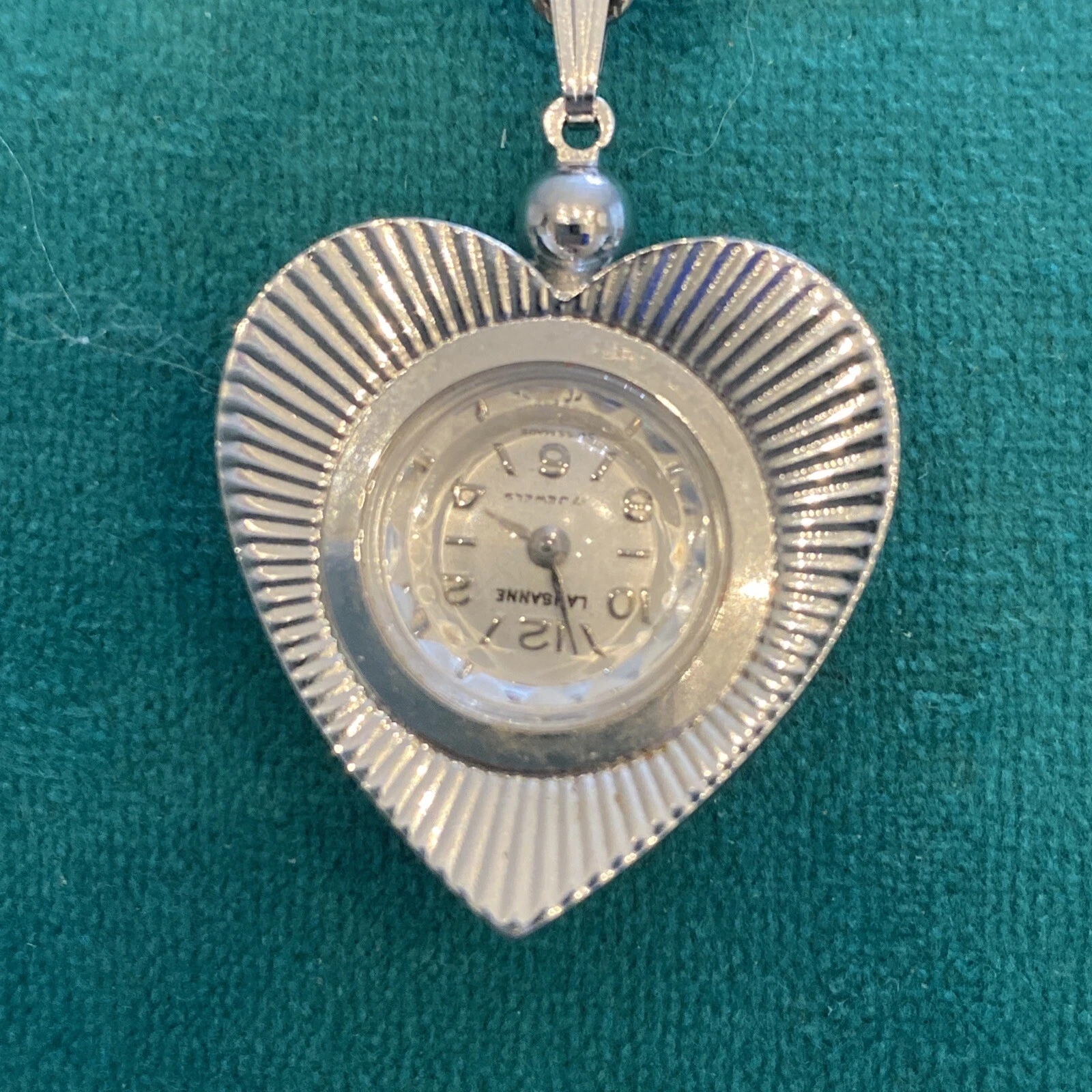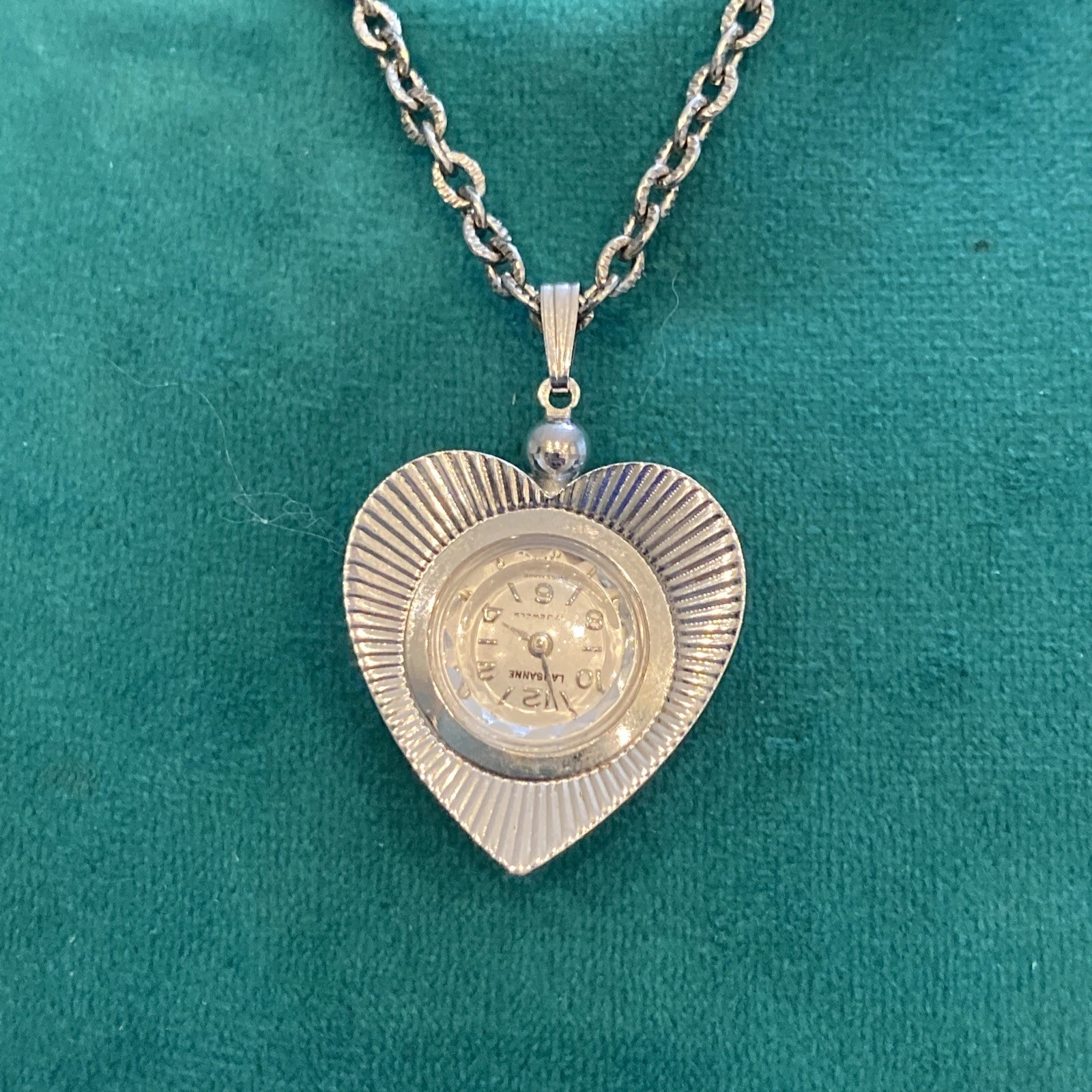 Lausanne Heart 17 Jewels Wind Up Necklace Pendant Watch 22”