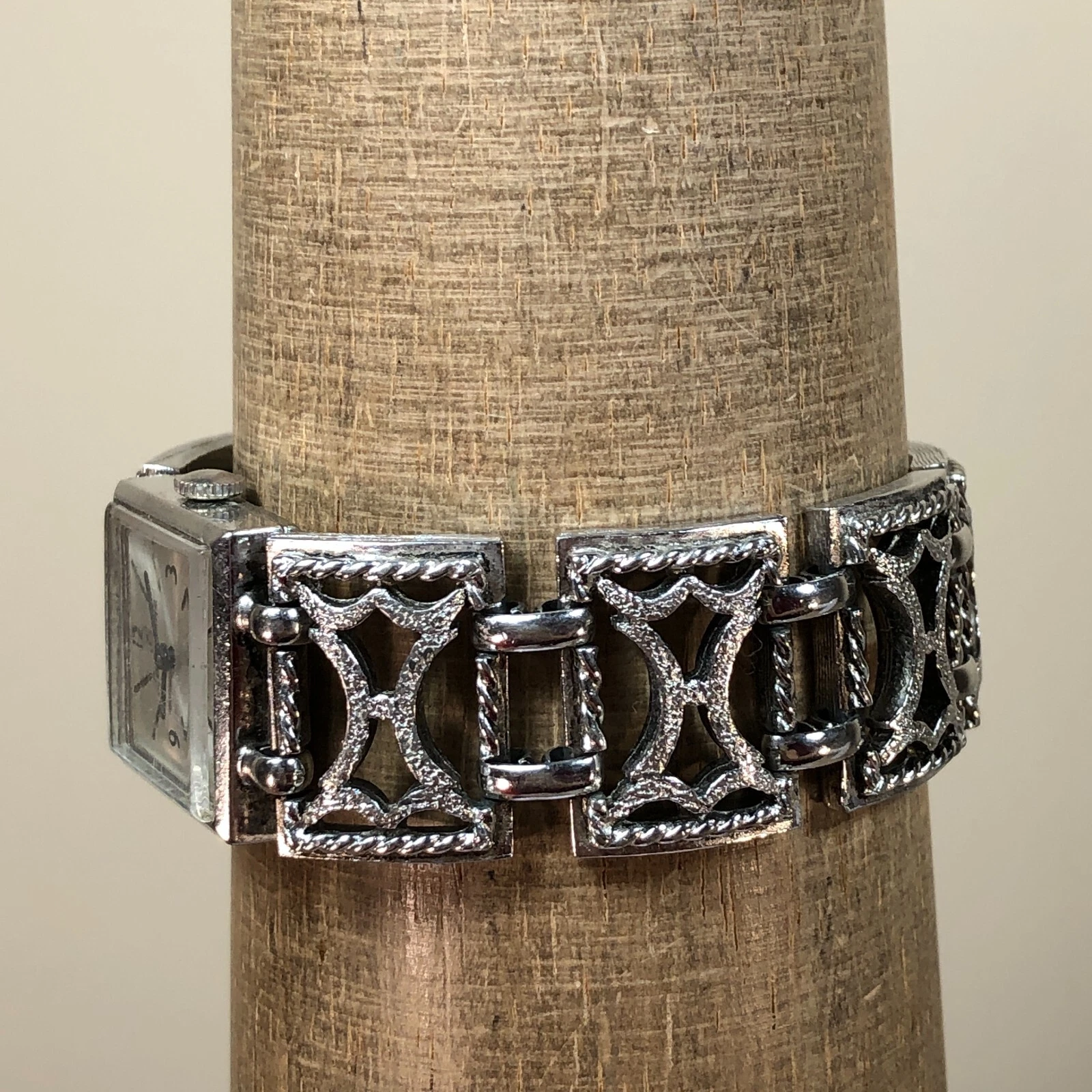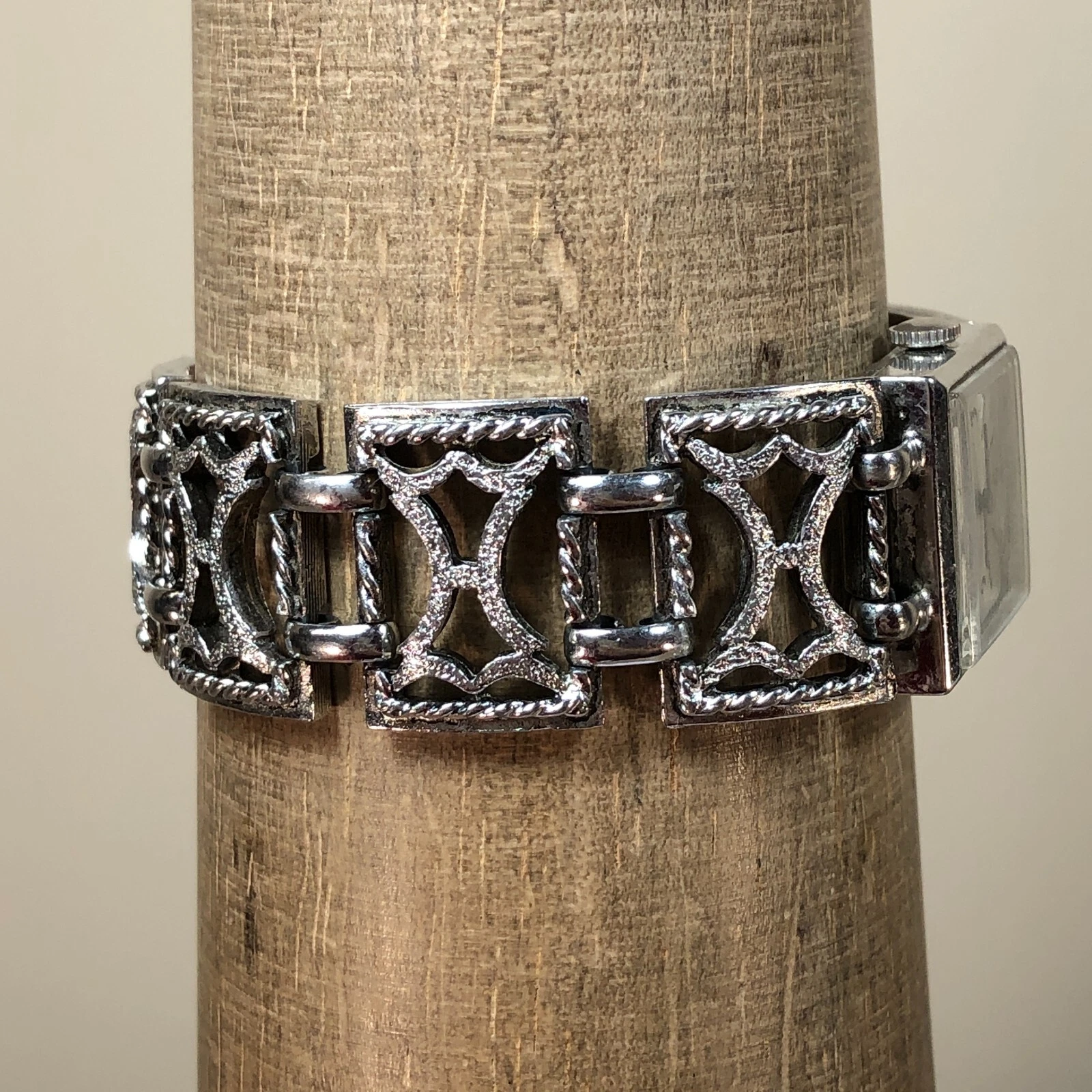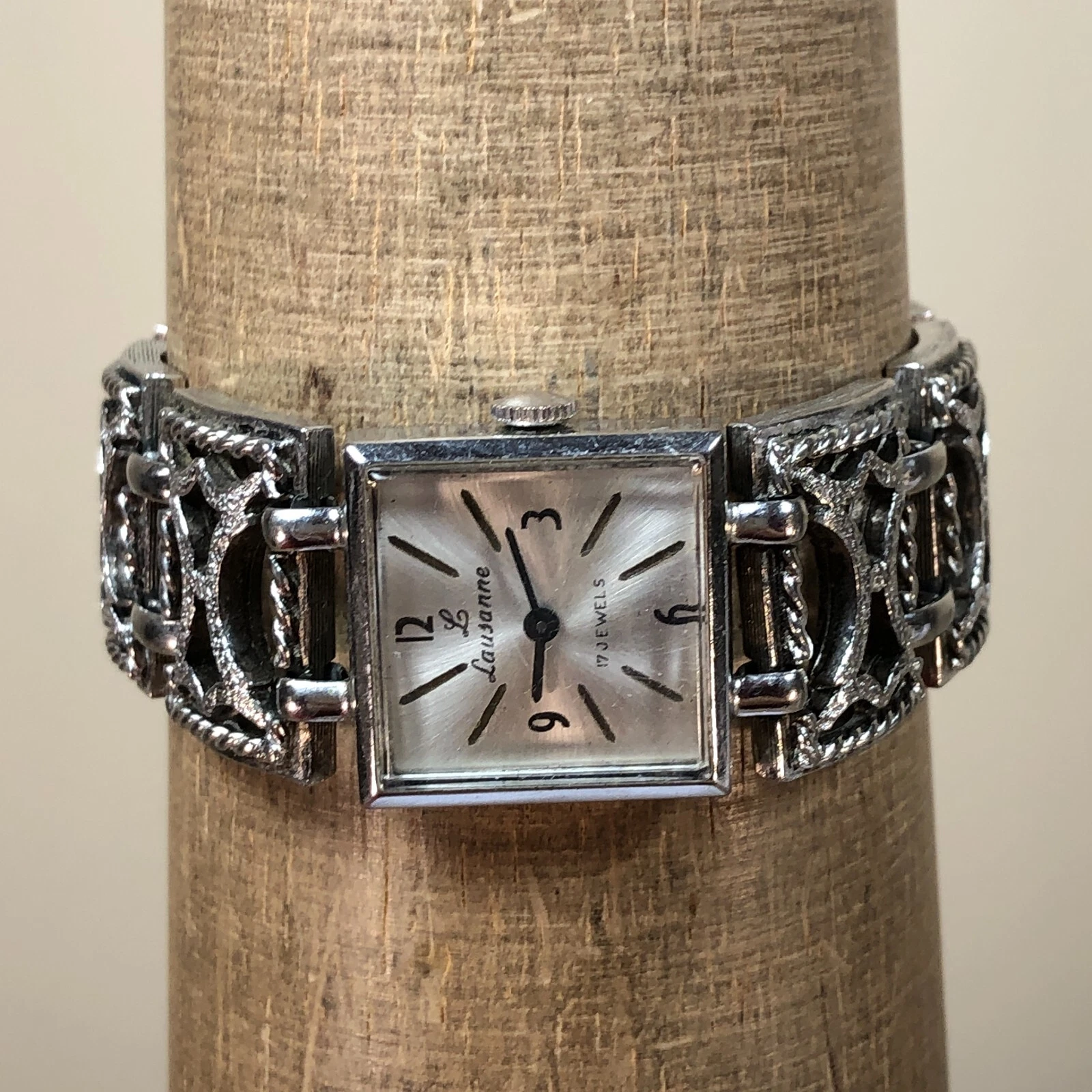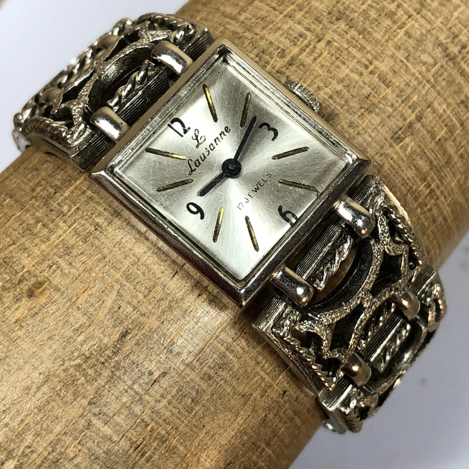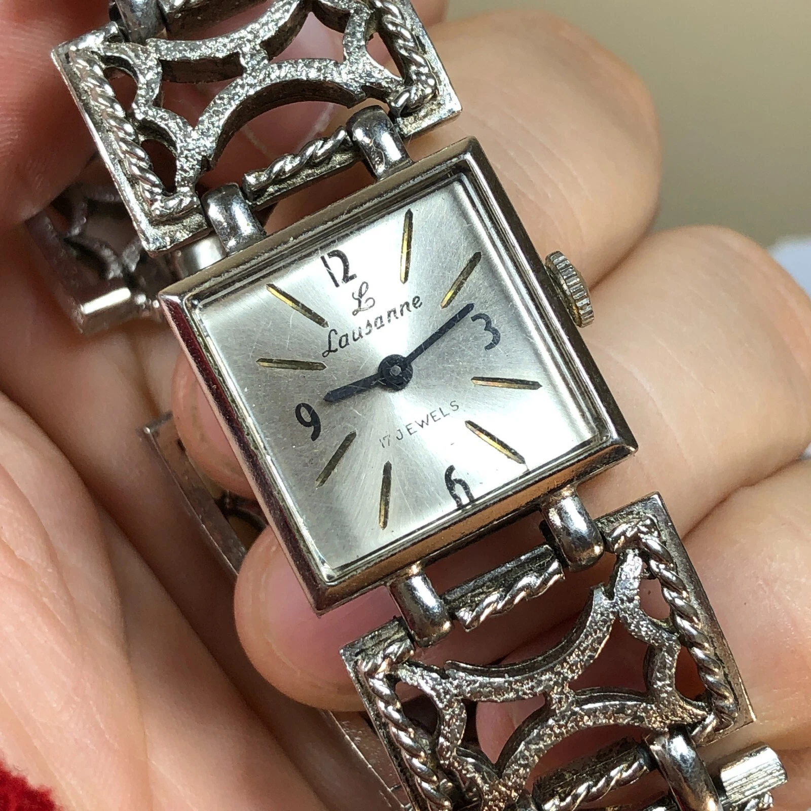 Lausanne Womens Wind Up Silver Tone Square Mechanical Watch