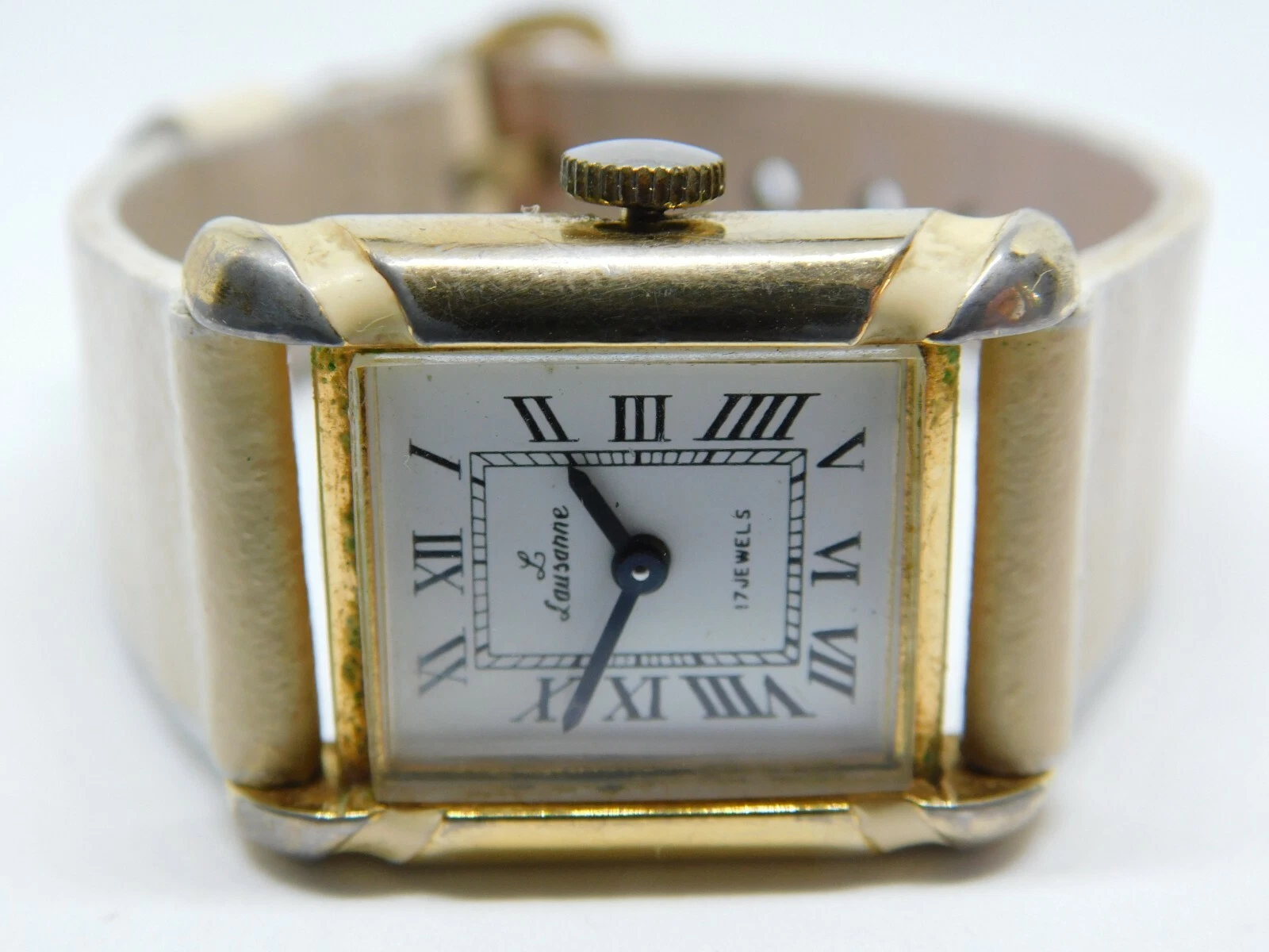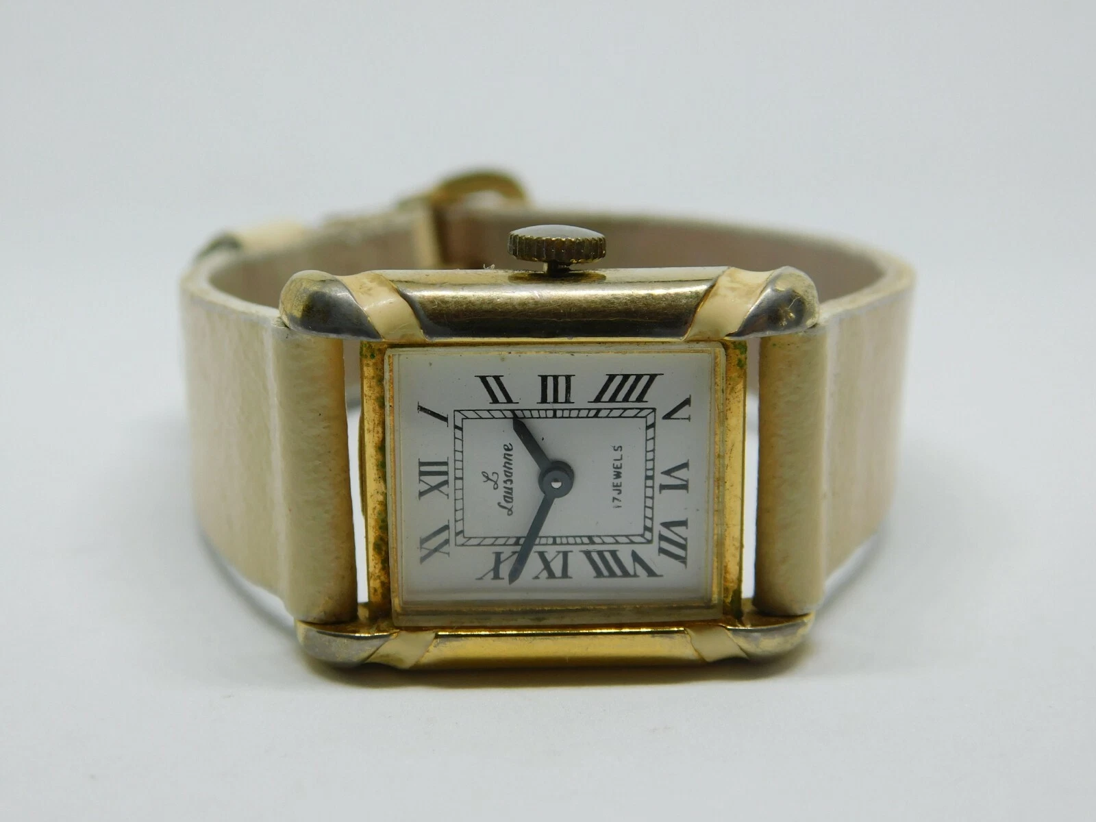 Vintage Lausanne 17 Jewels Gold Tone Case Wind-up Analog Women's Watch