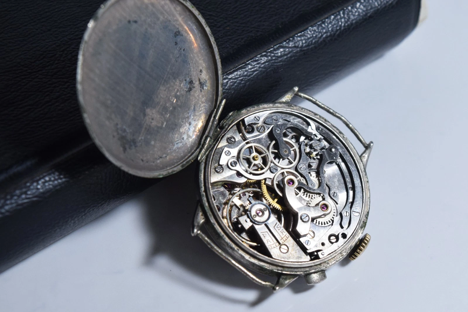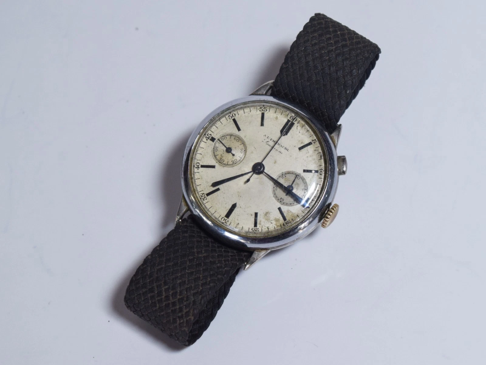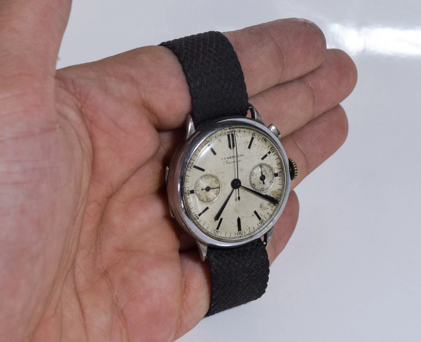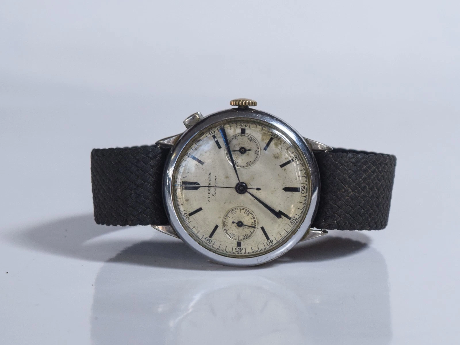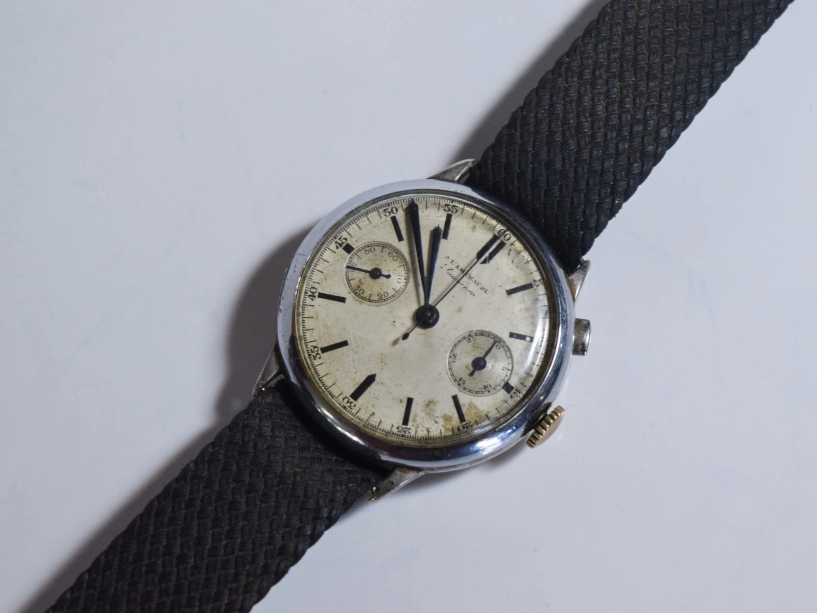 A l' Emeraude Lausanne Jeweller Swiss Antique One Button Chronograph Mens Watch