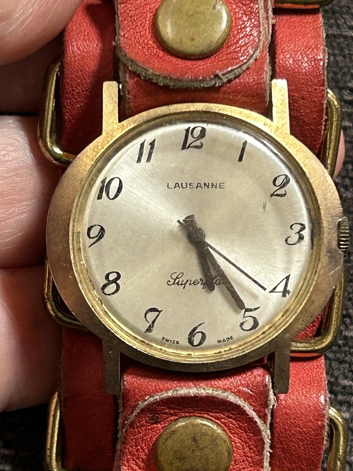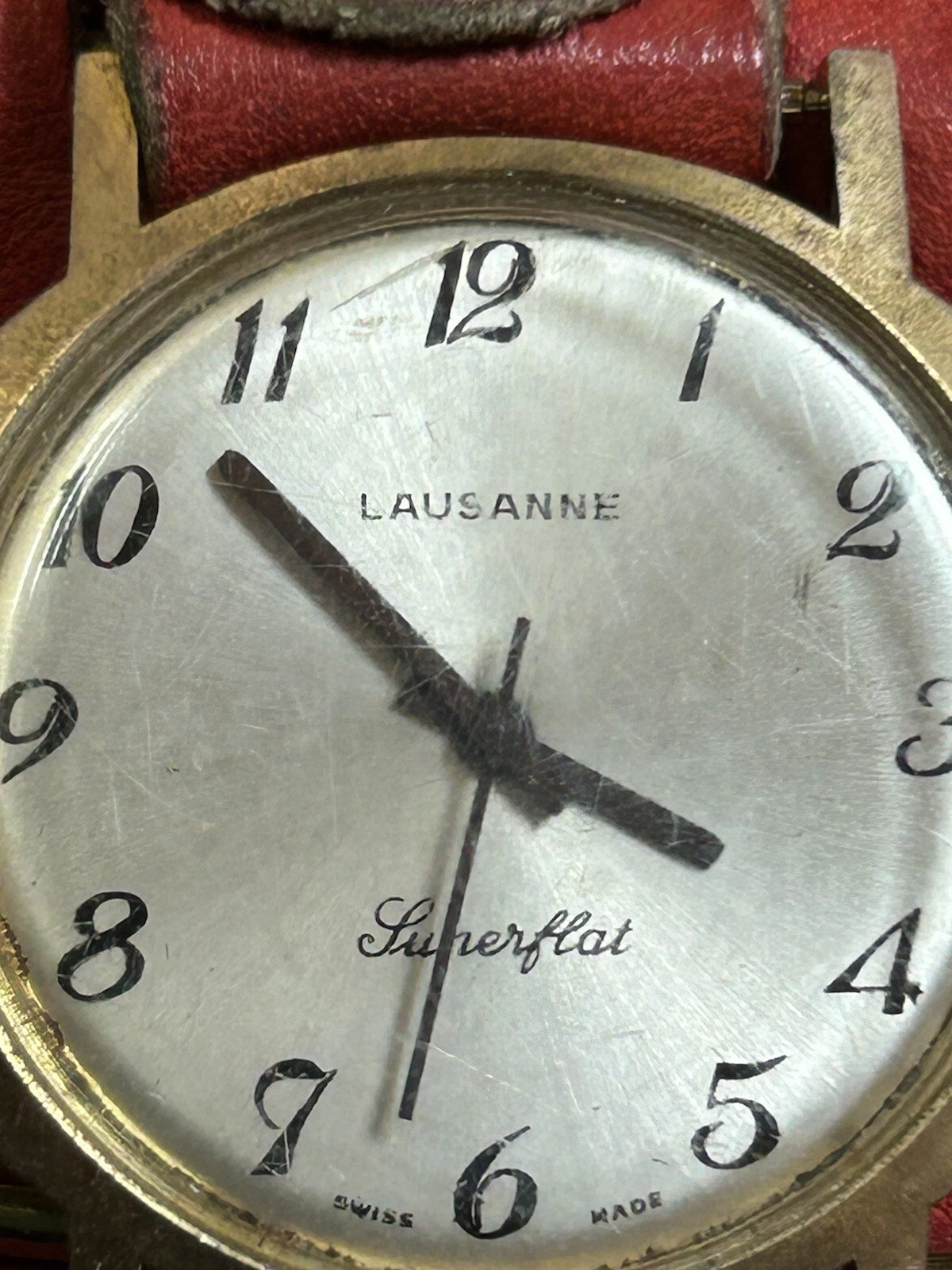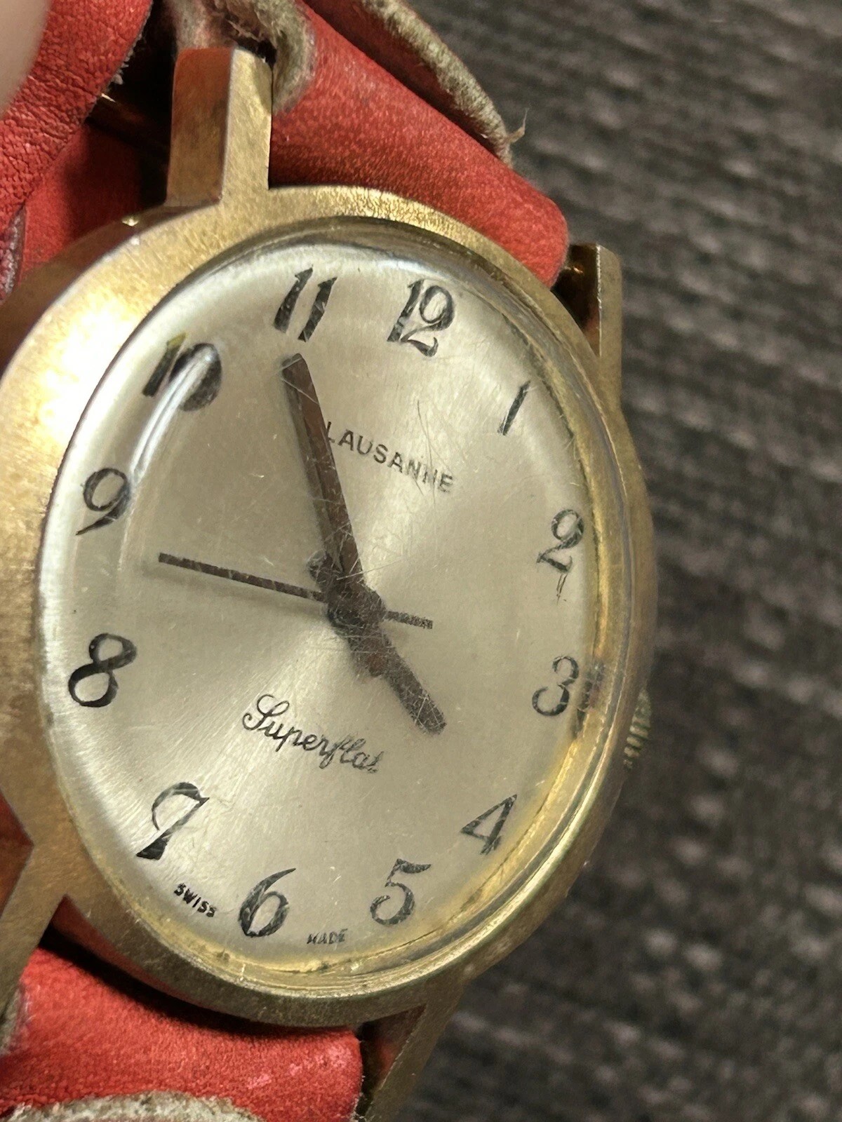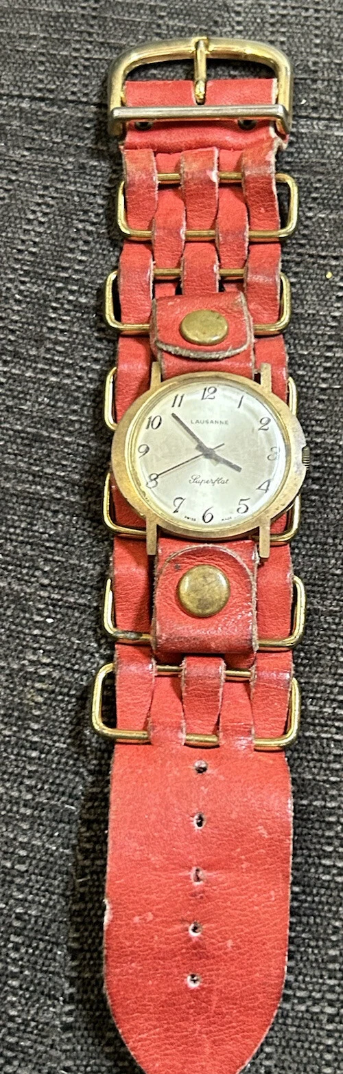 Rare Lausanne Superflat Watch - Works Beautifully! Cool Red Leather Band