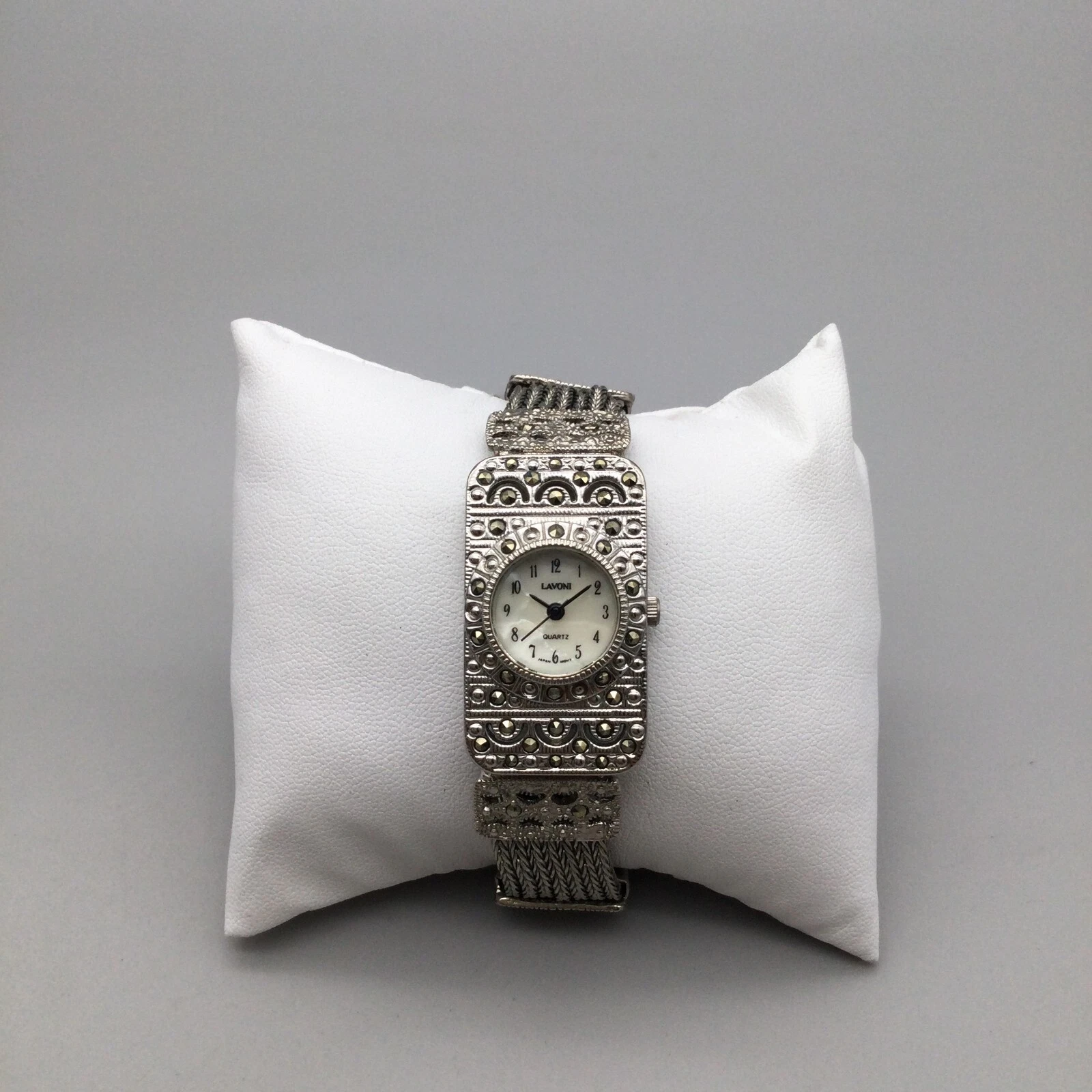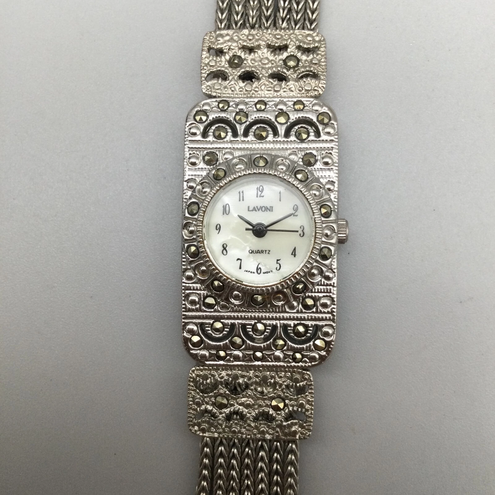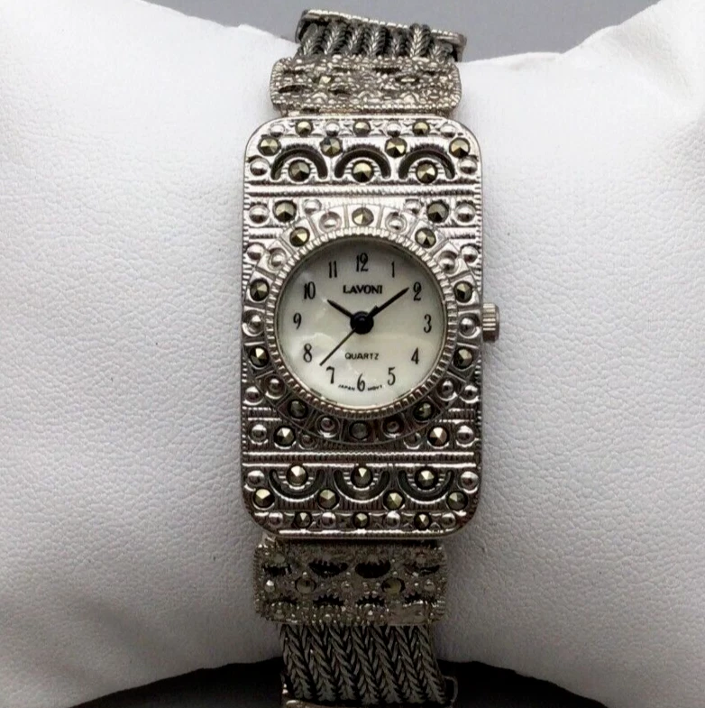Vtg Lavoni Art Deco Watch Women 21mm Silver Tone MOP Dial New Battery 7.5"