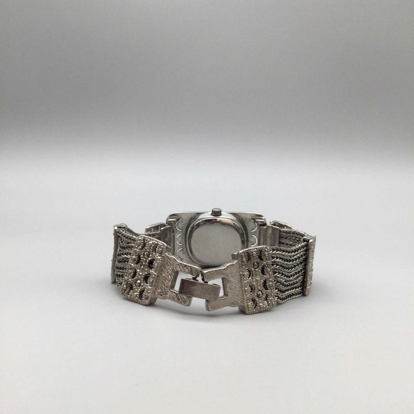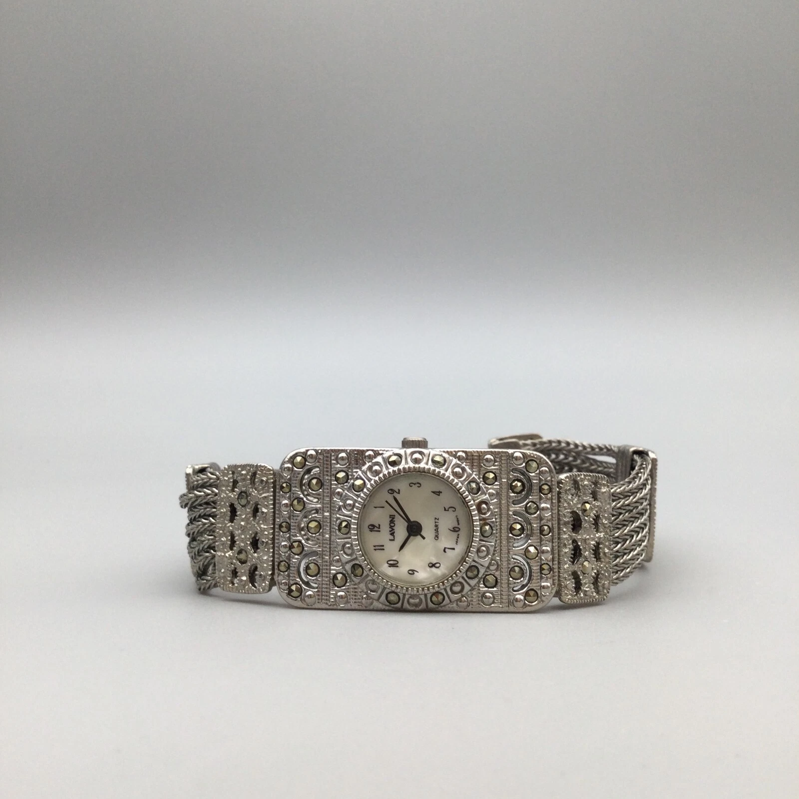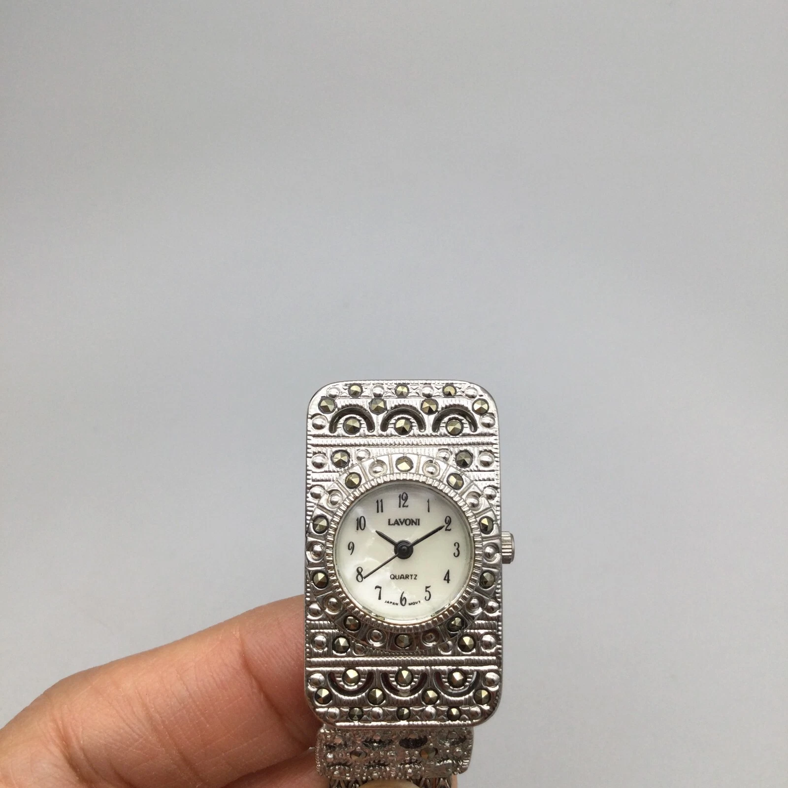 Vtg Lavoni Art Deco Watch Women 21mm Silver Tone MOP Dial New Battery 7.5"
