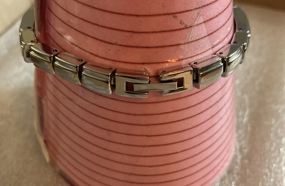 Lavoni Two Tone Watch Women 22mm Bracelet Band Sq Crystal Accents New Battery 8”