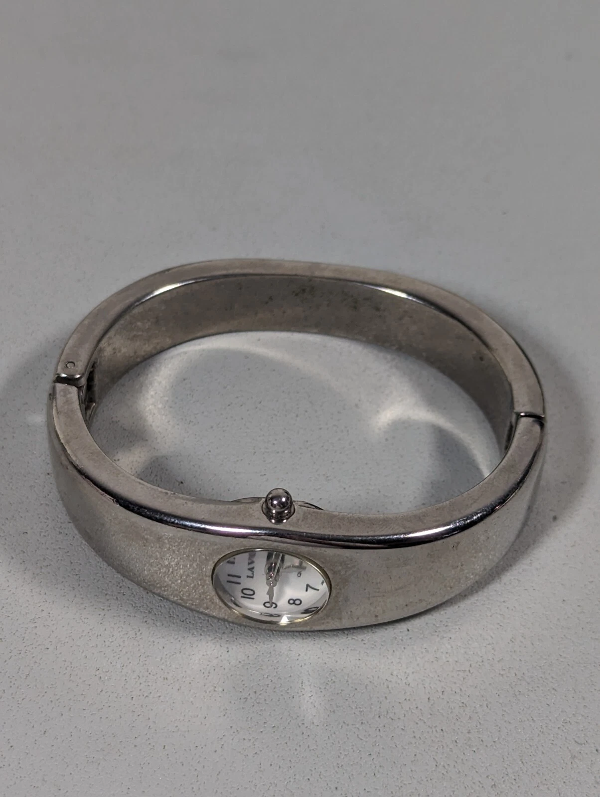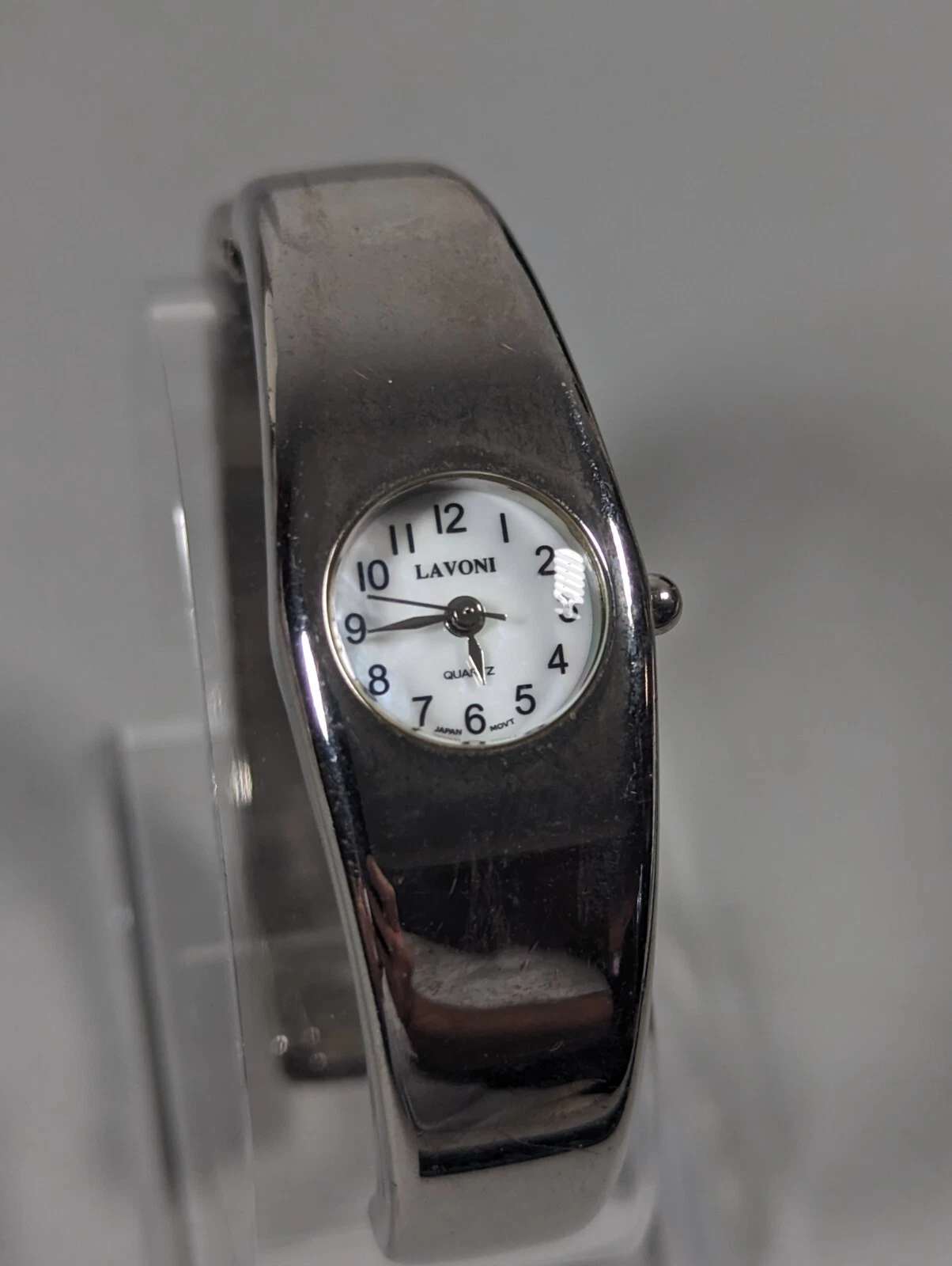 Lavoni Womans White Dial Silver Tone Hinge Bracelet Band Watch