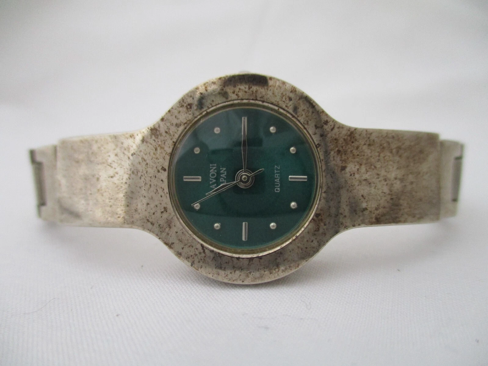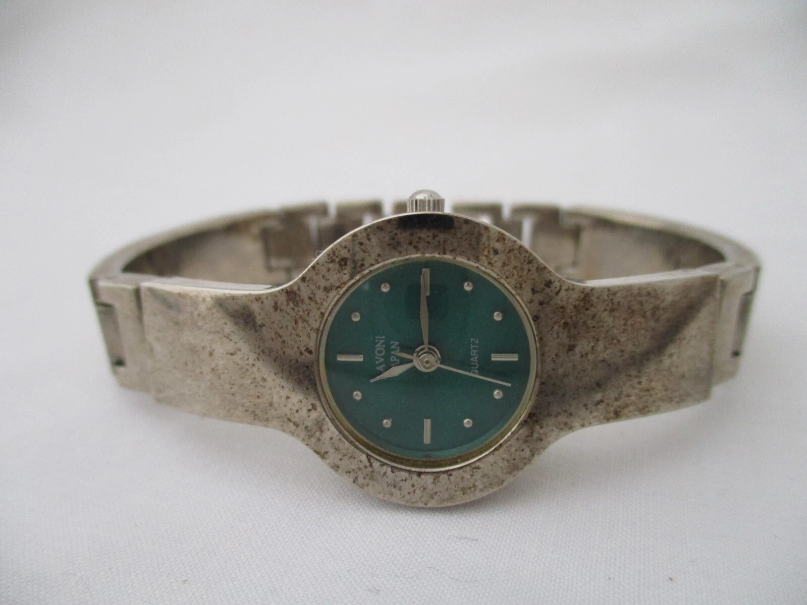 Lavoni Women's Analog Watch Silver Toned Bracelet Band Green Face *Working*