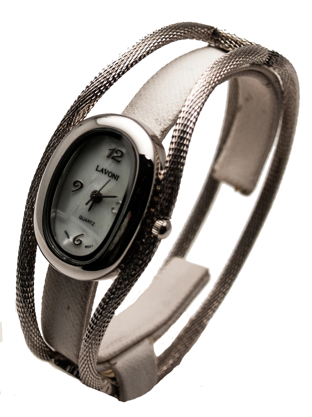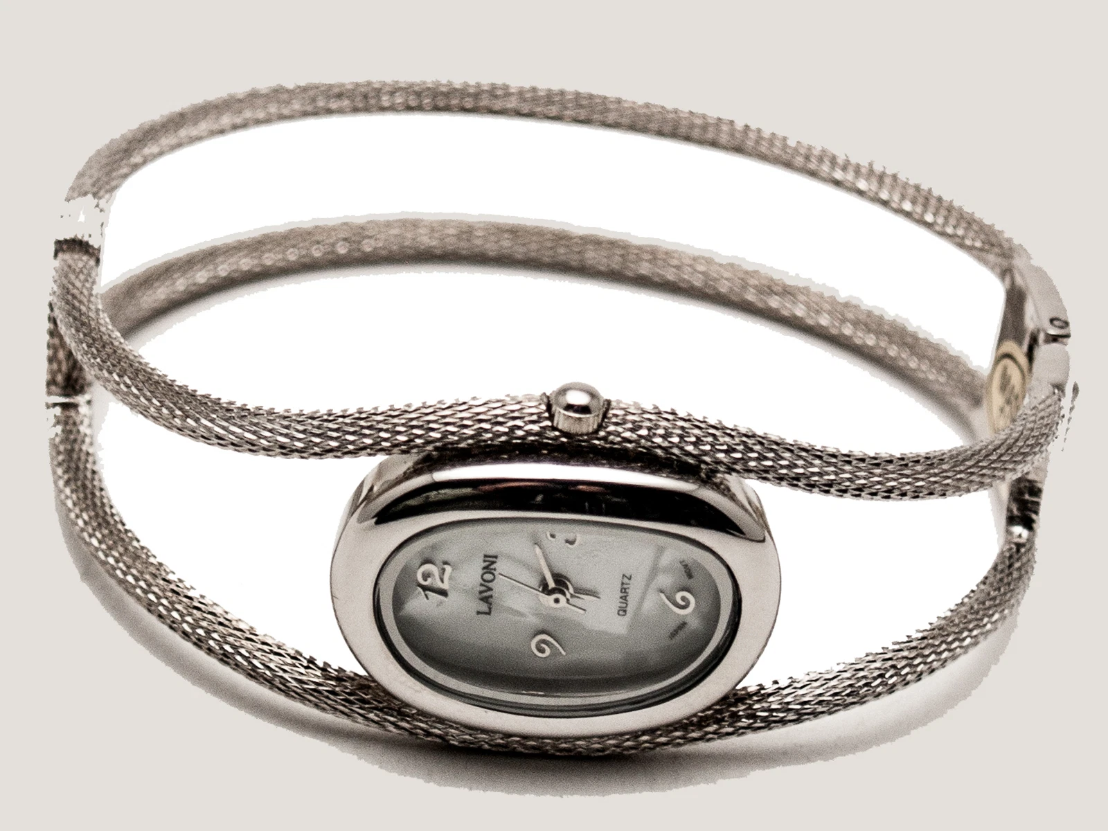 LAVONI: WOMEN VINTAGE ANTIQUE LOOK WIRE BANGLE BRACELET ANALOG OVAL QUARTZ WATCH