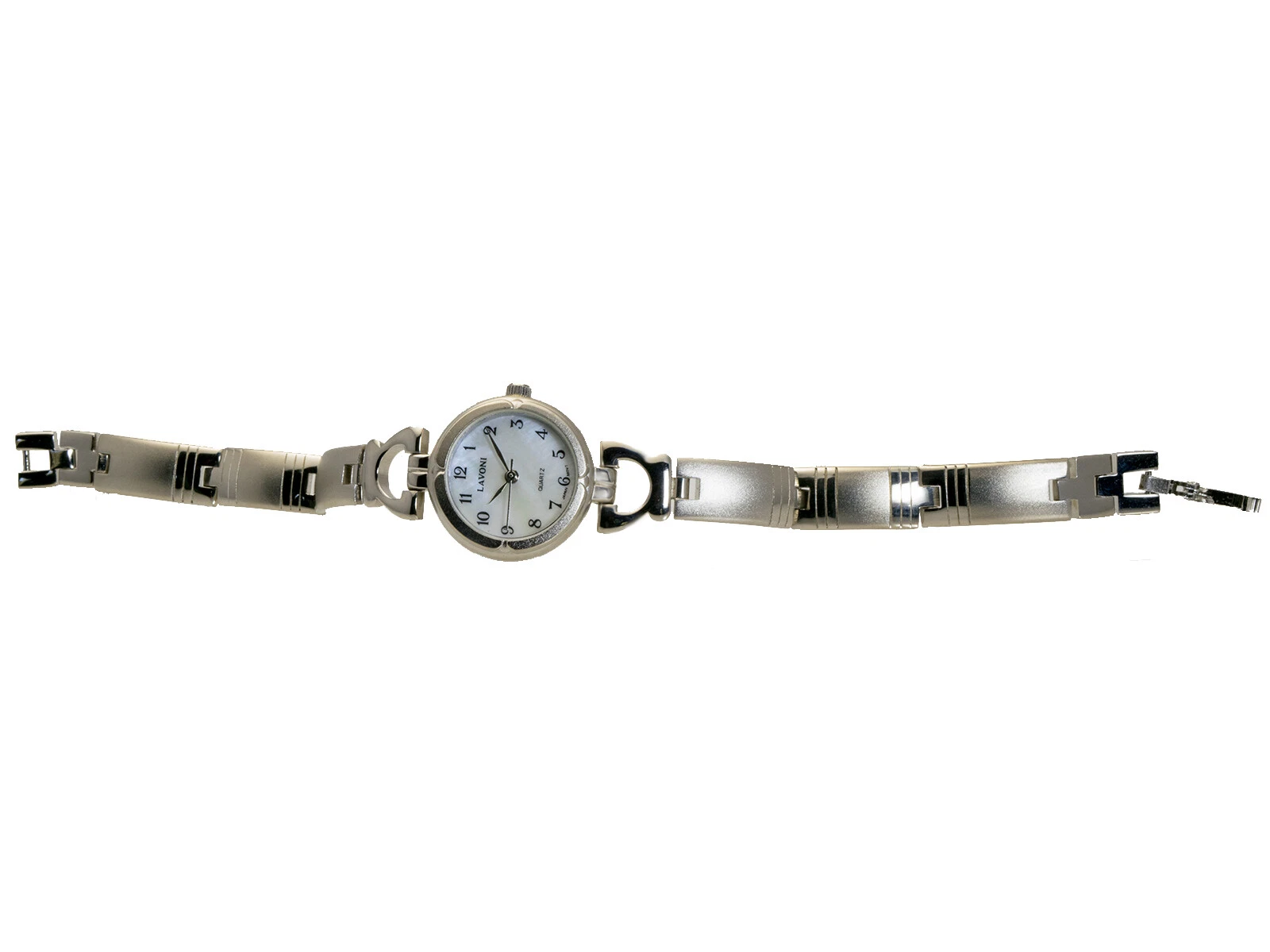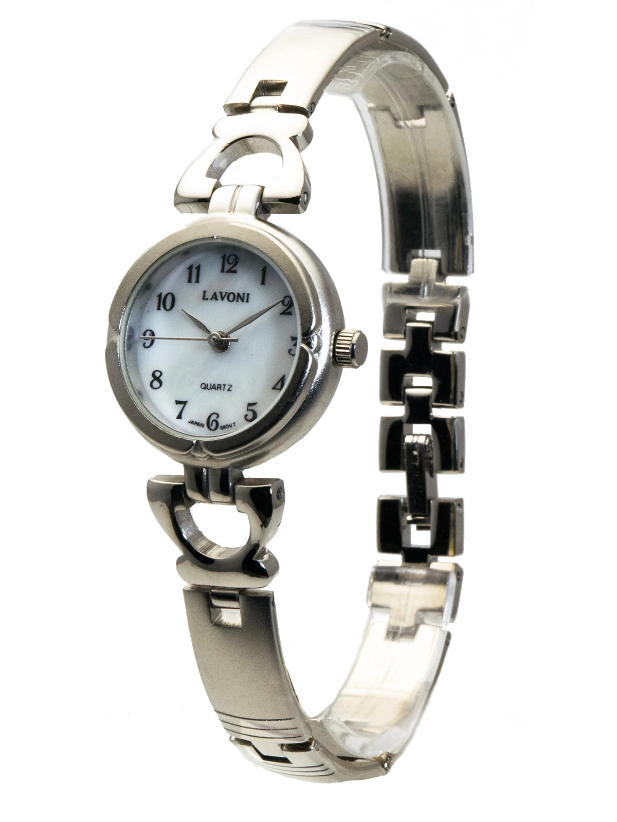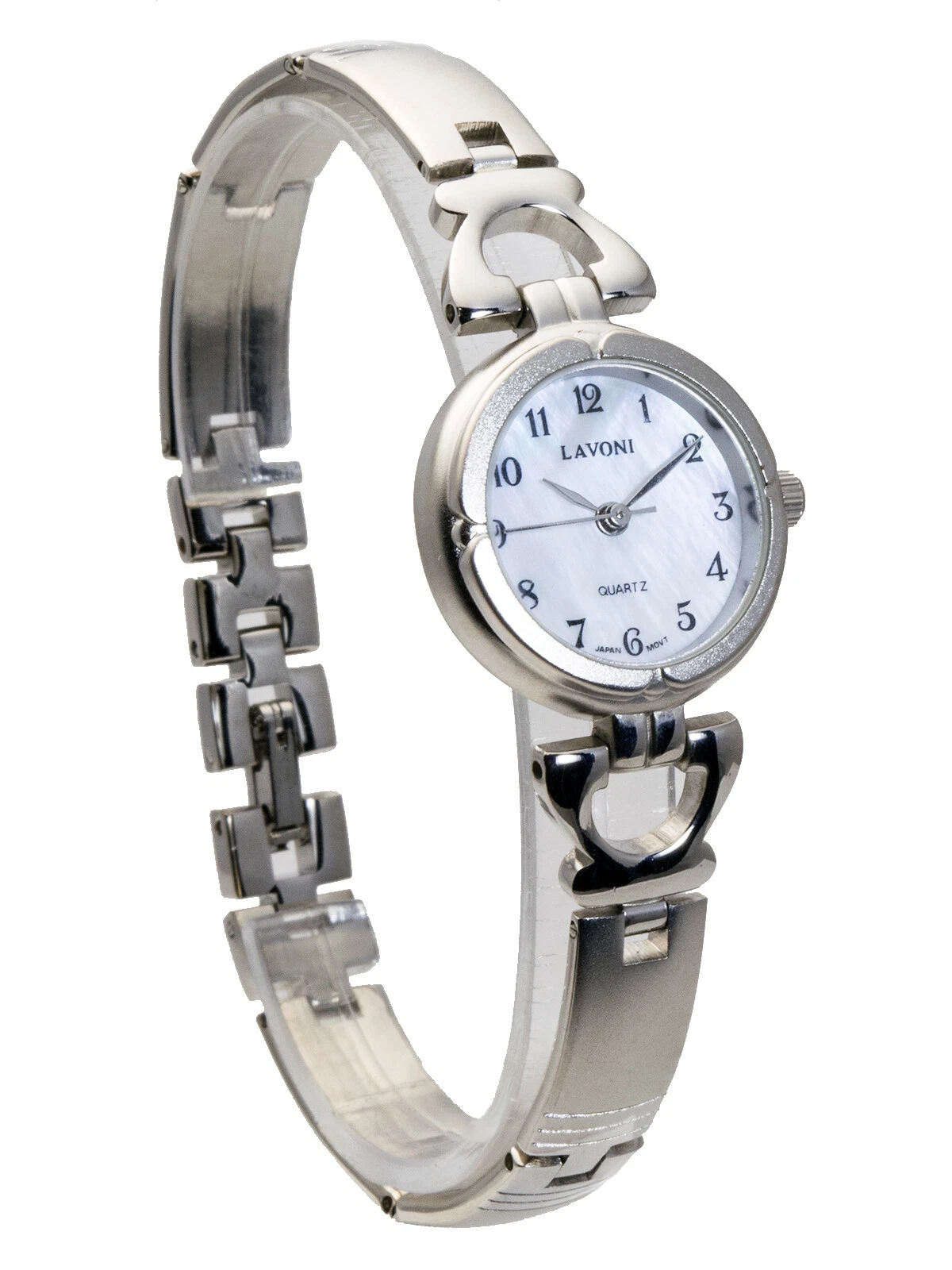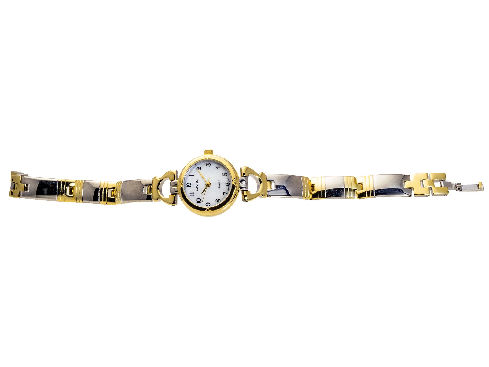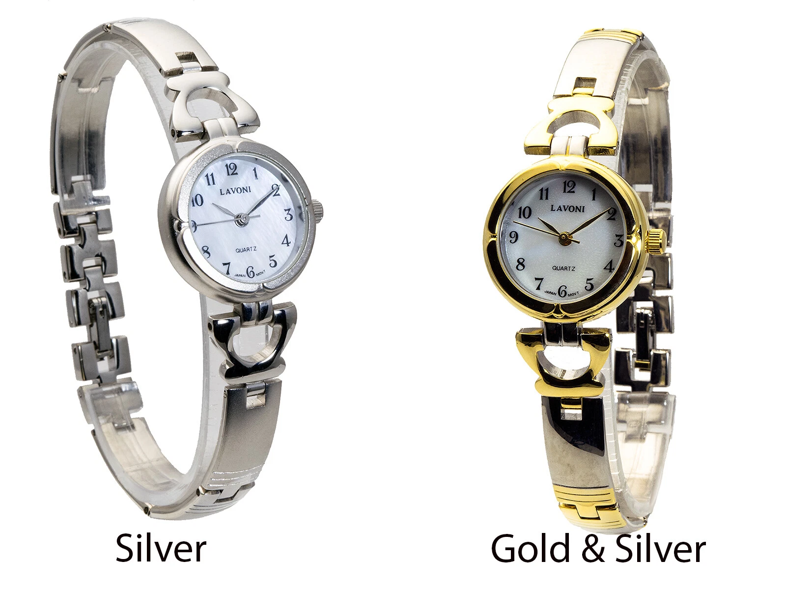 LAVONI:WOMENS' SILVER/GOLD METAL FINISH ROUND CASE MOP DIAL ANALOG QUARTZ WATCH