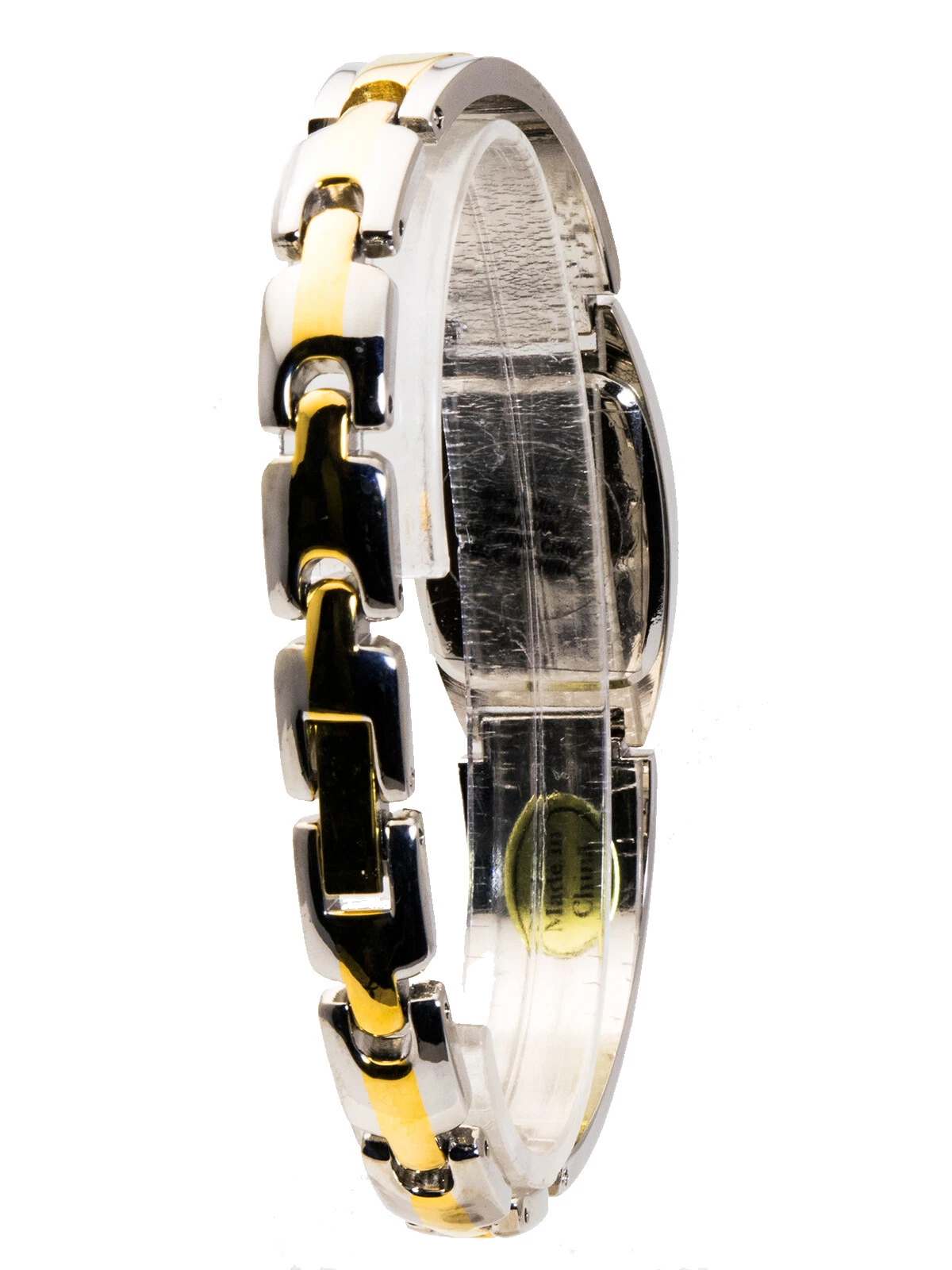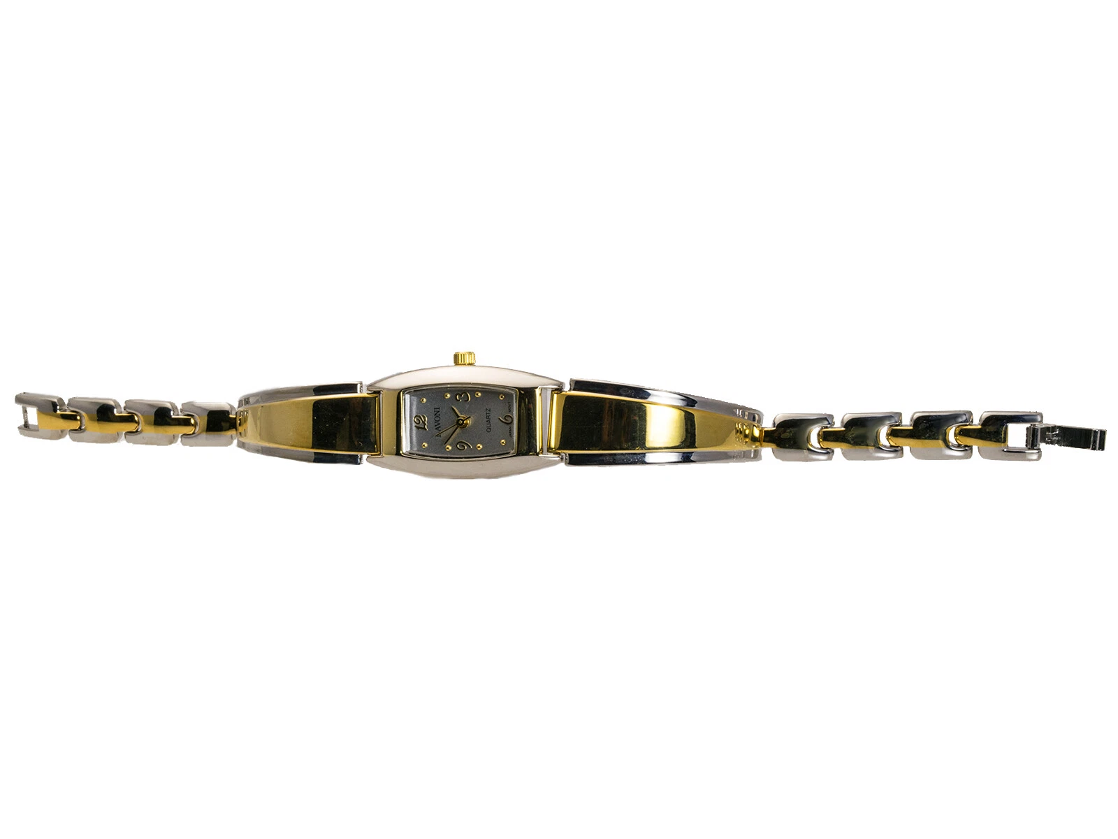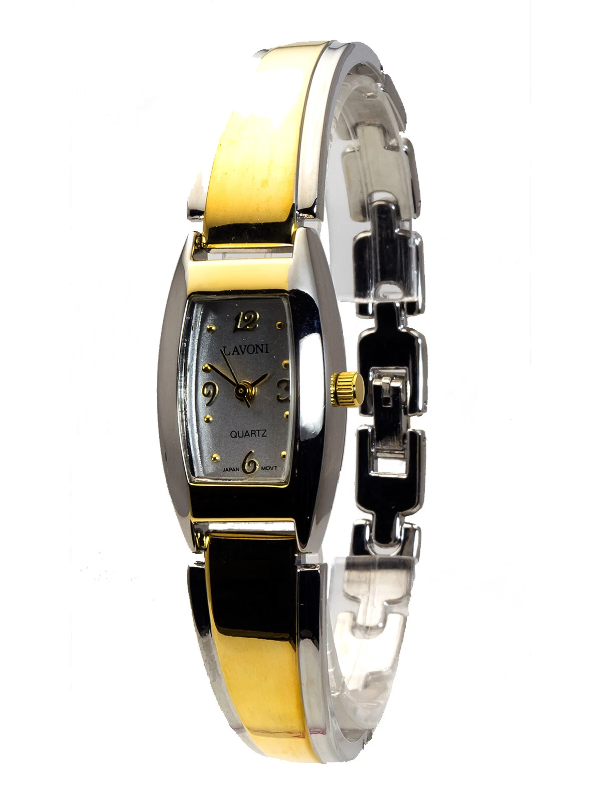 LAVONI:WOMENS' SILVER/GOLD METAL FINISH OVAL CASE SILVER DIAL ANALOG QRTZ WATCH