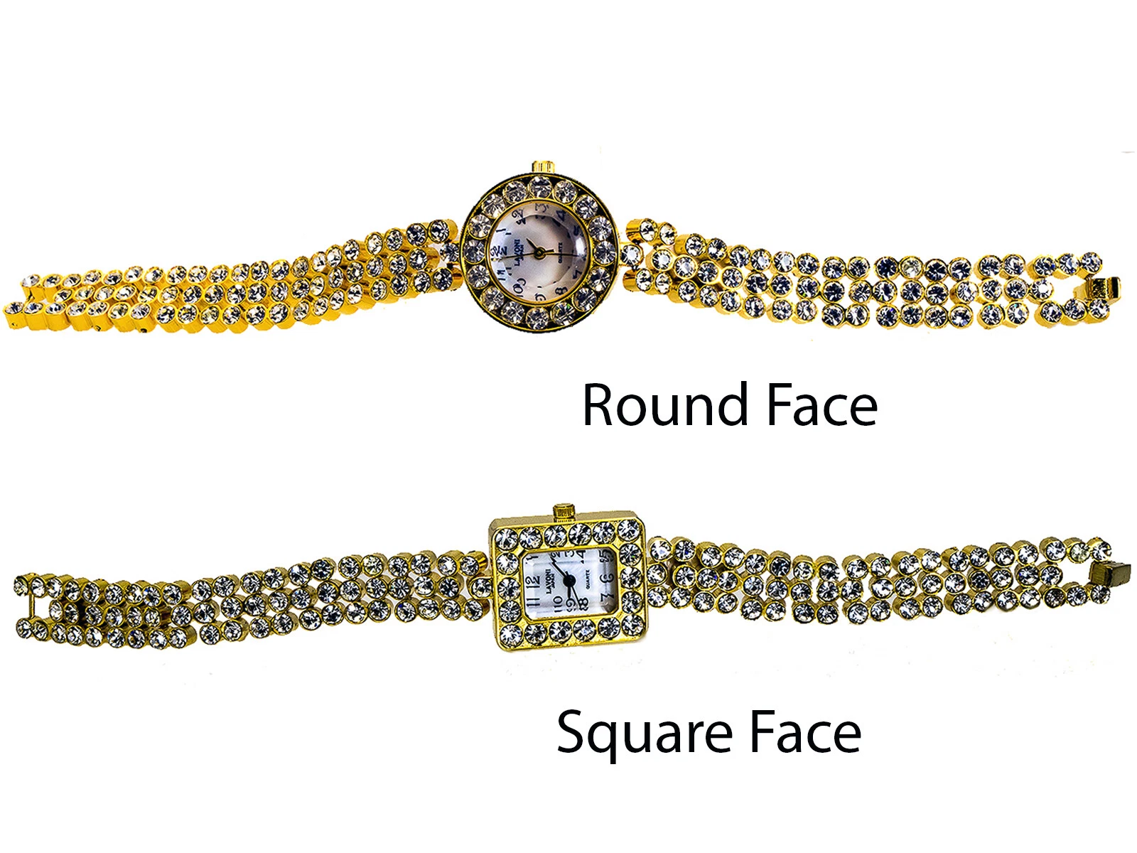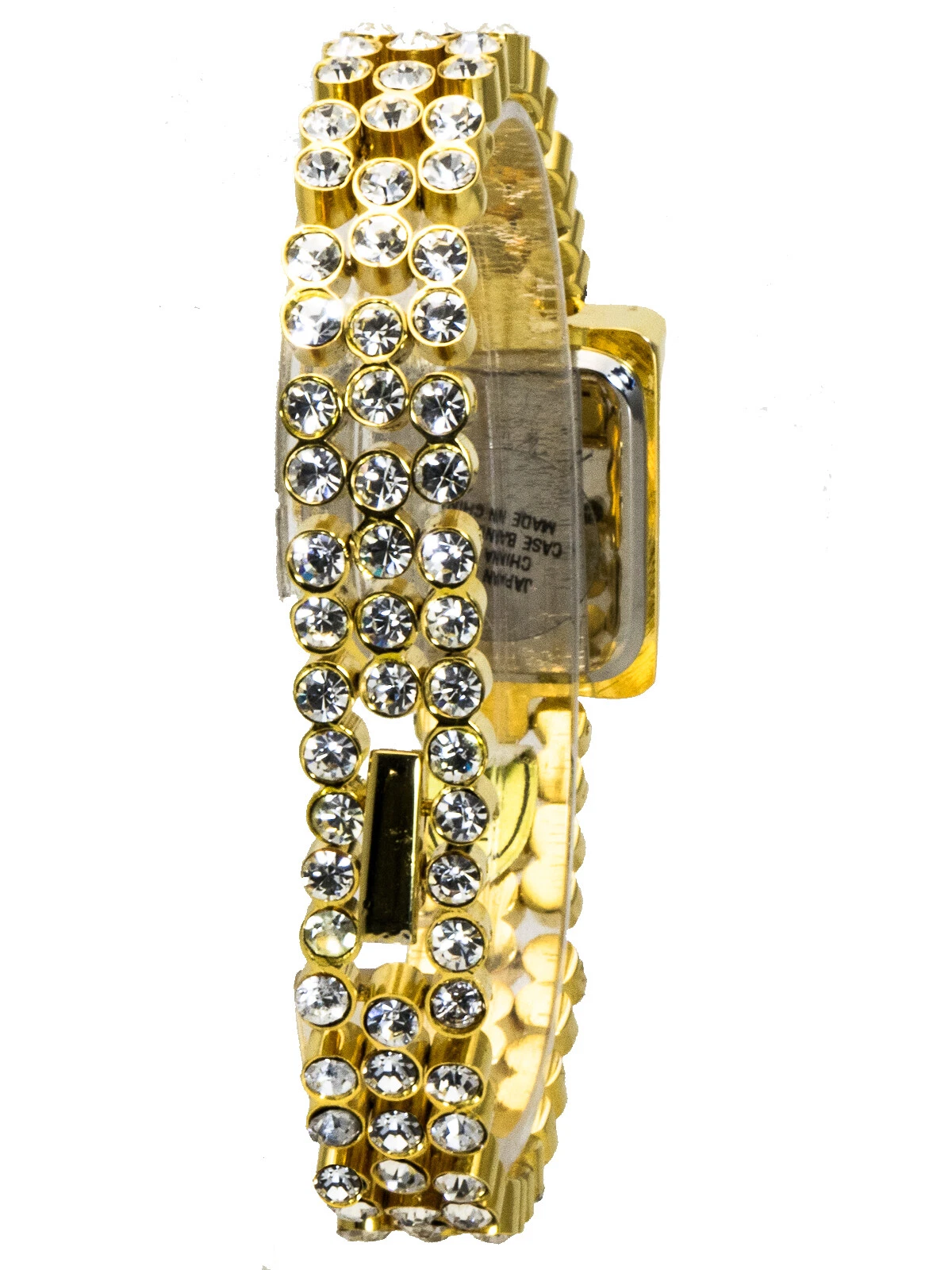 LAVONI:WOMENS' GOLD FINISH WITH FULL STONE METAL BAND ROUND/SQUARE CASE WATCH