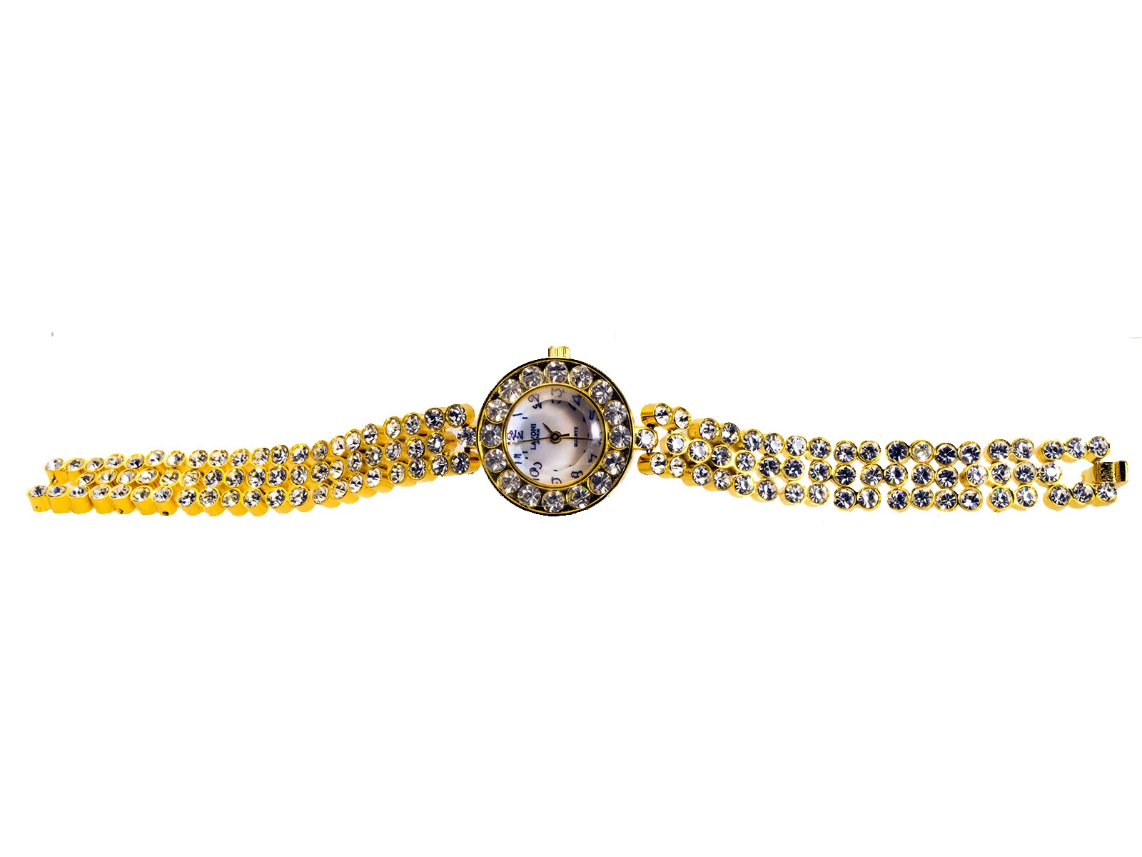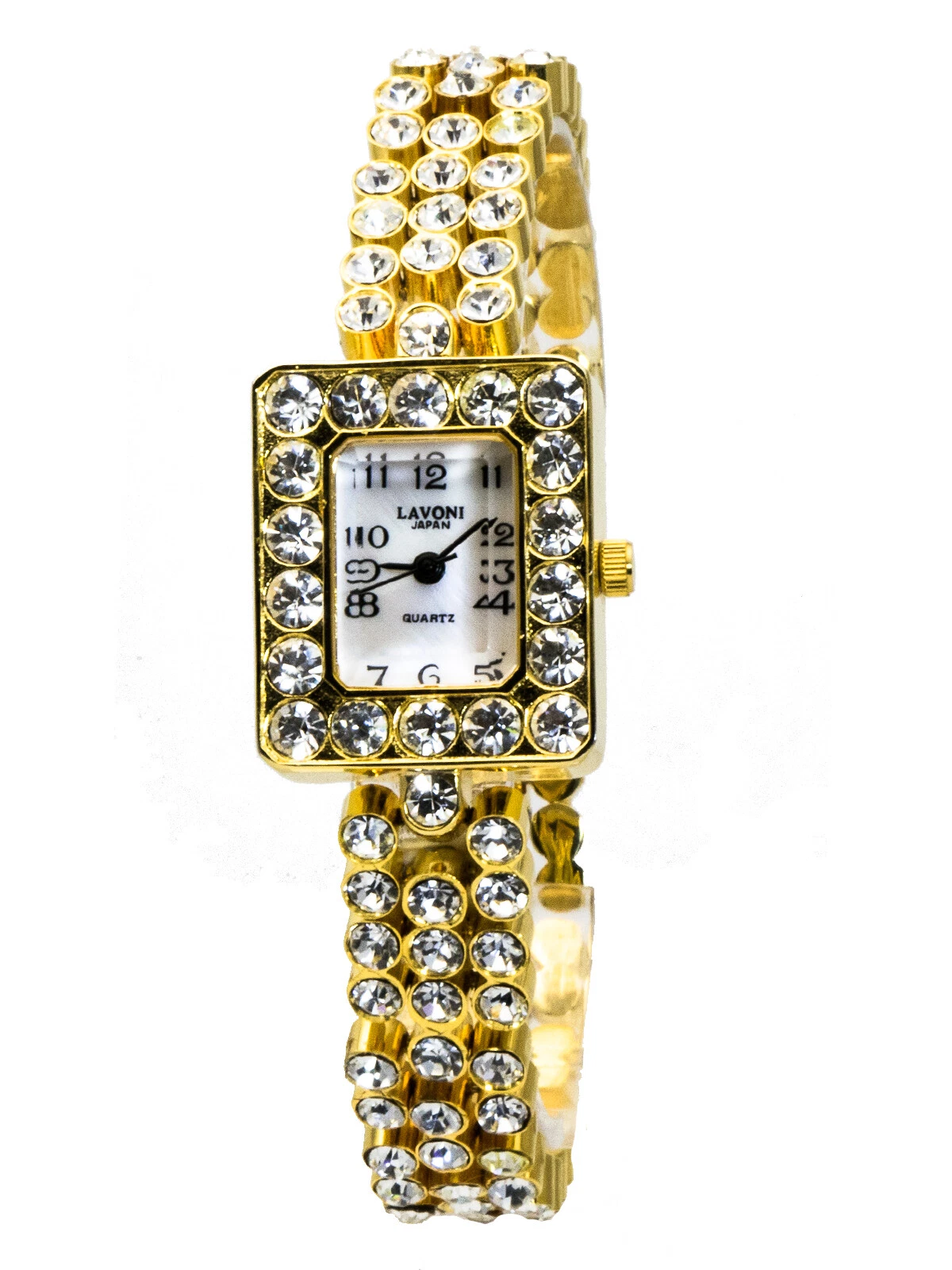 LAVONI:WOMENS' GOLD FINISH  WITH FULL STONE METAL BAND  ROUND/SQUARE CASE  WATCH