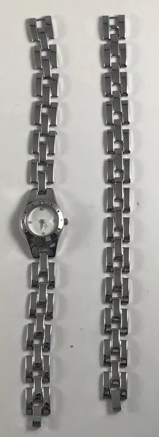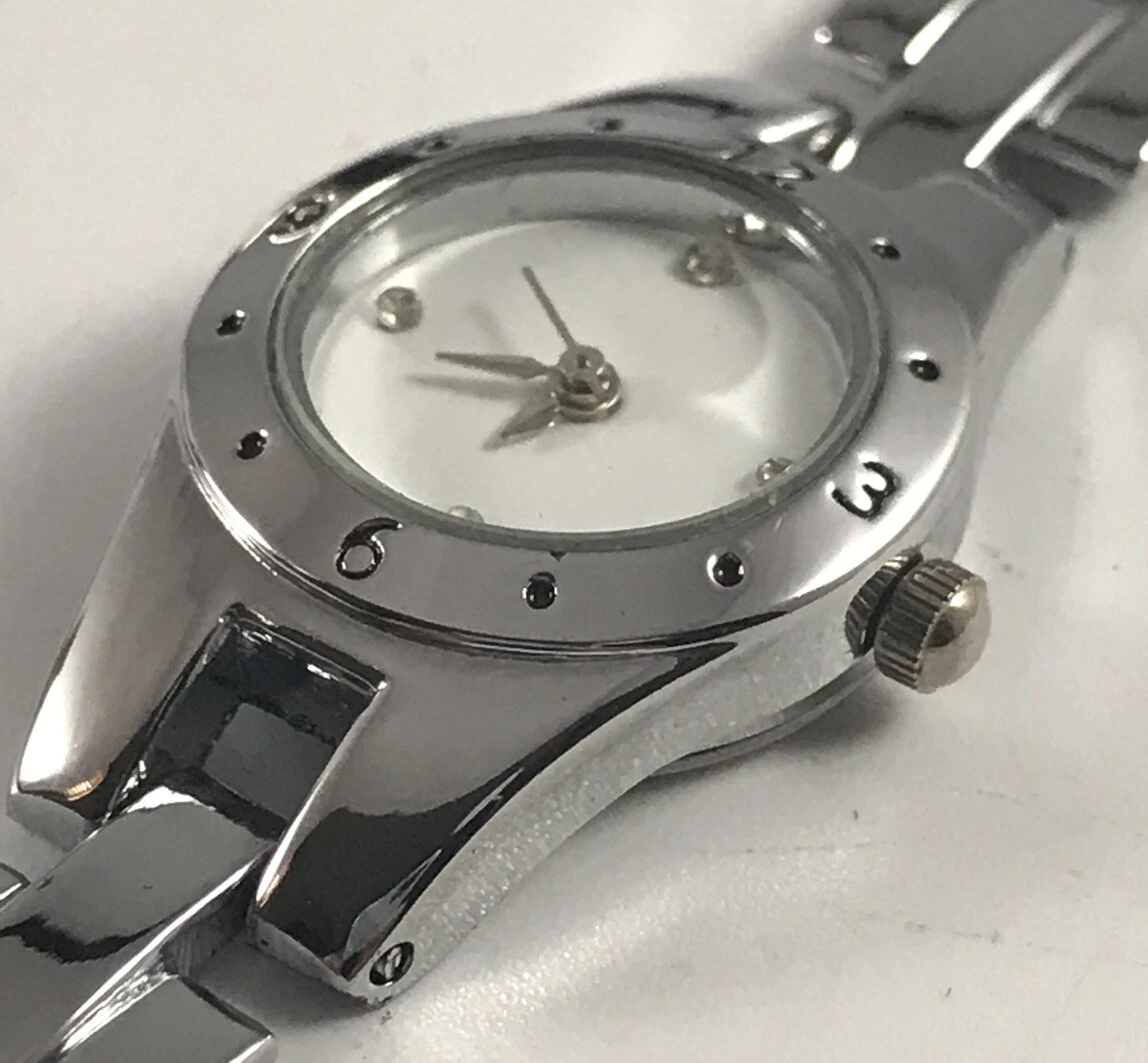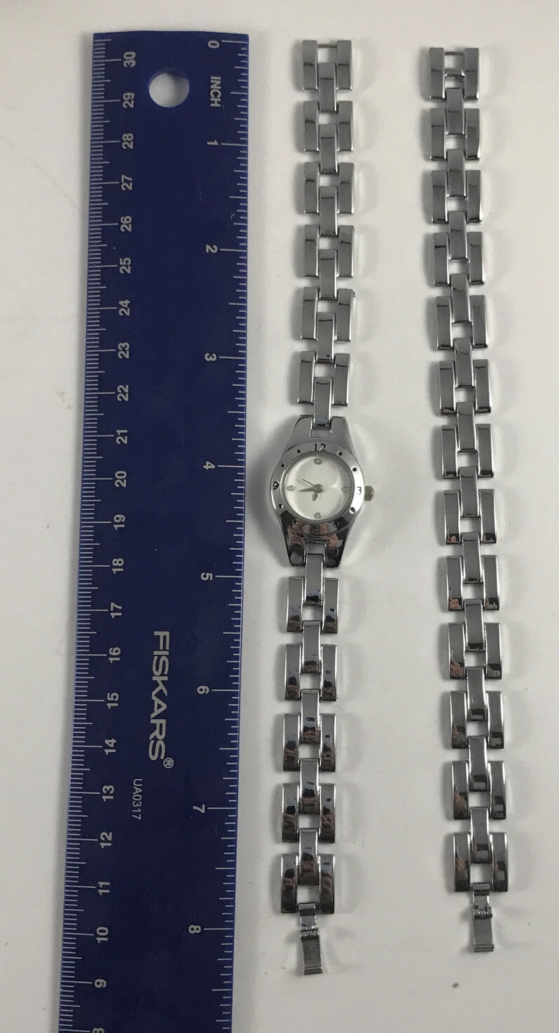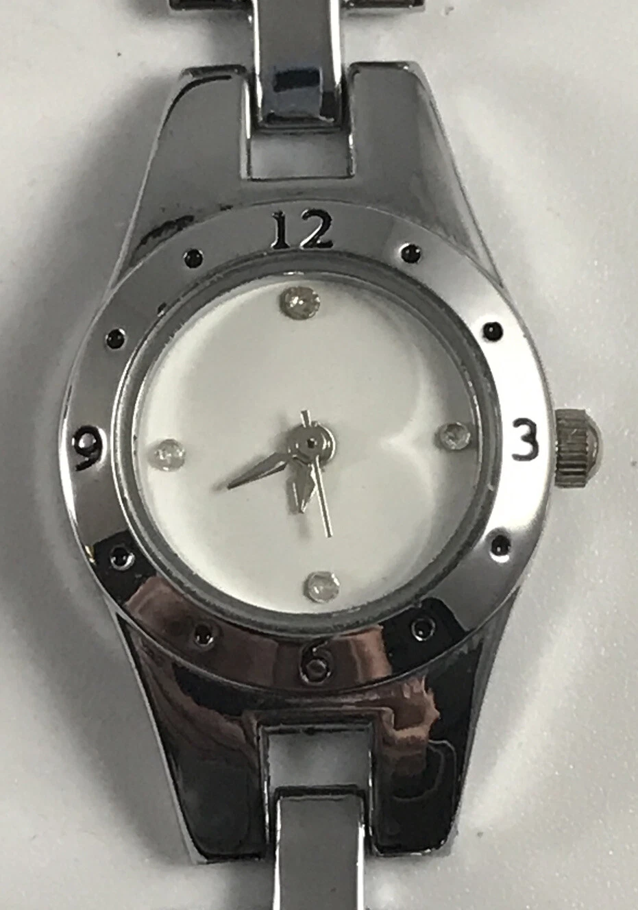 Haband Women’s Silver Tone White Face Round Watch And Bracelet Combo