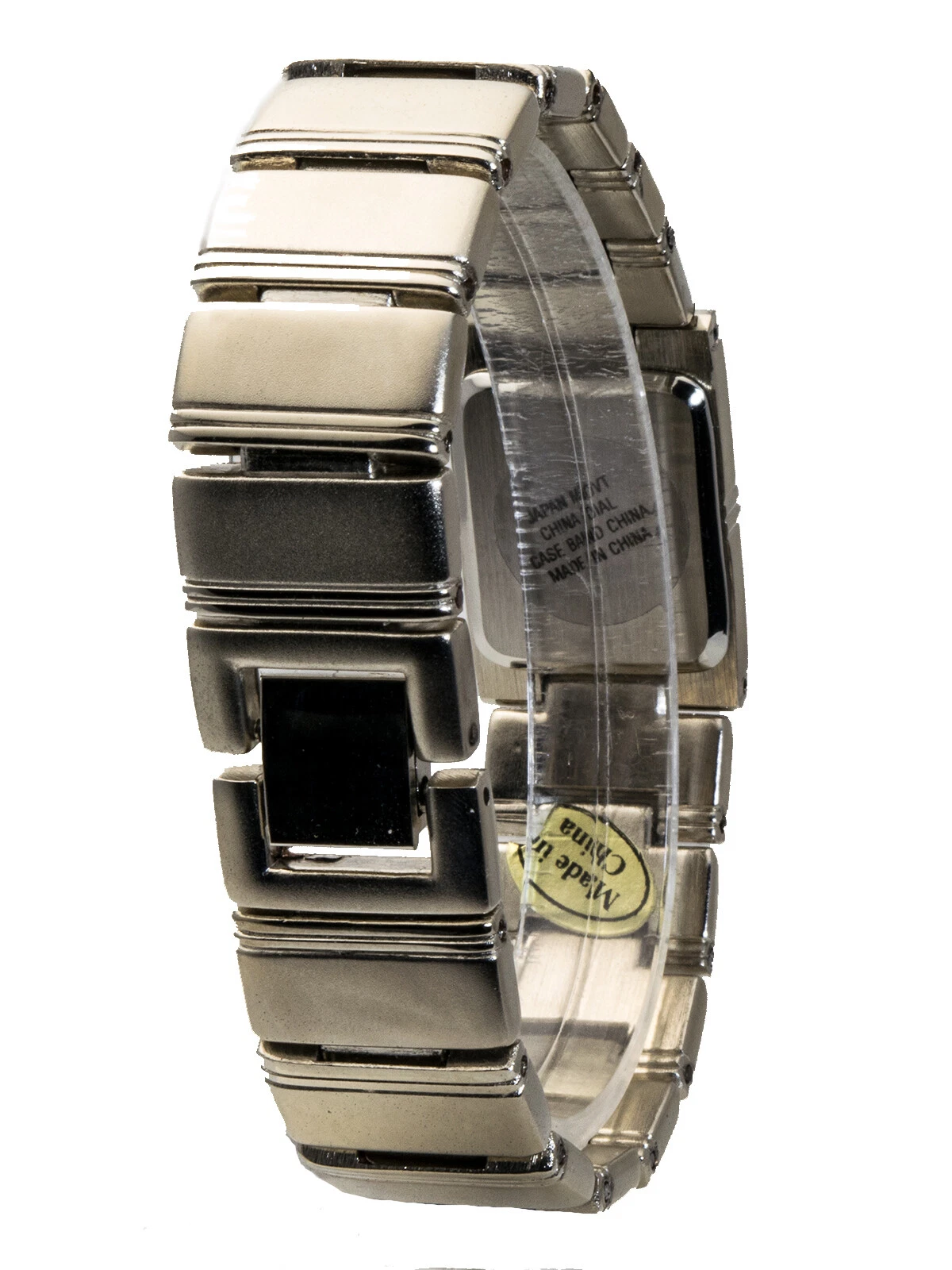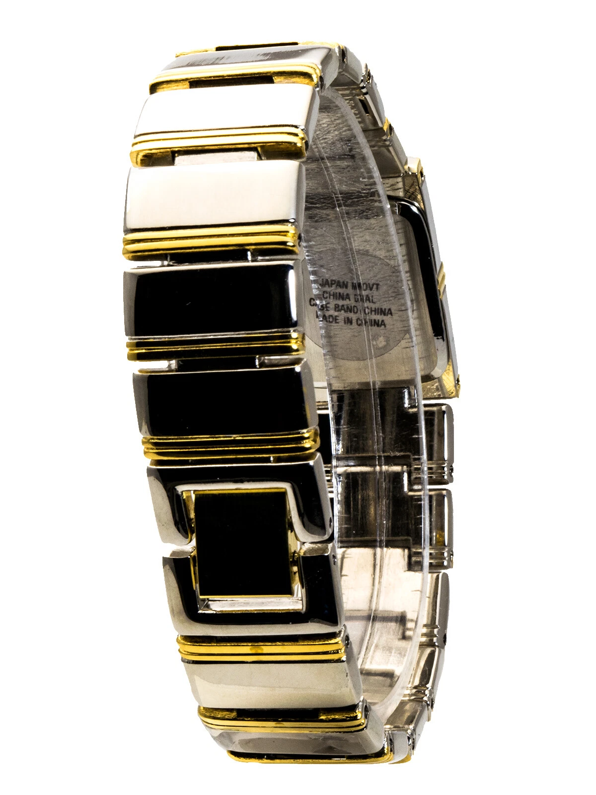 LAVONI:WOMENS' SILVER/GOLD METAL FINISH RECTANGLE CASE ANALOG QUARTZ WATCH