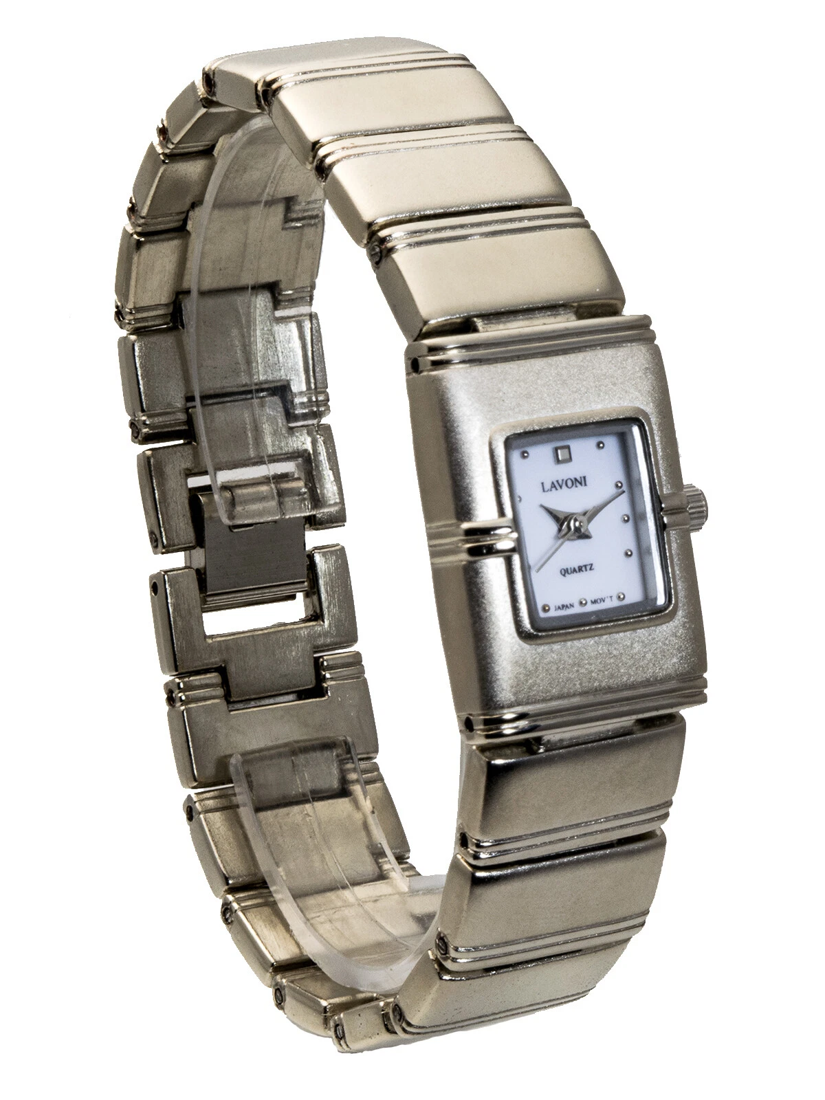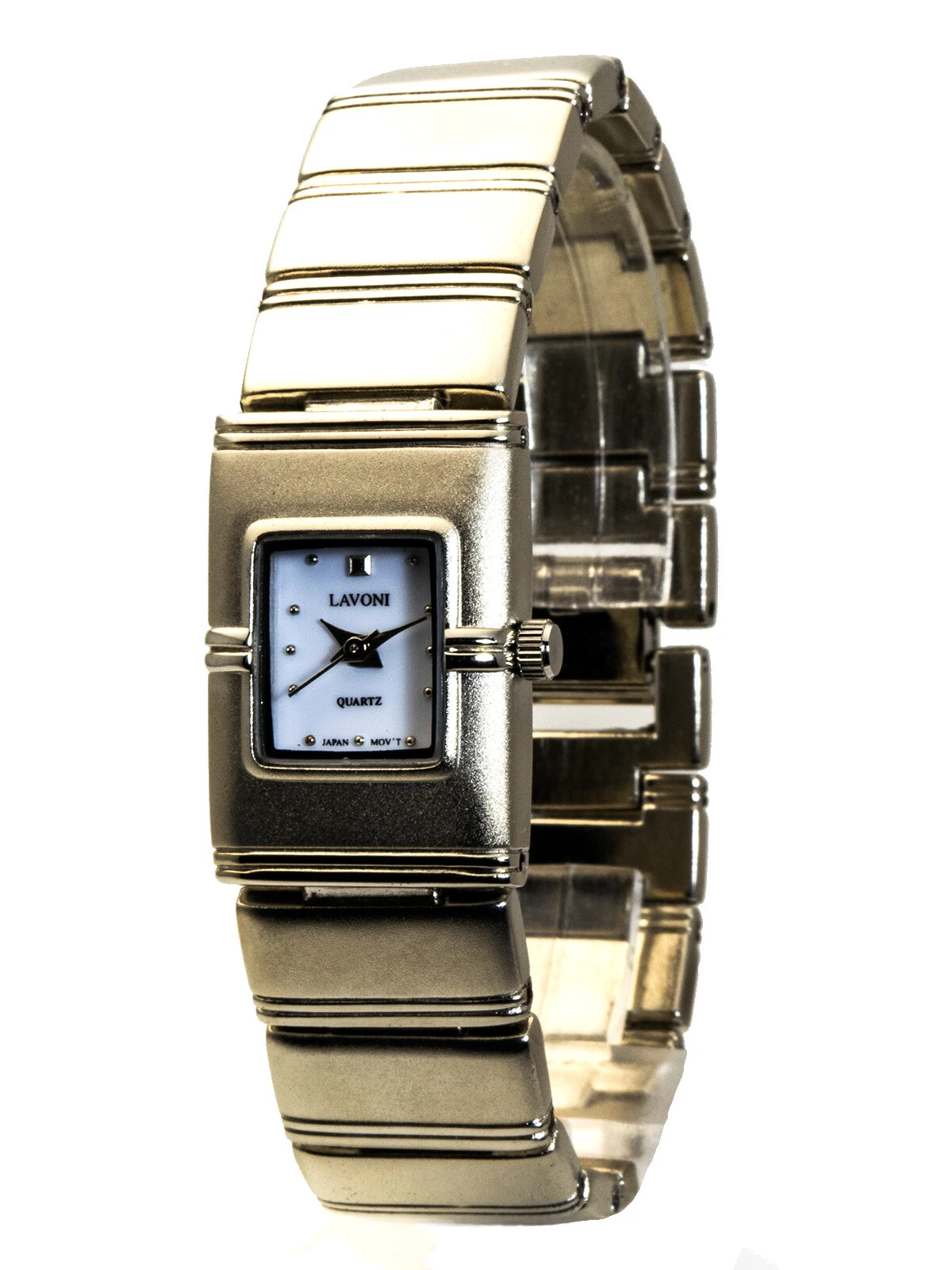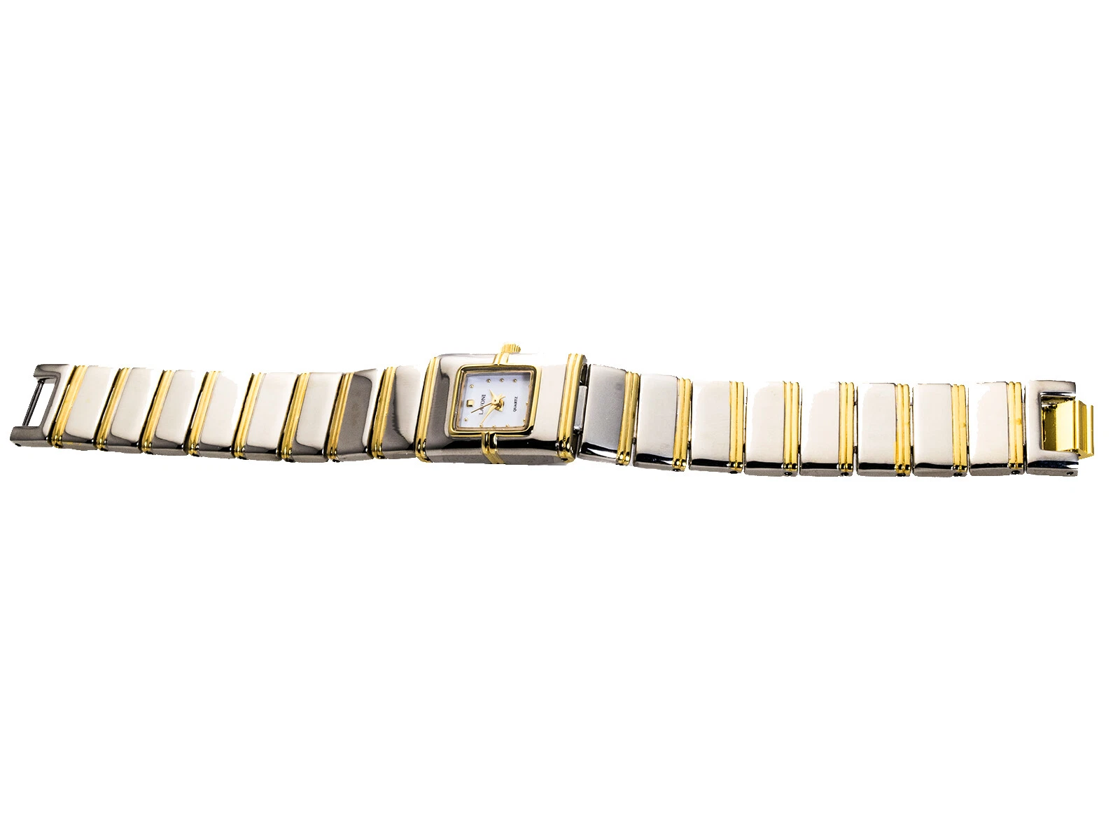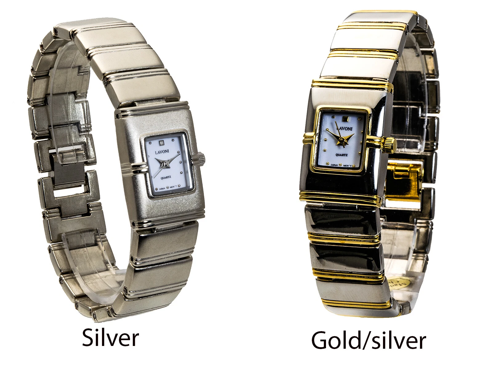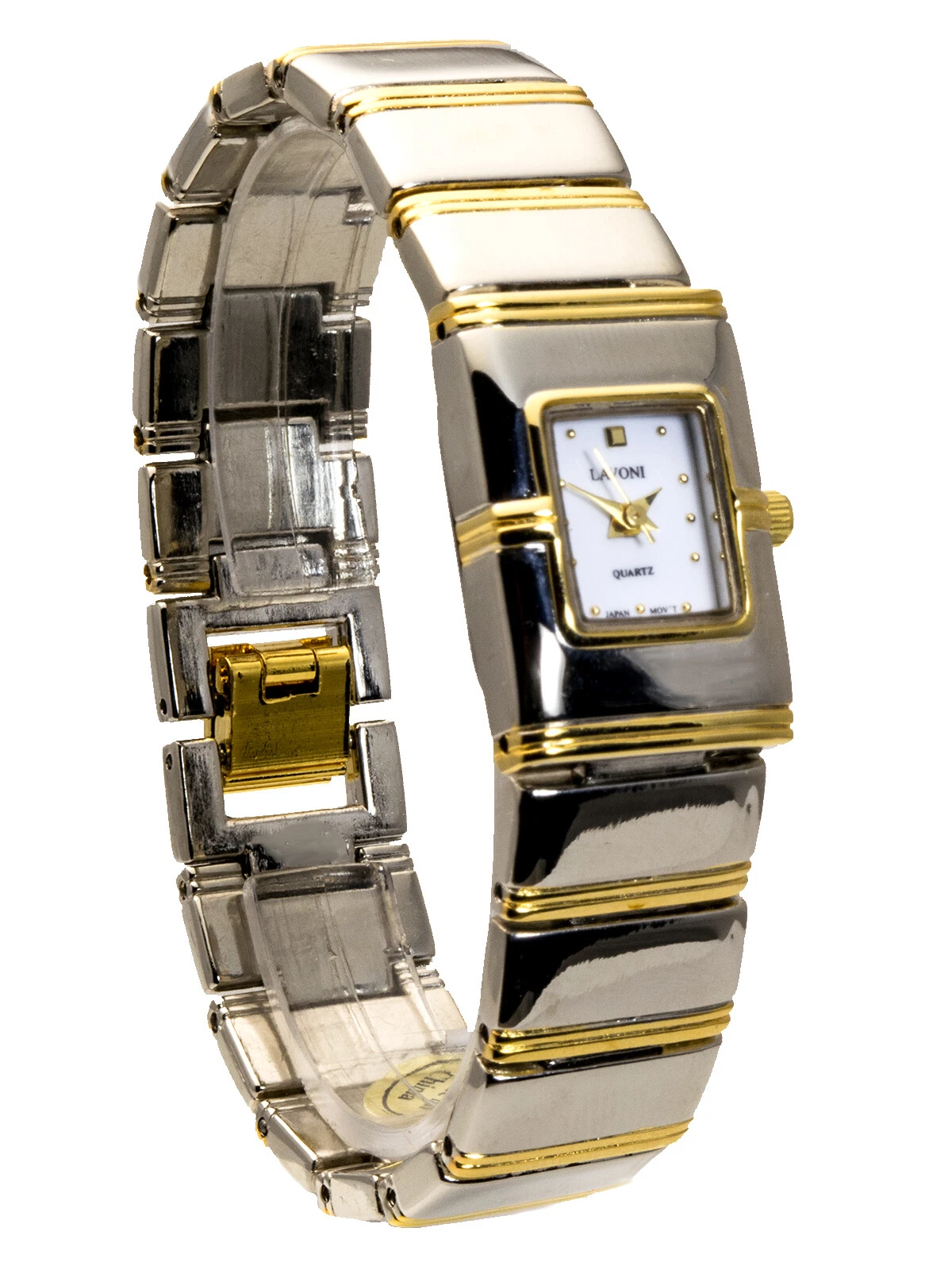 LAVONI:WOMENS' SILVER/GOLD METAL FINISH RECTANGLE CASE  ANALOG QUARTZ WATCH