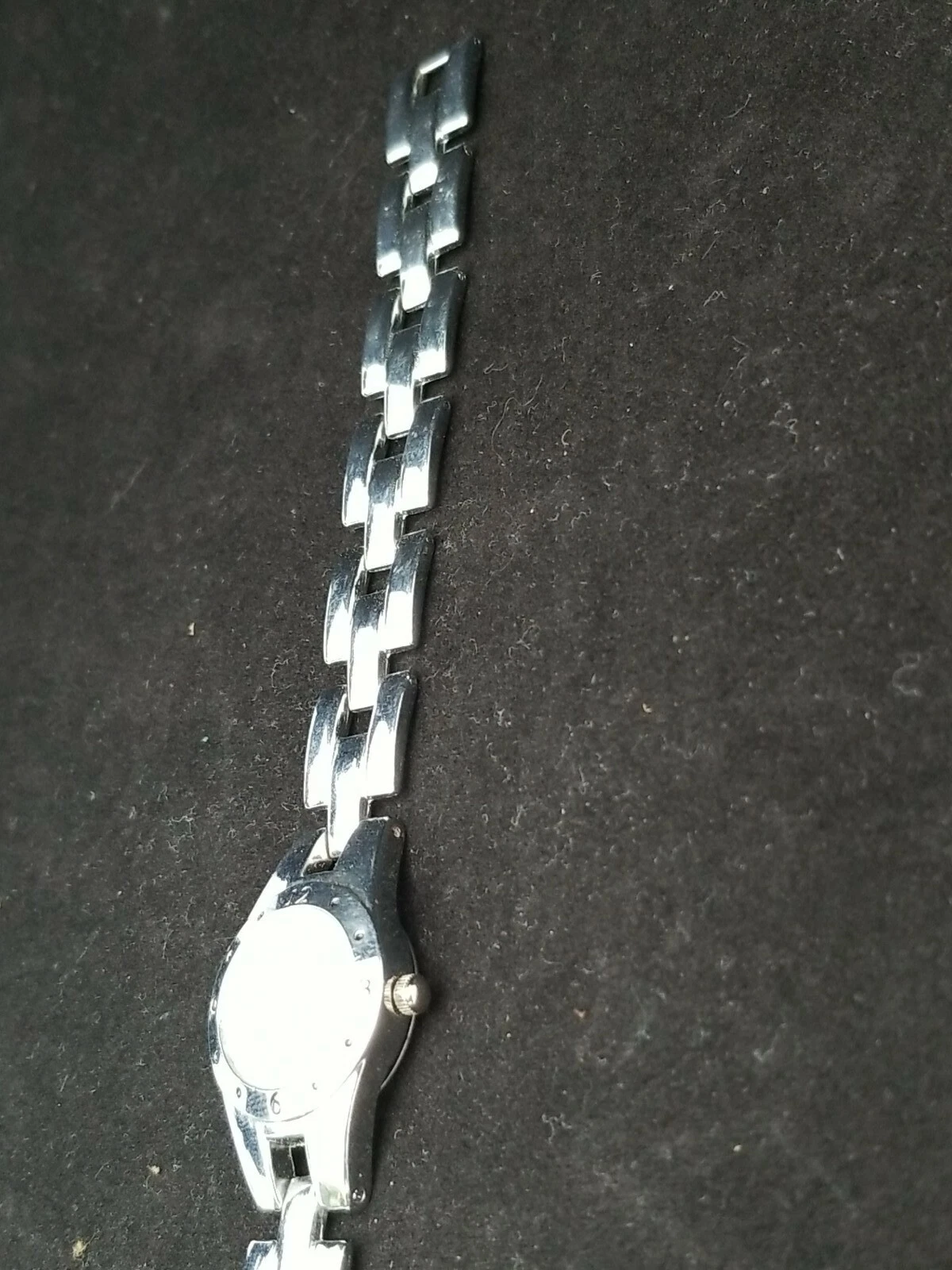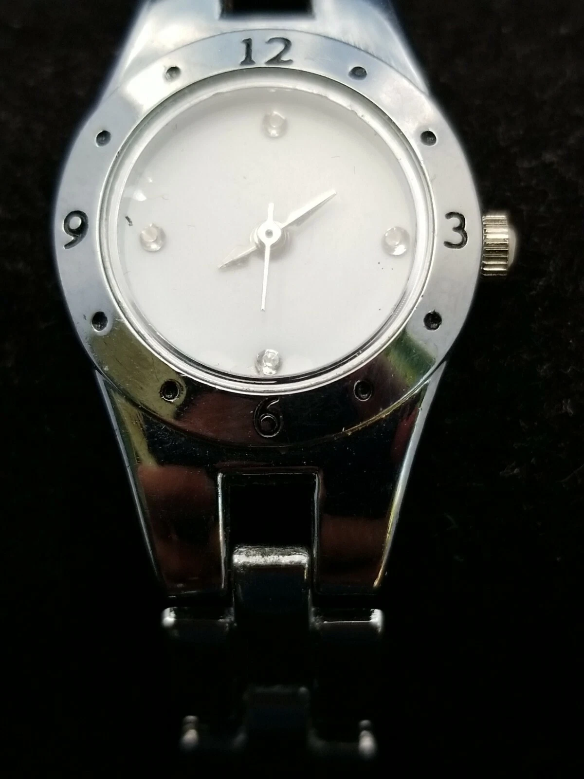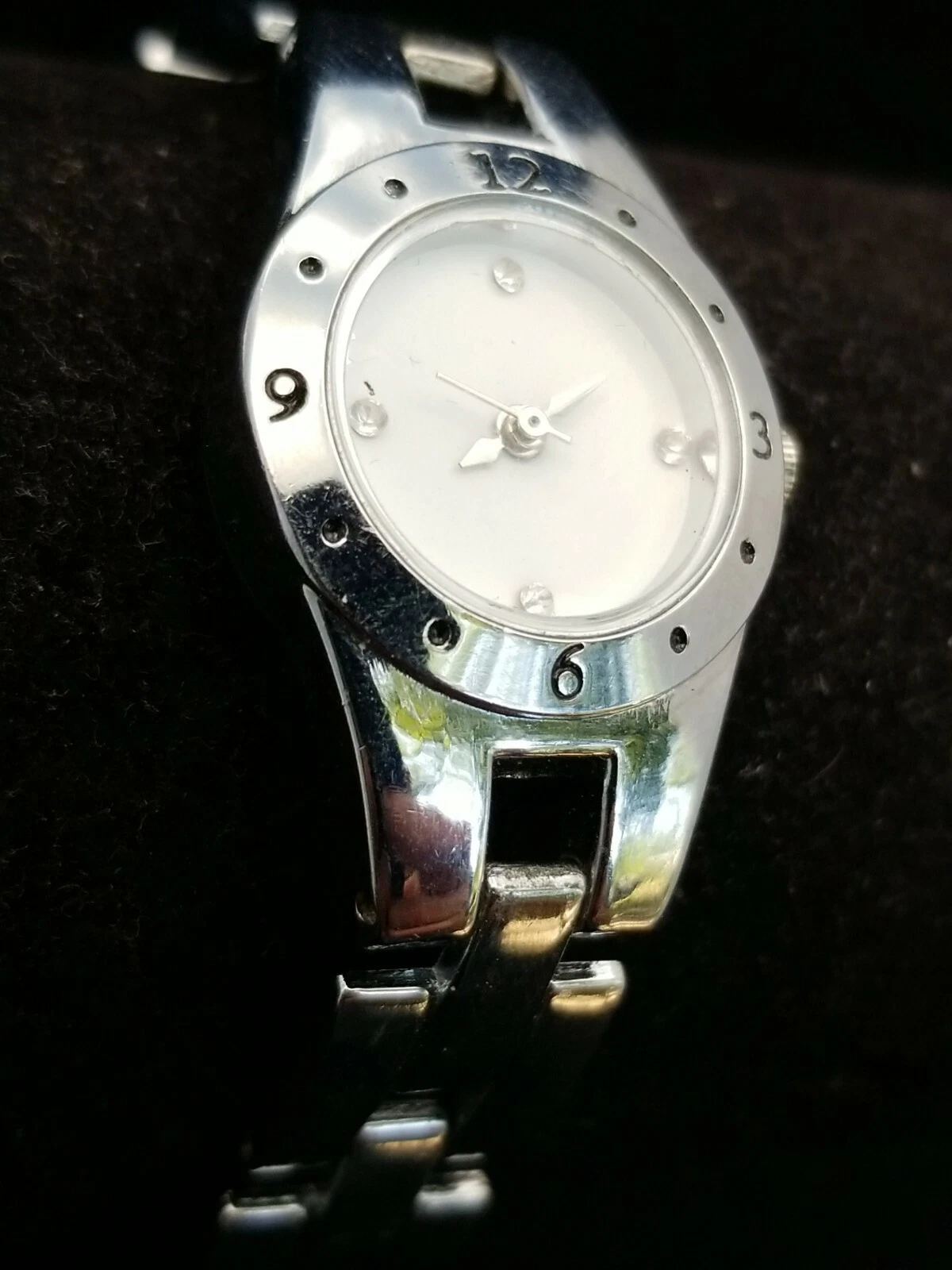 Women's Haband Quartz Watch Silver Bracelet Band White Dial Case Diamond Accent