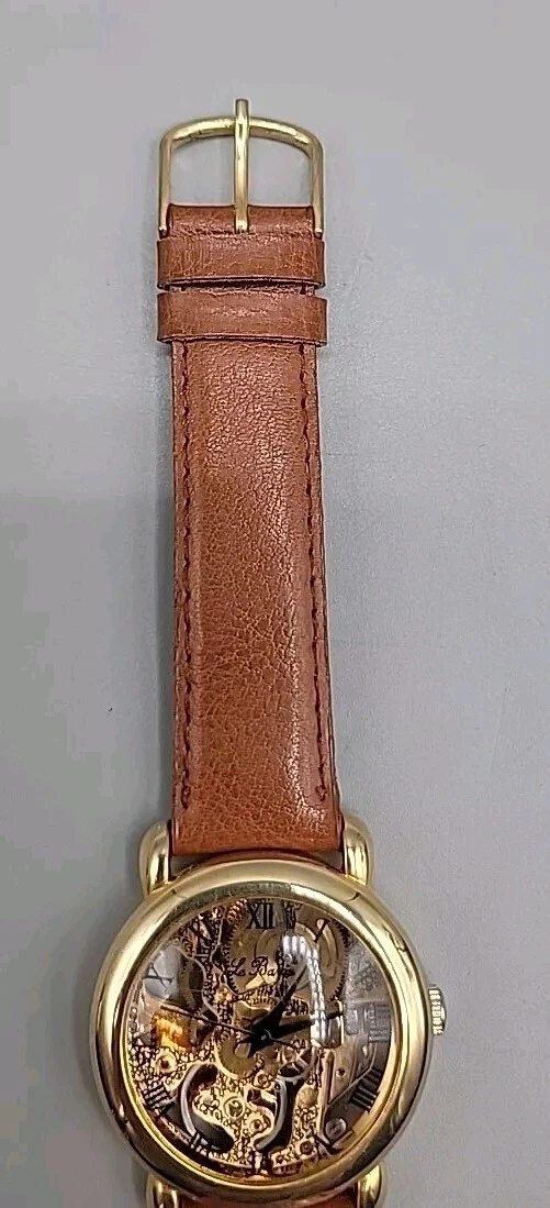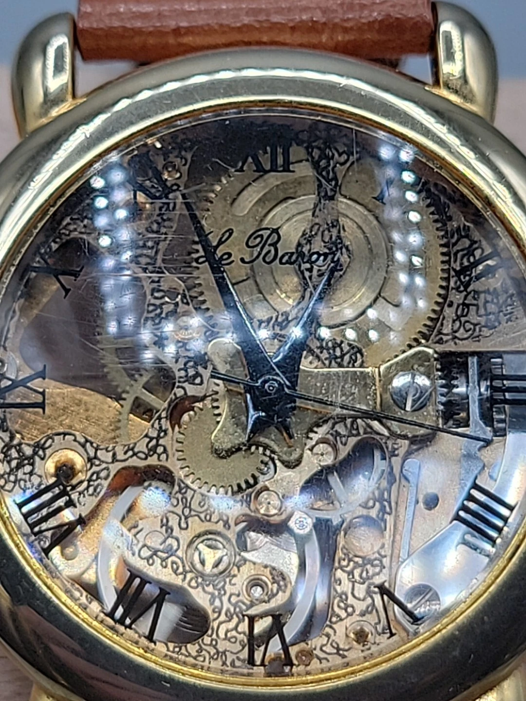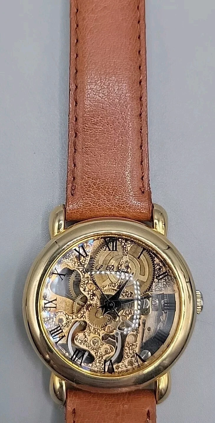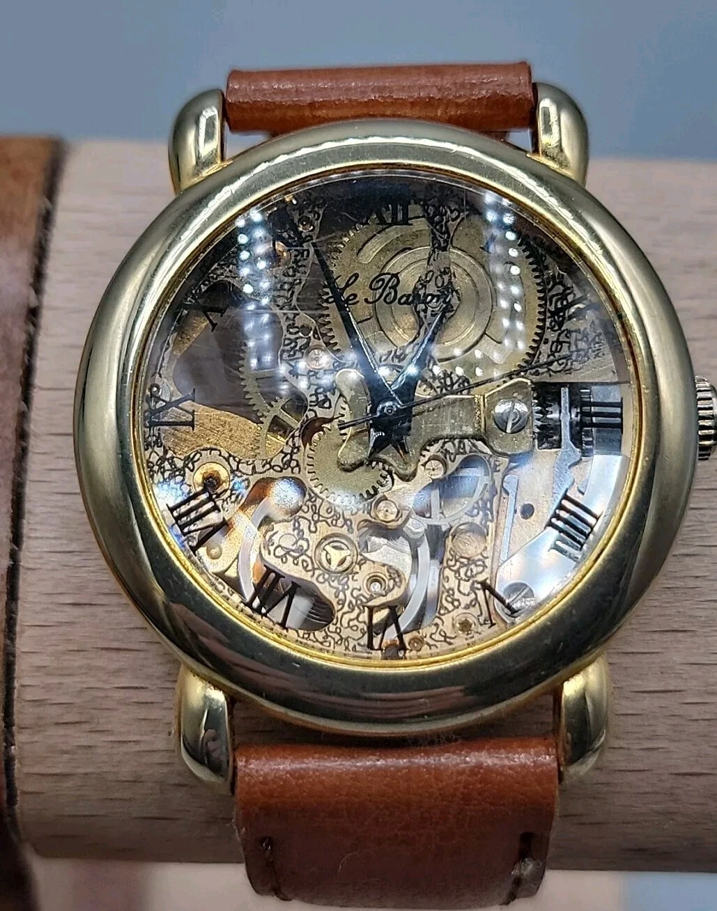 Le Baron Skeleton Ladies Automatic Watch 7.5" Leather Band 35mm Swiss Movement
