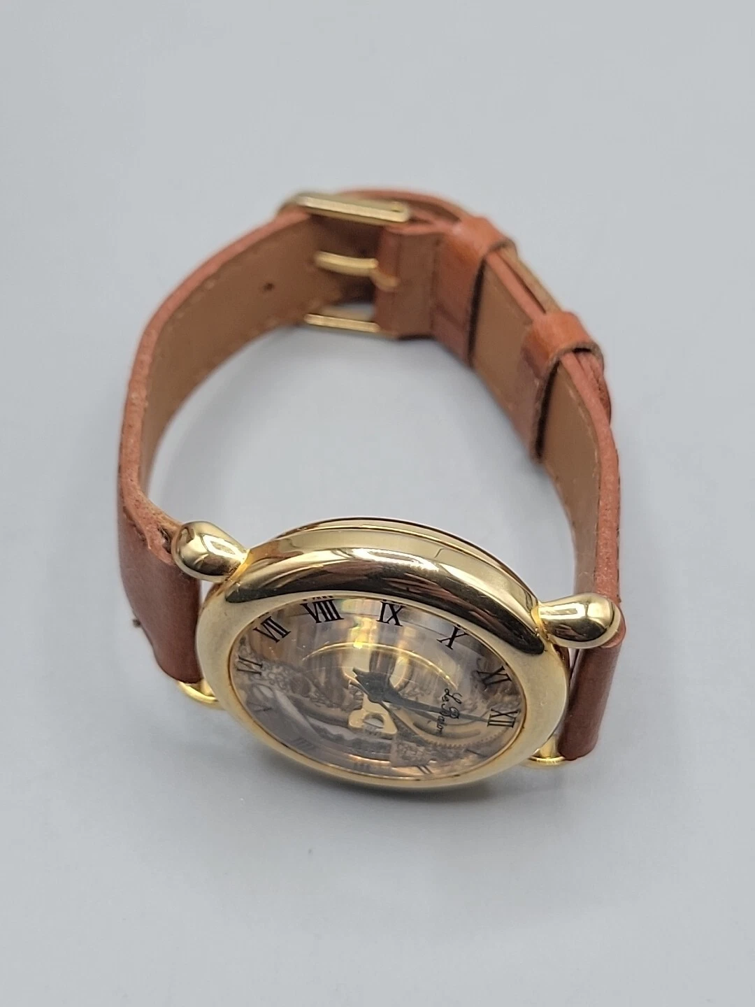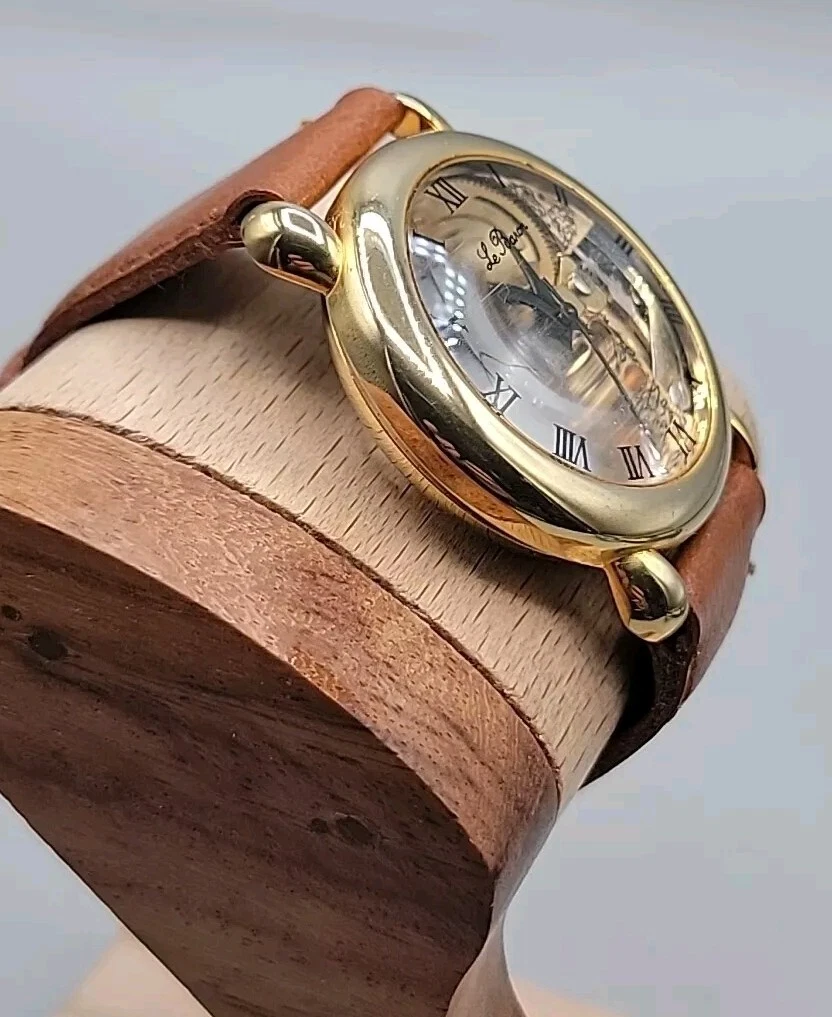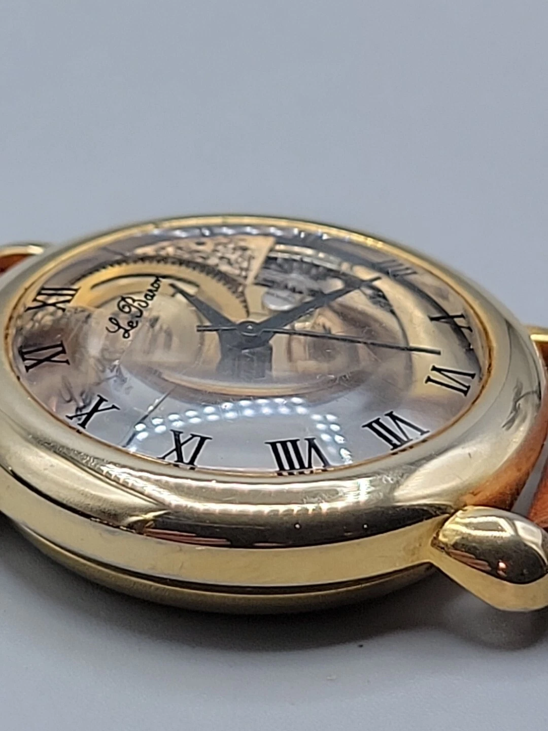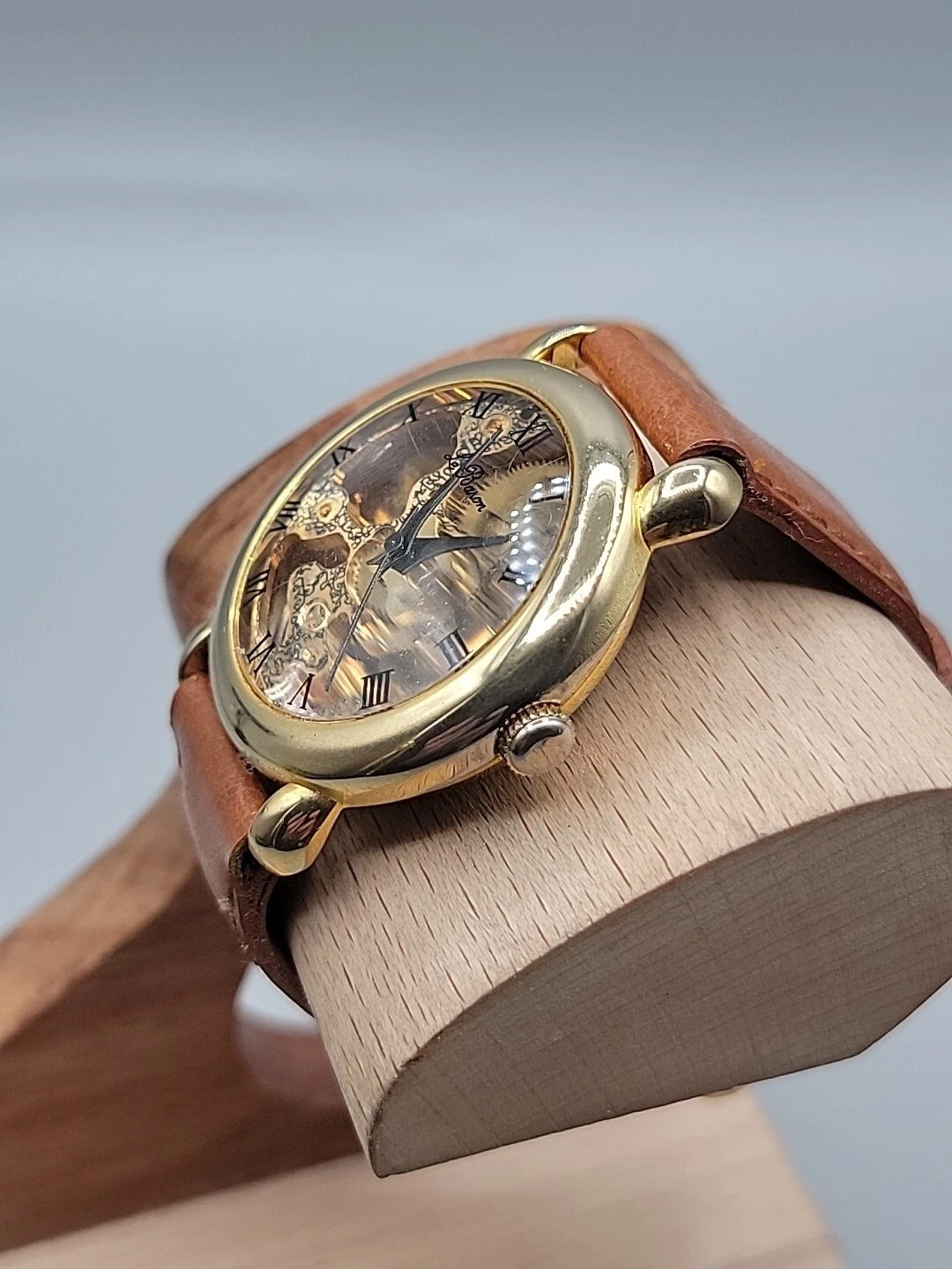 Le Baron Skeleton Ladies Automatic Watch 7.5" Leather Band 35mm Swiss Movement