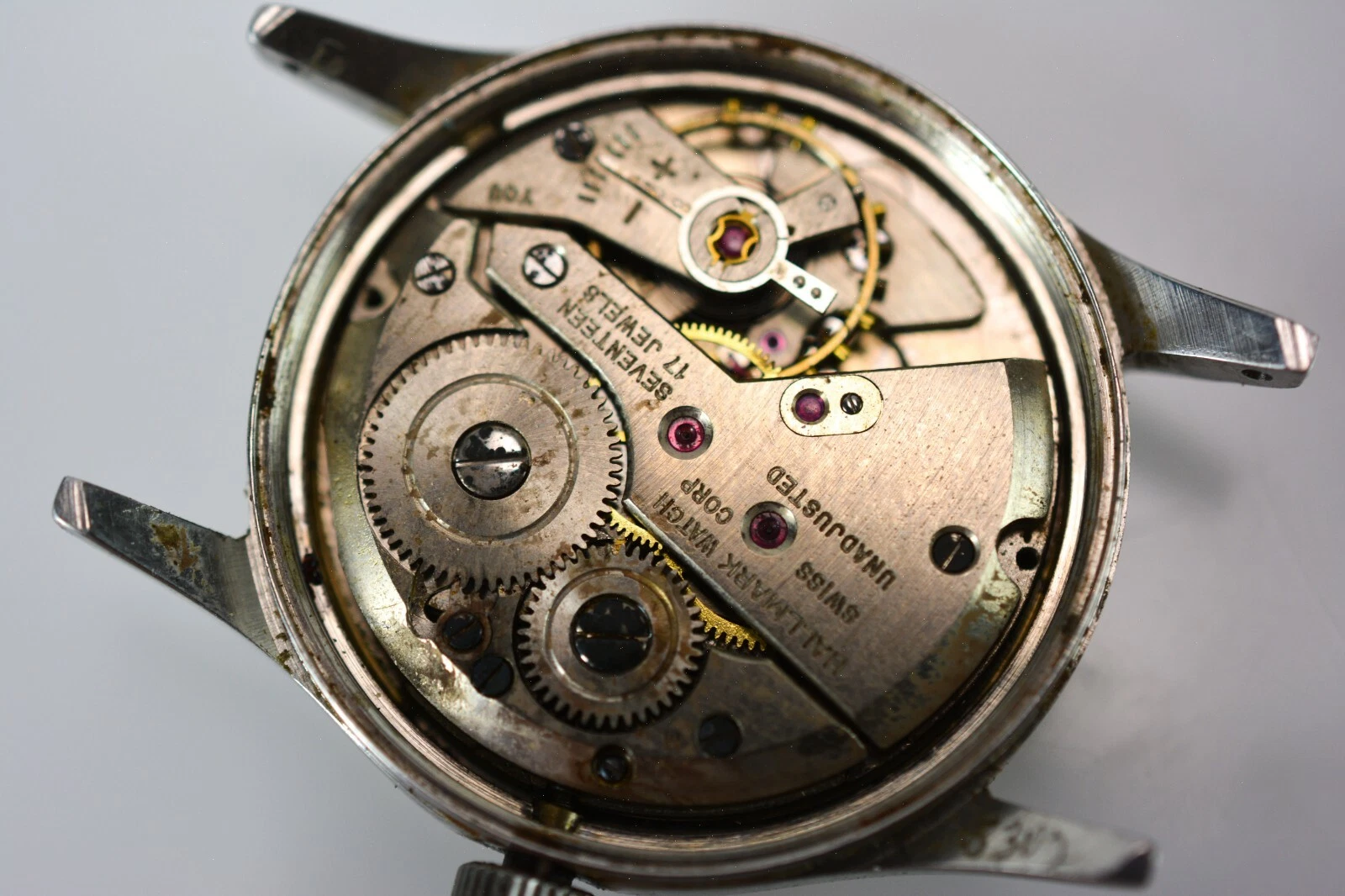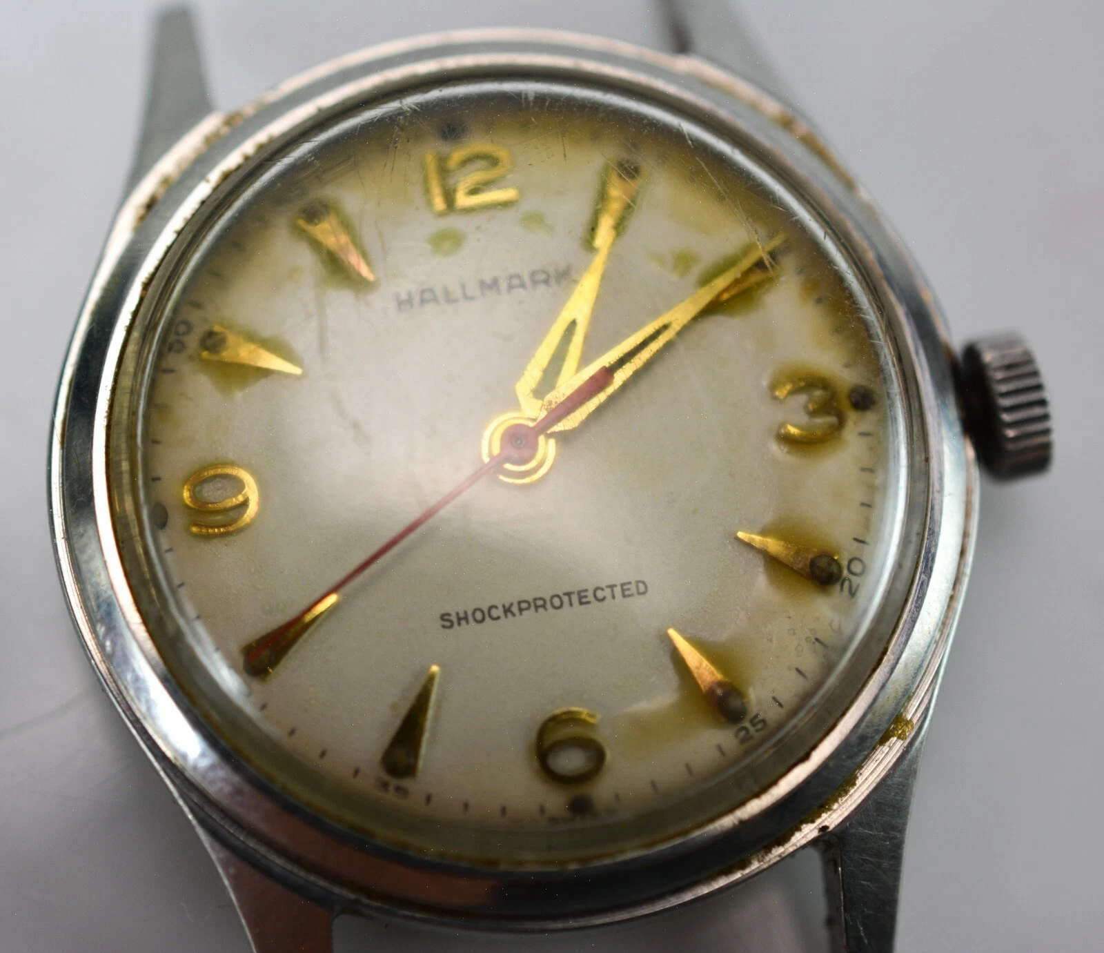 (repair parts) Hallmark 17Jewels Hand Winding Swiss Watch Gold White Vintage