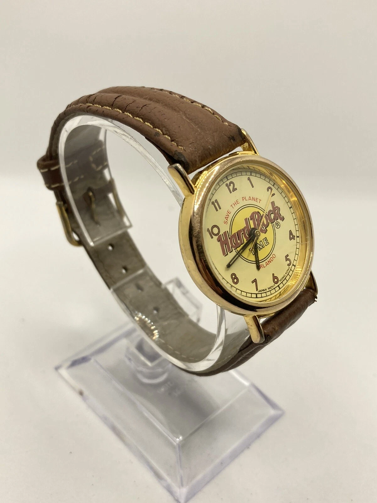 Hard Rock Cafe Orlando Save The Planet Wrist Watch Brown Leather Strap Runs Well