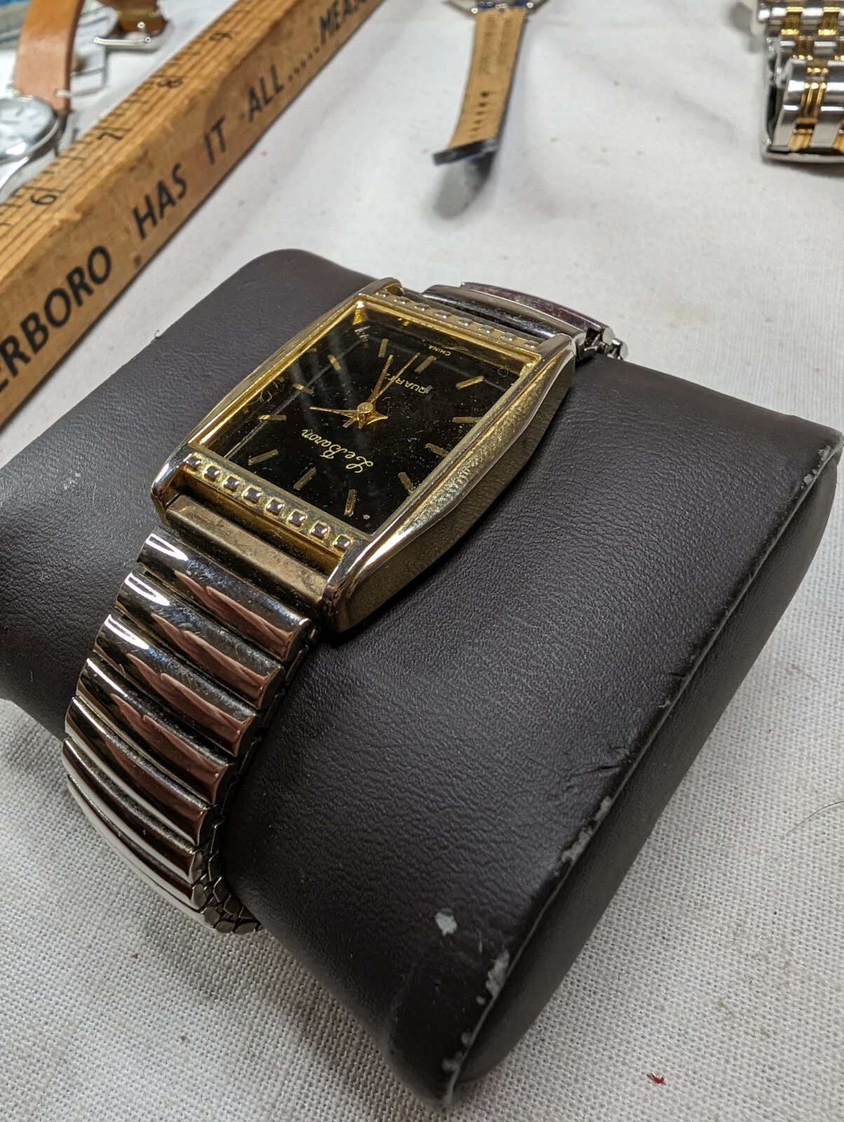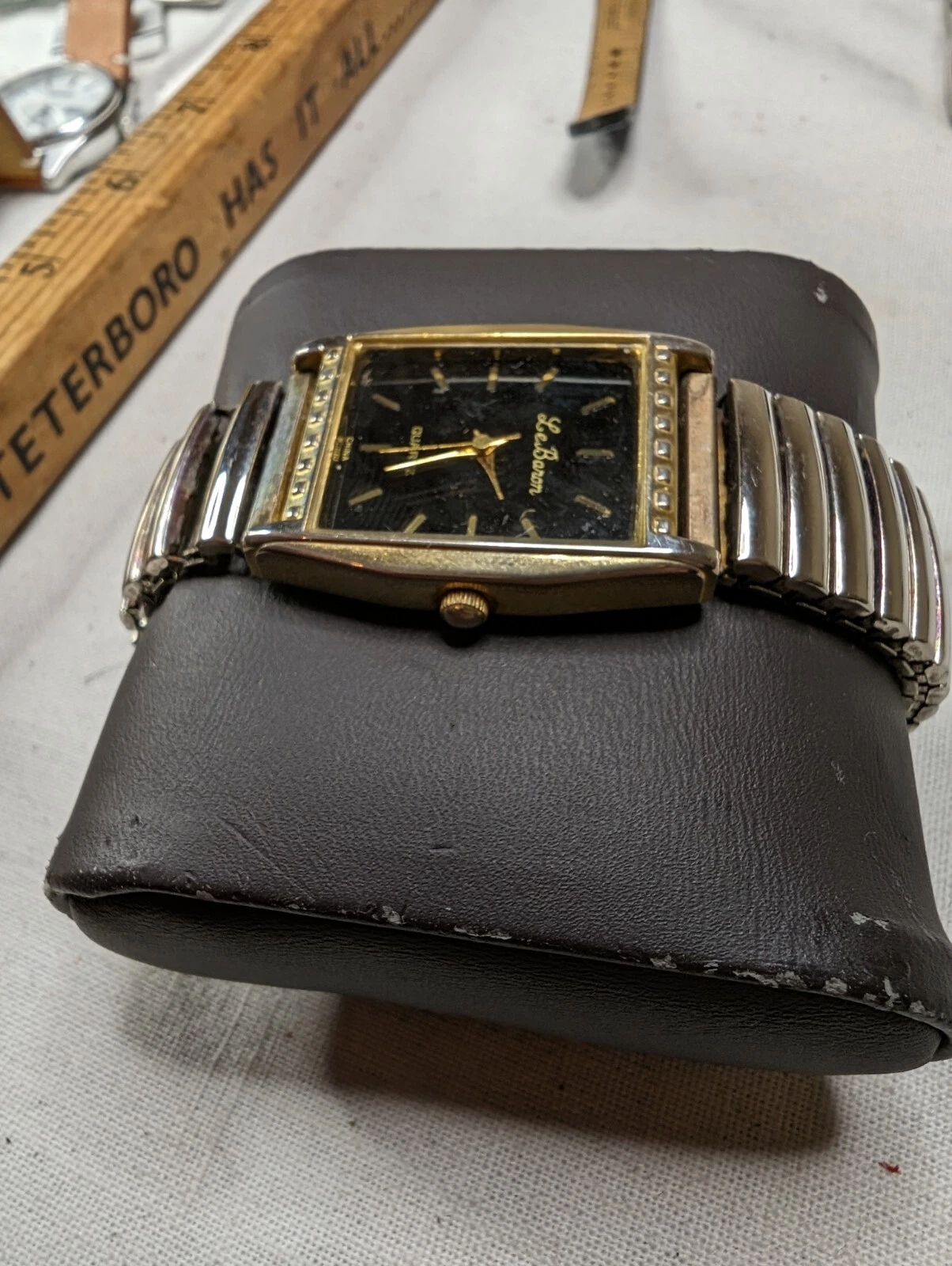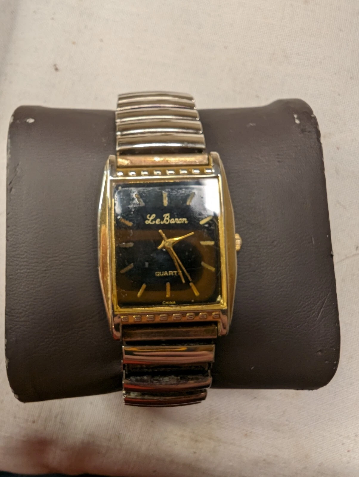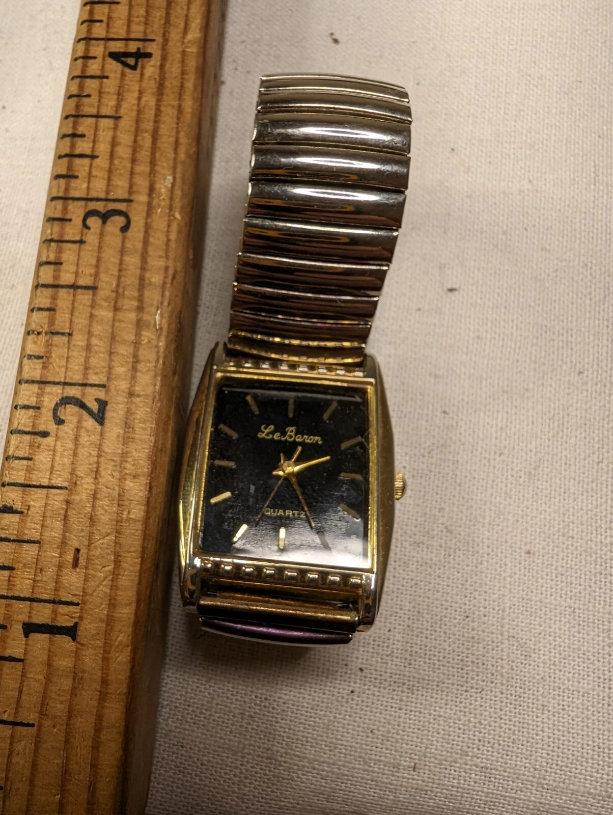 Le Baron Gold Tone Expanding Steel Strap Square Face Analog Quartz Watch Ladies