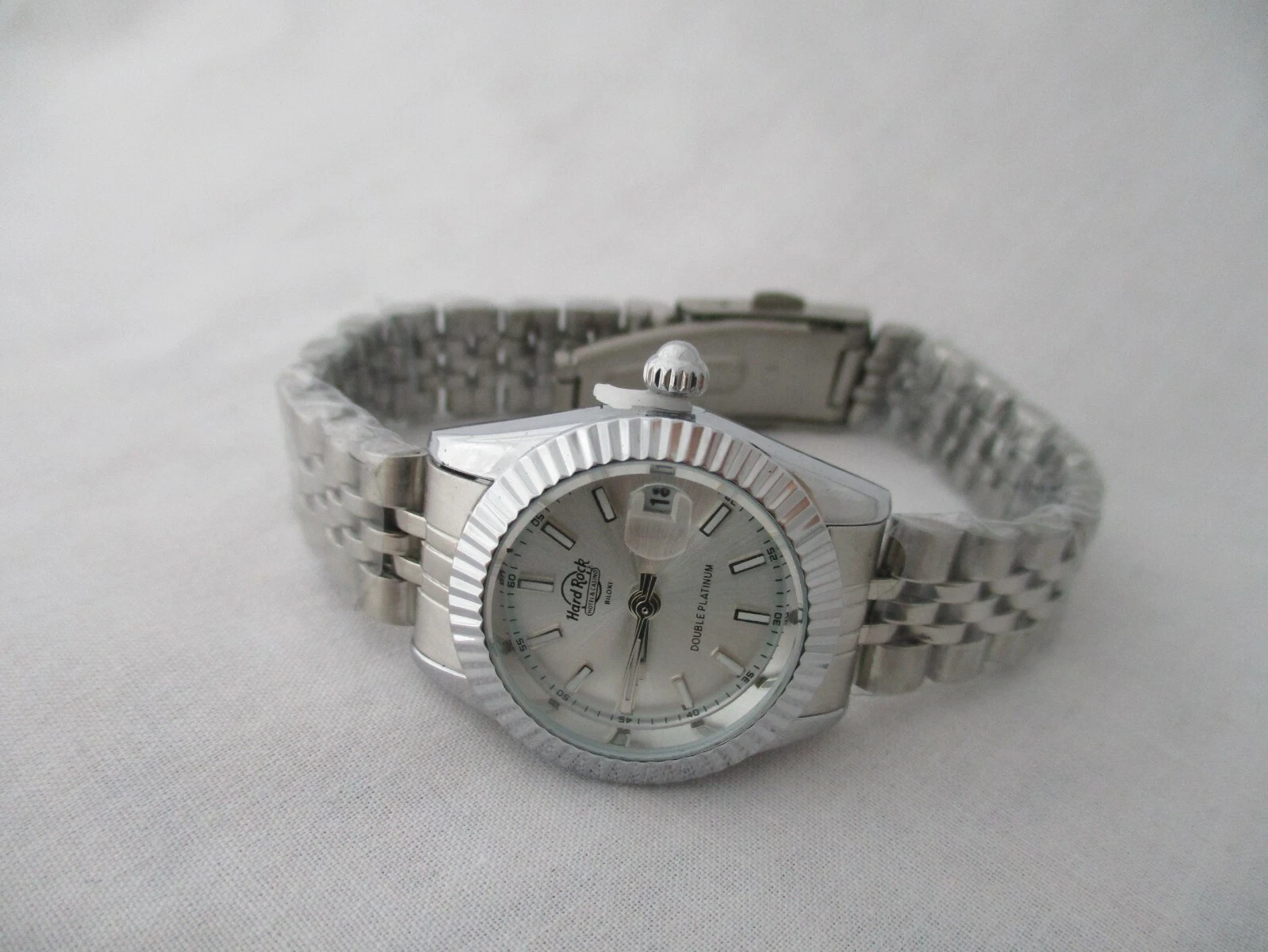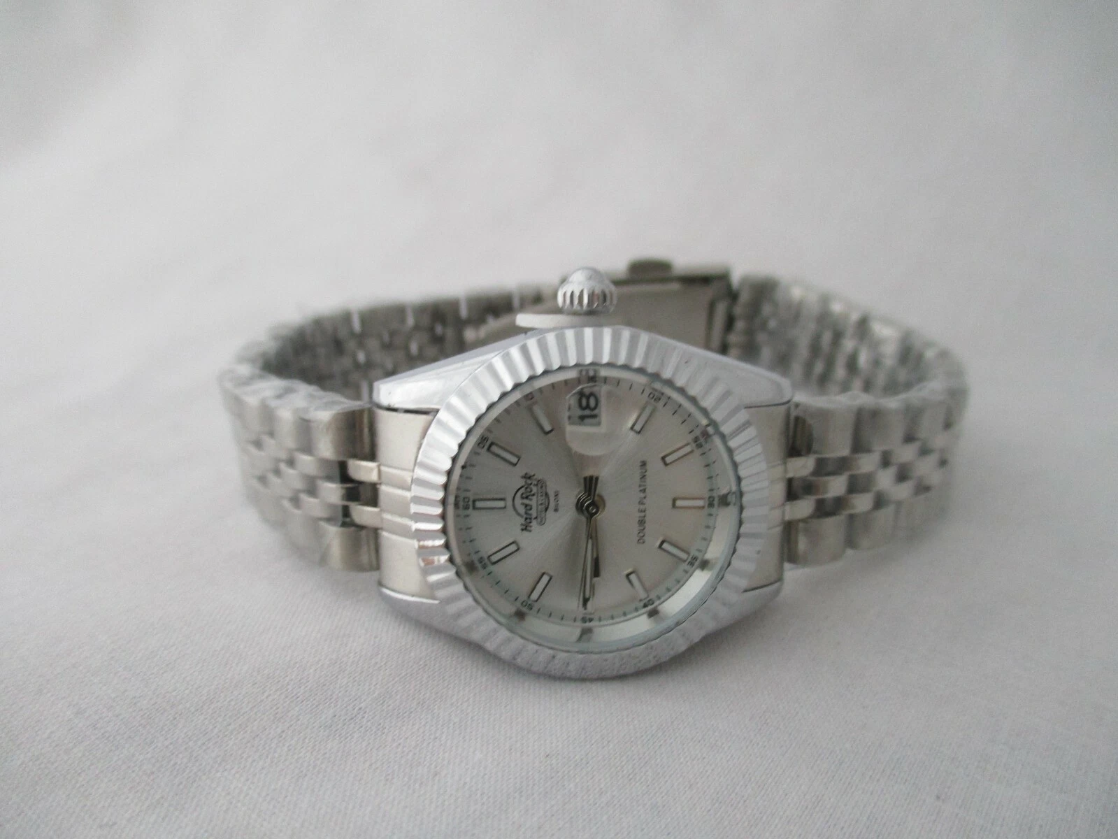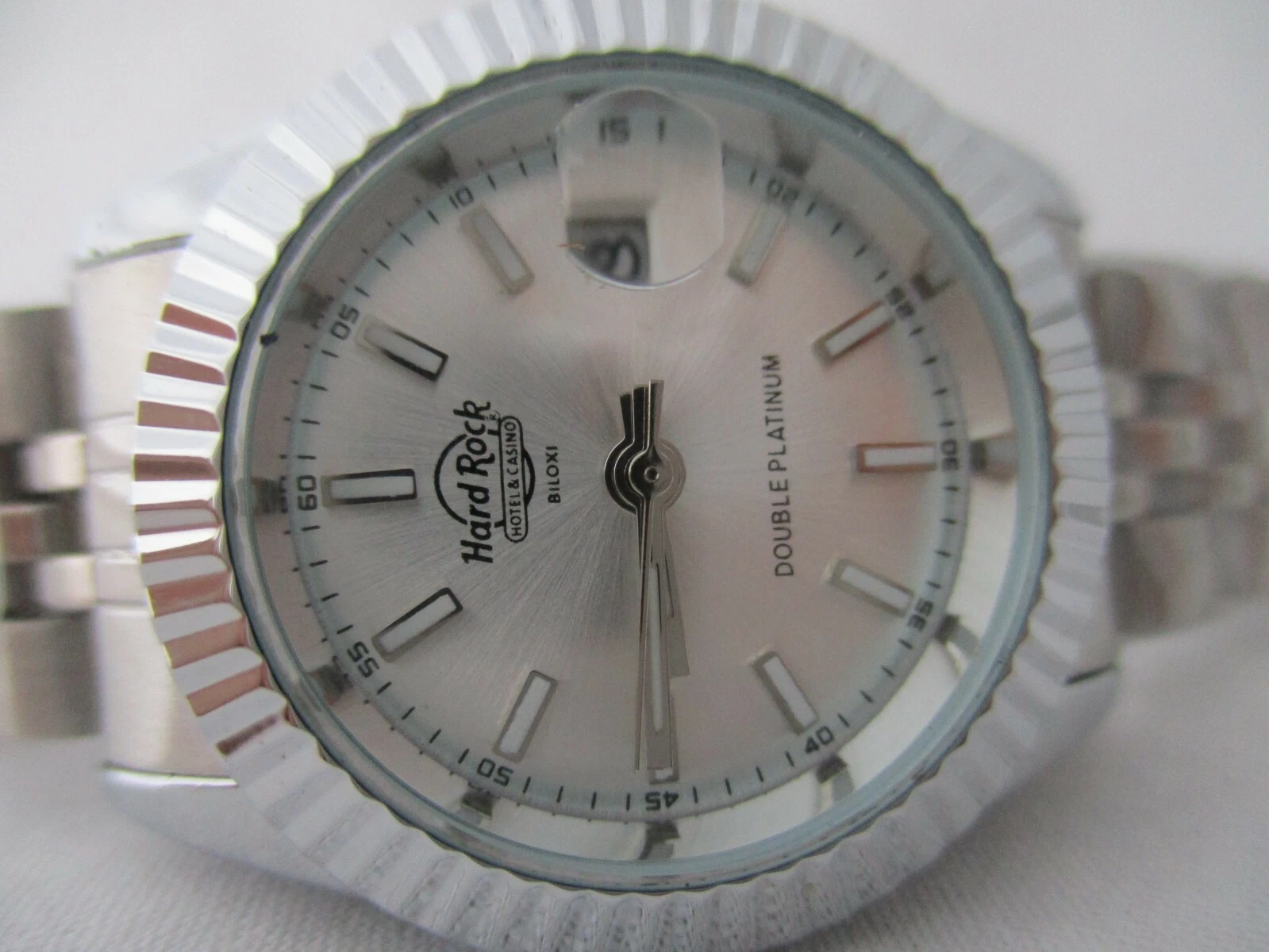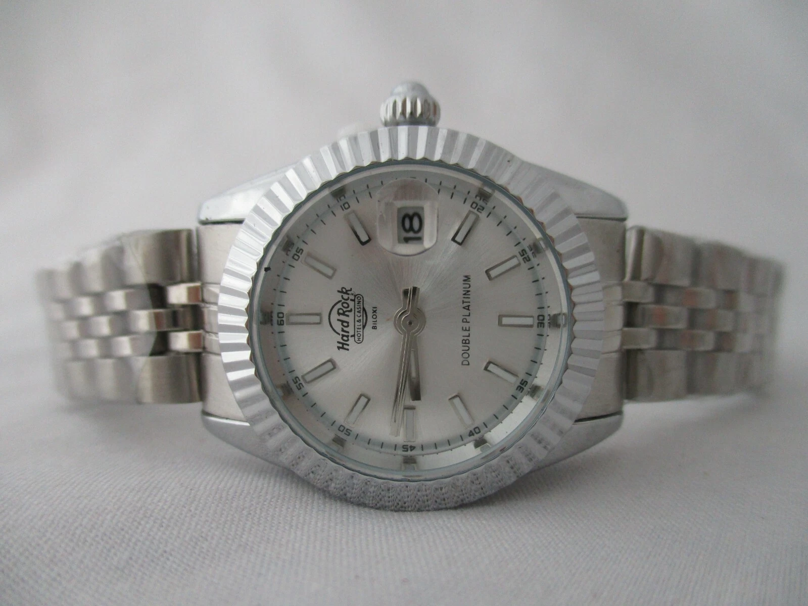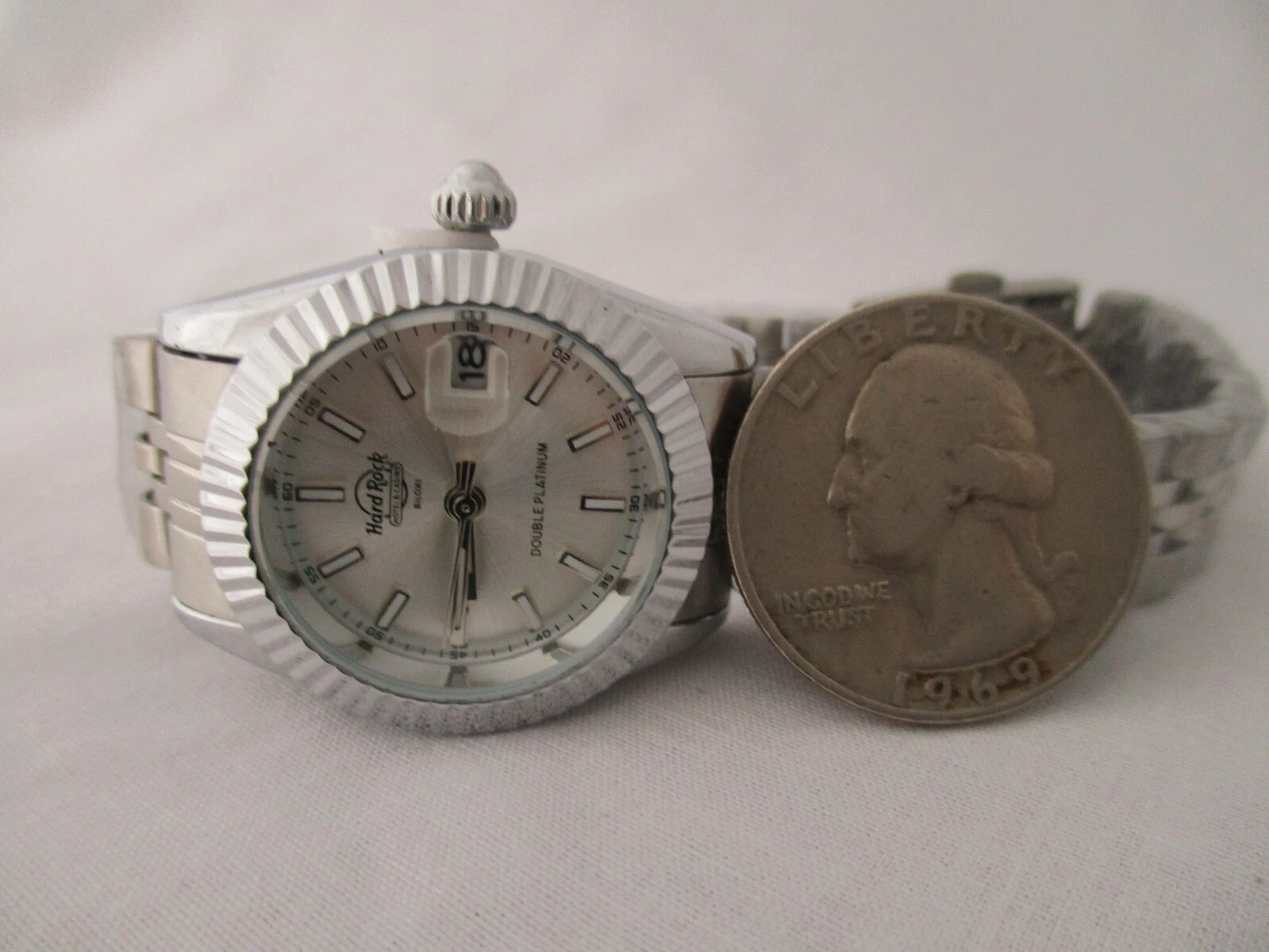 Hard Rock Cafe Wristwatch Silver Tone Stainless Steel Band Double Platinum