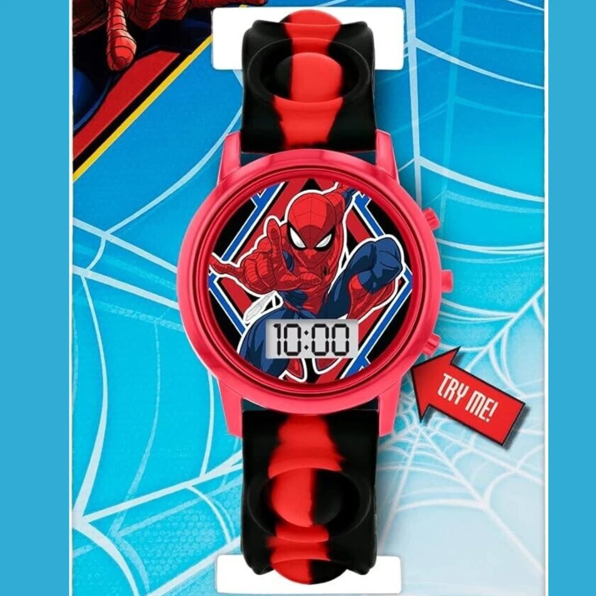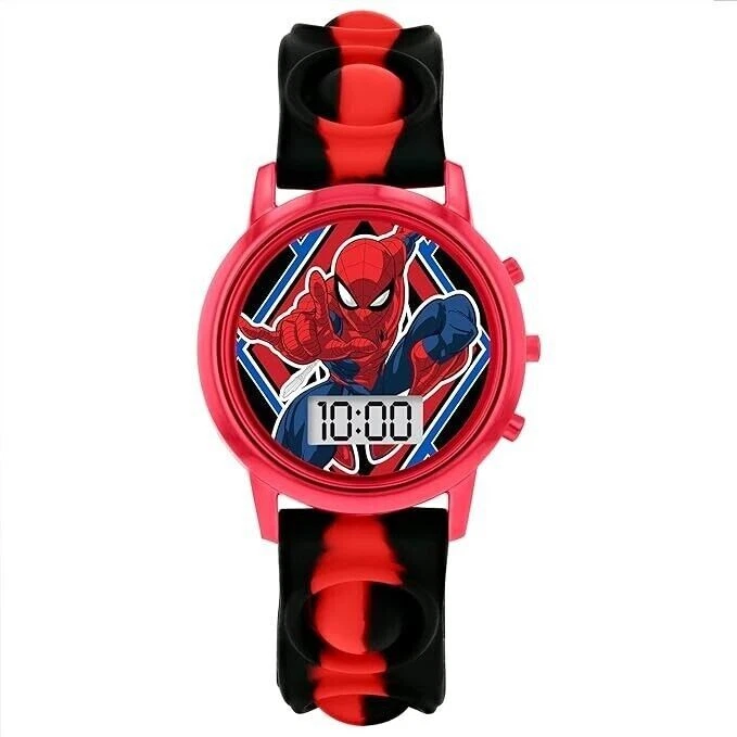 Spiderman Boy's Digital Quartz Wrist Watch with Silicone Fidget Black Red Strap