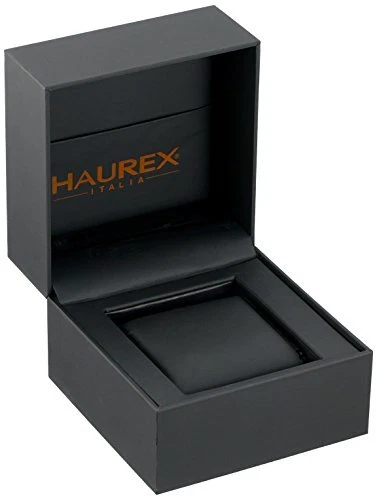 Haurex Italy Men's 6A508UON Gun Blue Dial Black Leather Wristwatch