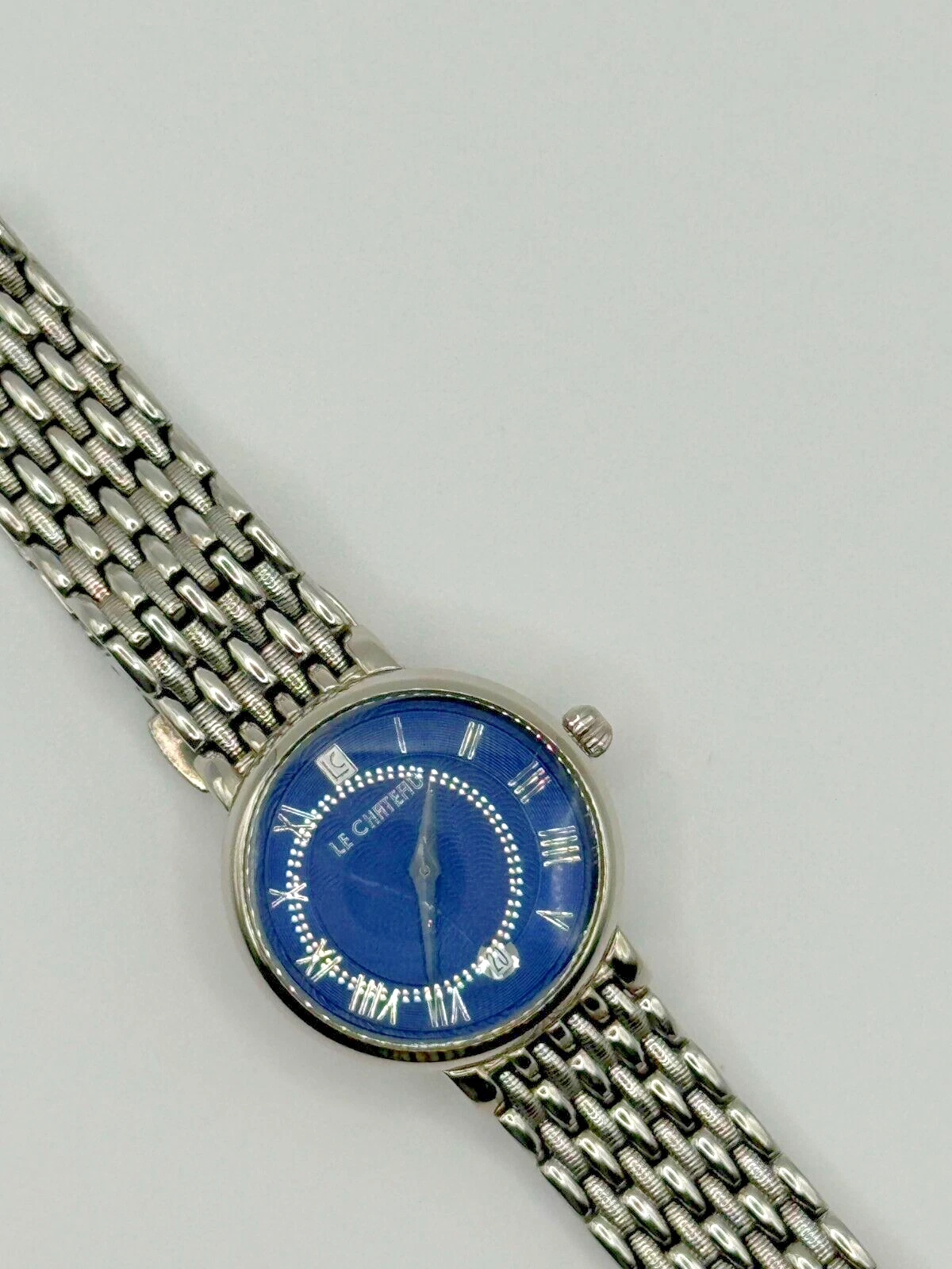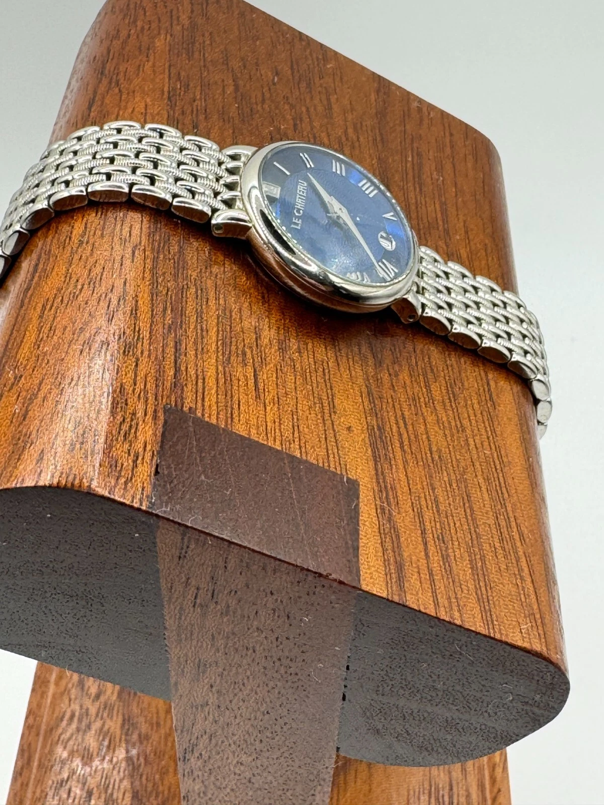 Le Chateau Women's Watch - Silver Tone Blue Sunburst Dial w/Date - New Battery