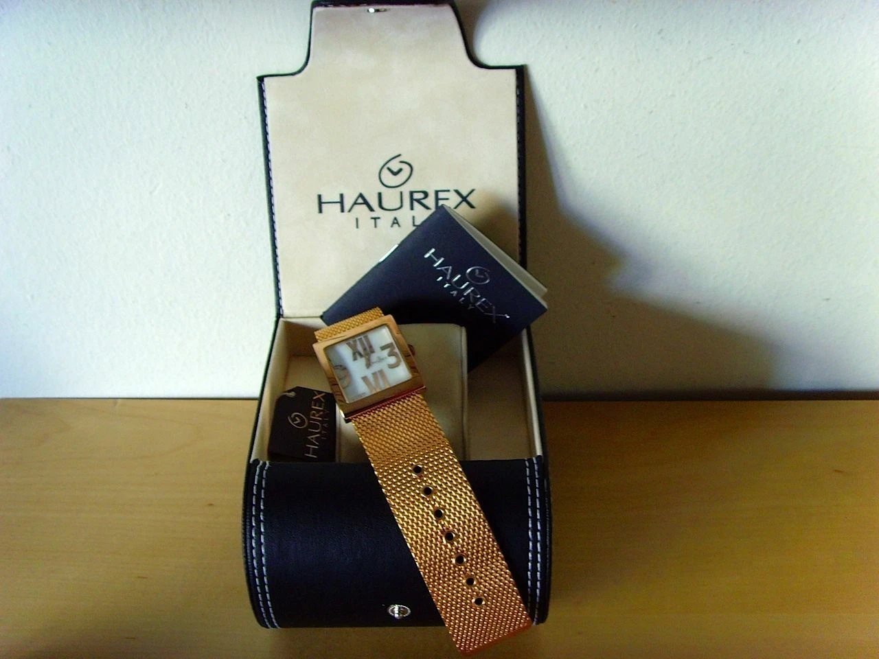 New - Watch Montre Haurex Italy - Plaque Gold Pink Quartz - Box & Papers