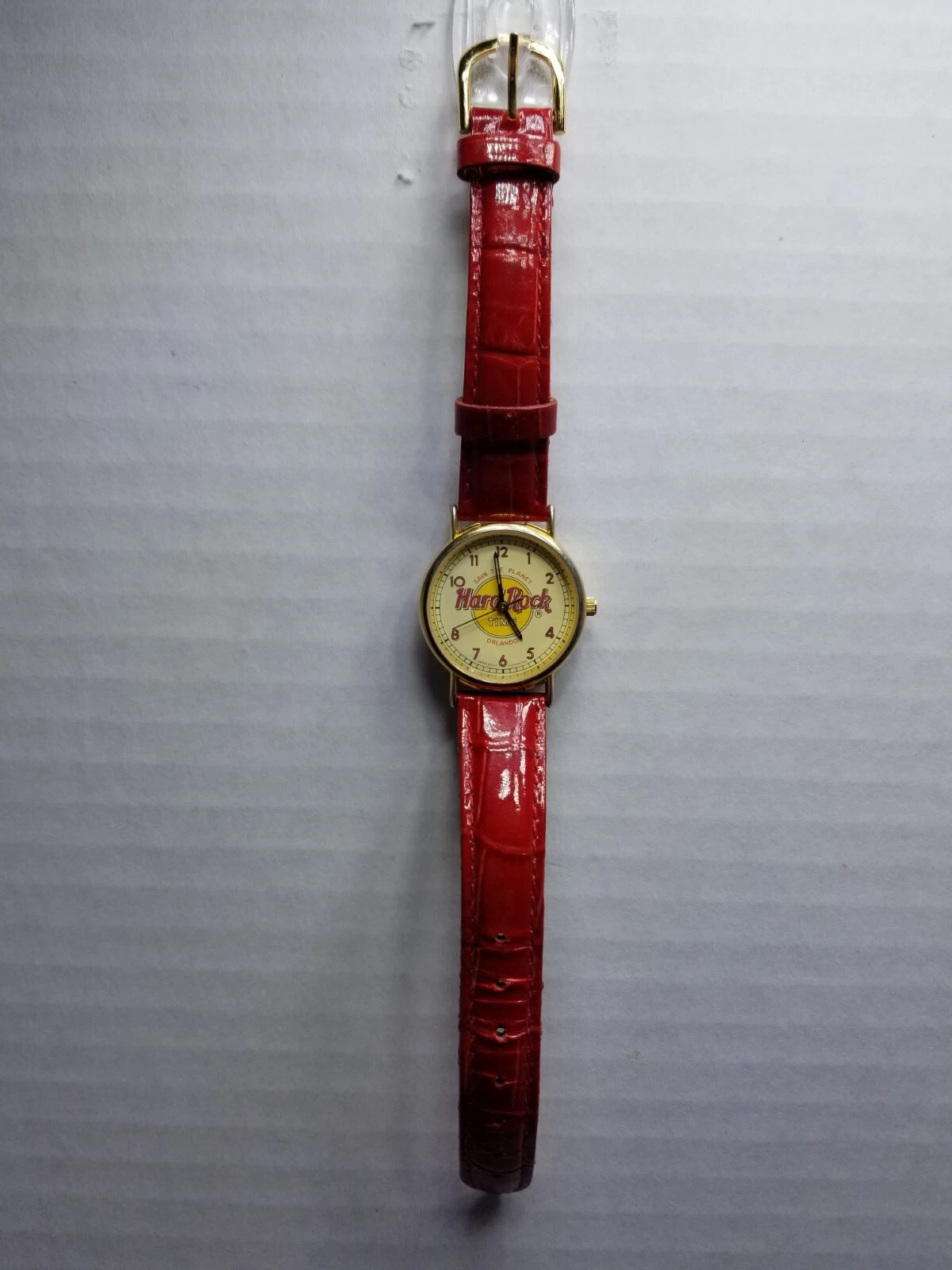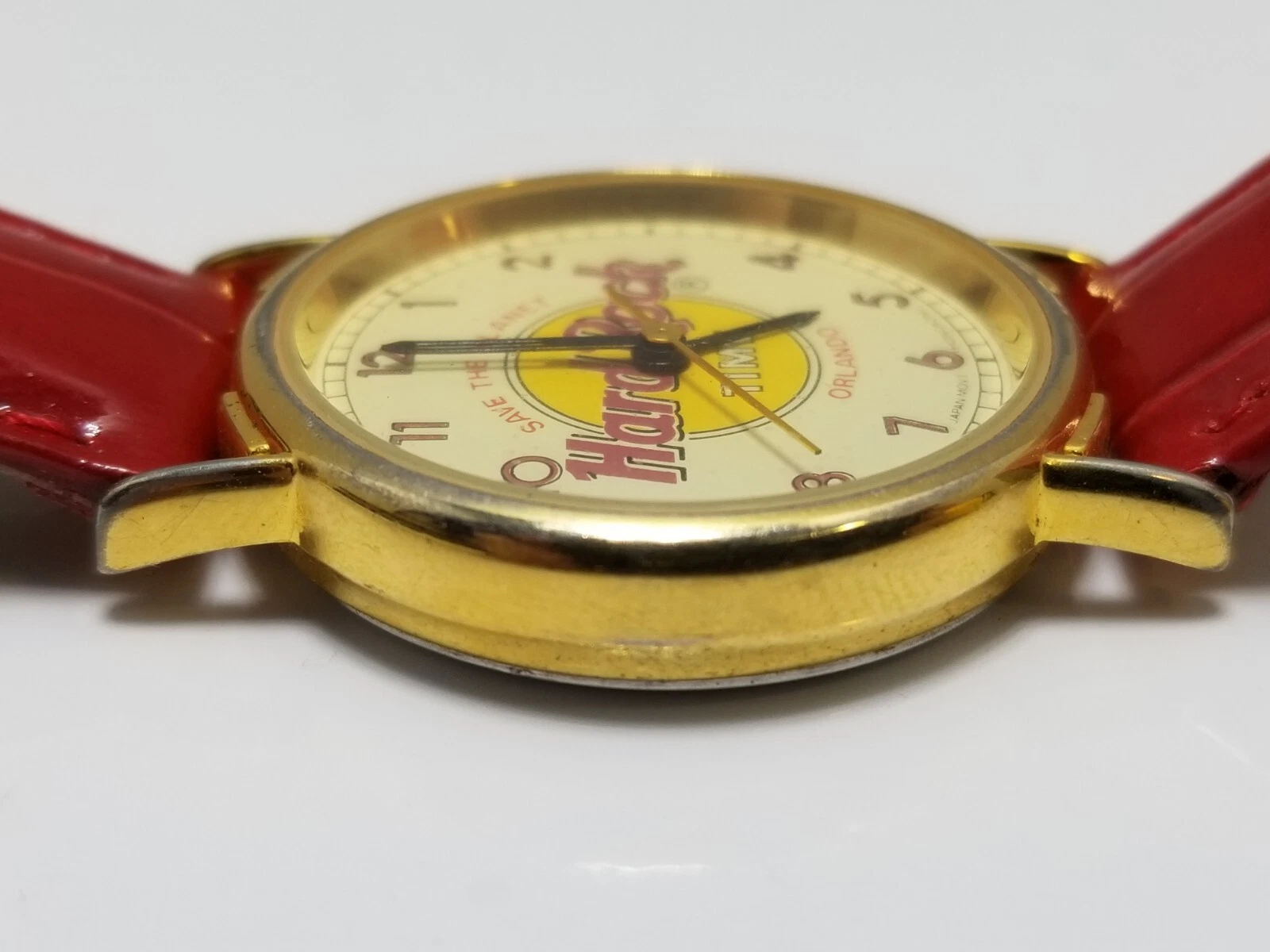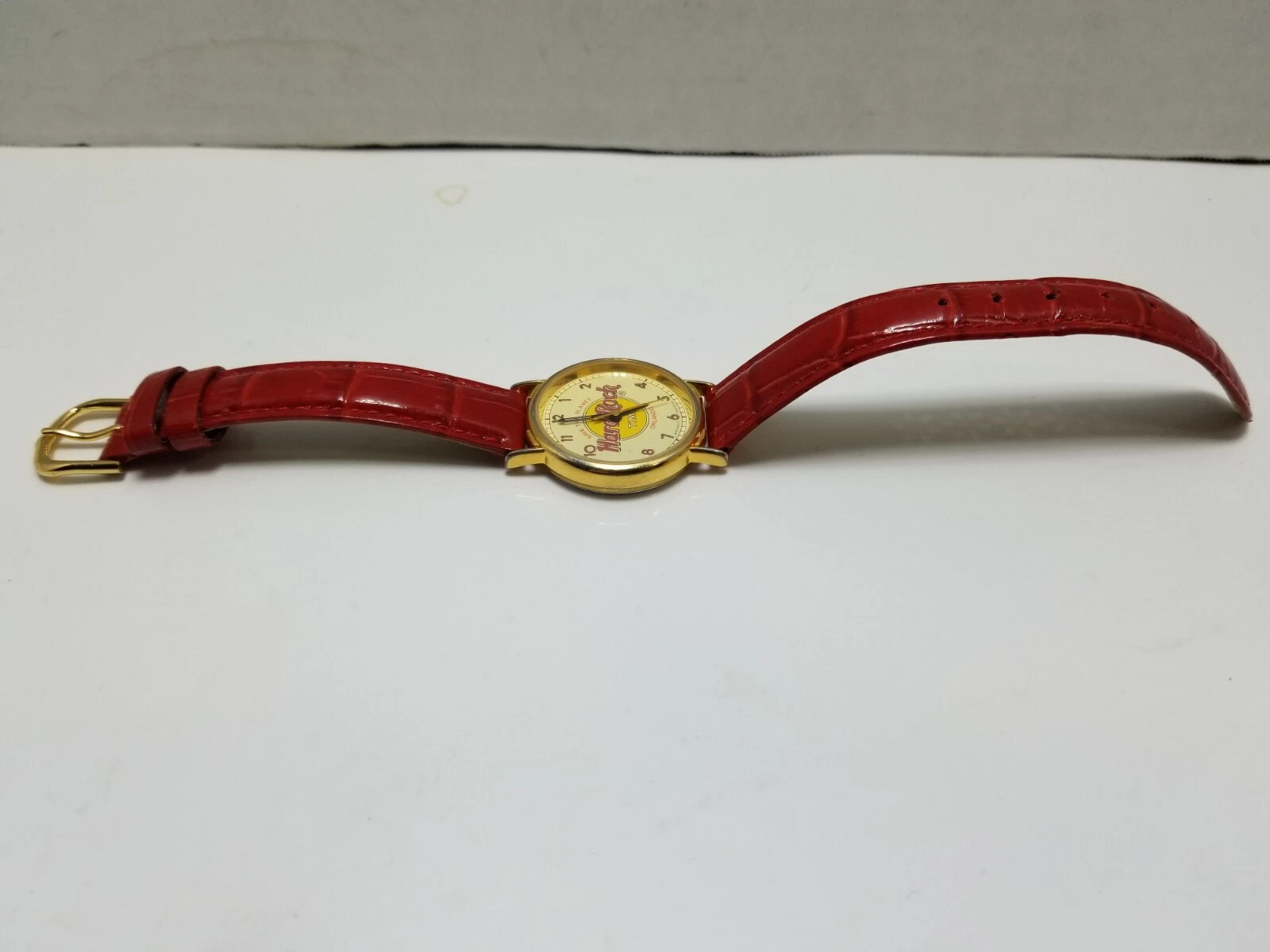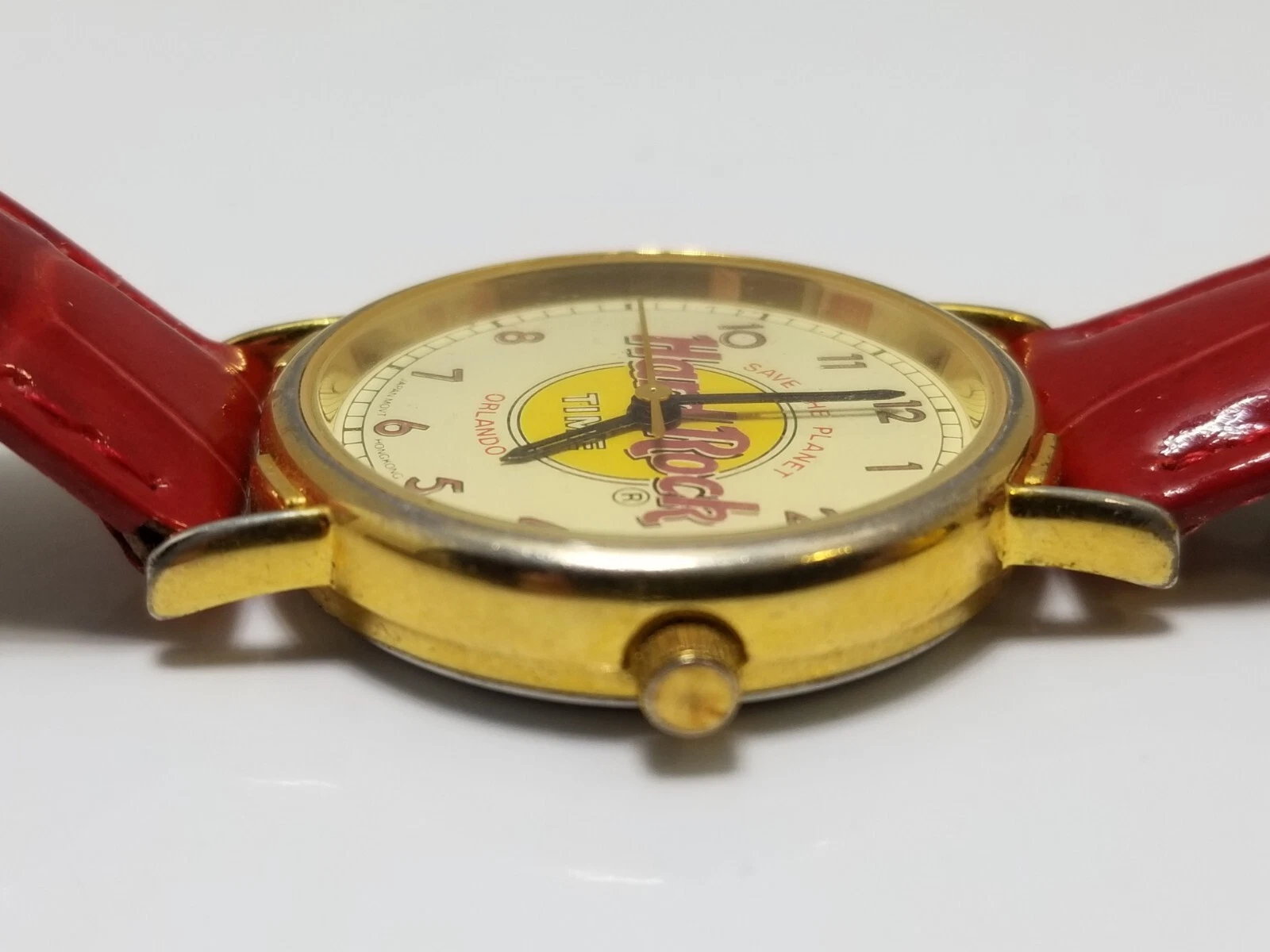 Hard Rock Cafe Watch Orlando Gold Tone Case Red Leather Band Works