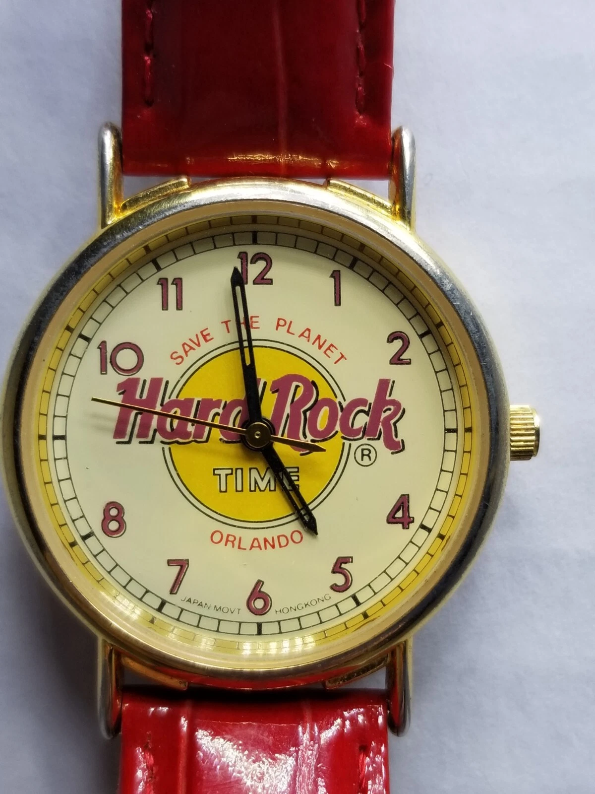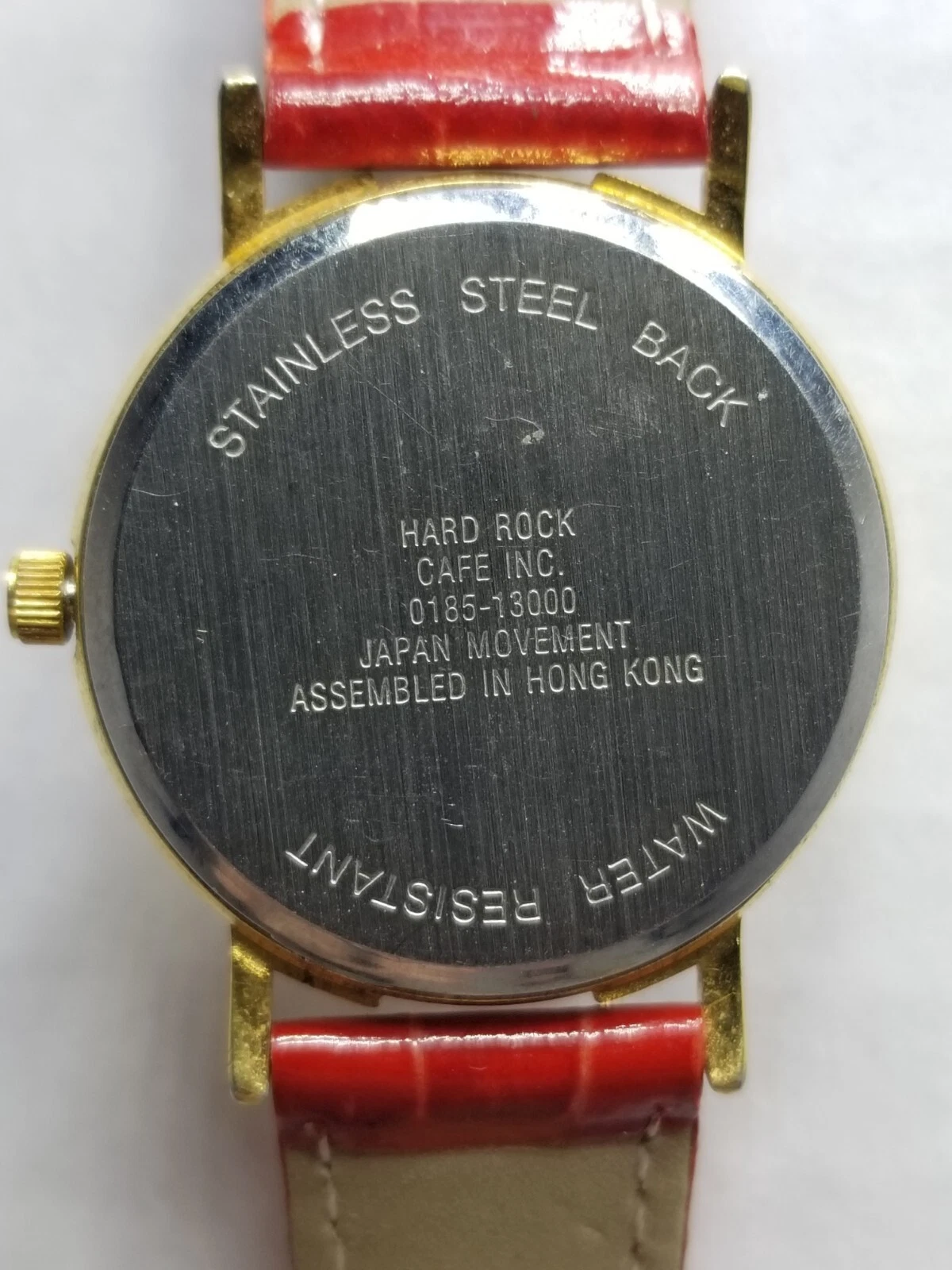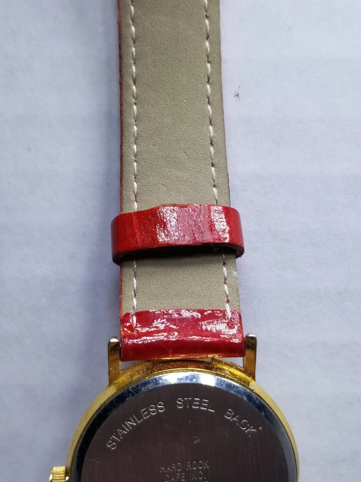 Hard Rock Cafe Watch Orlando Gold Tone Case Red Leather Band Works