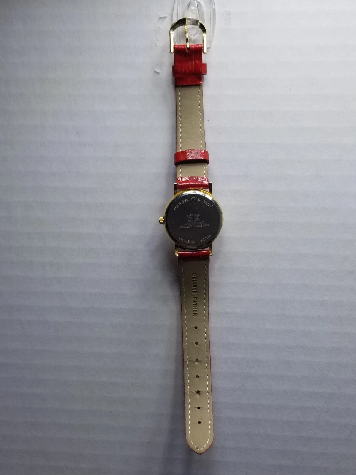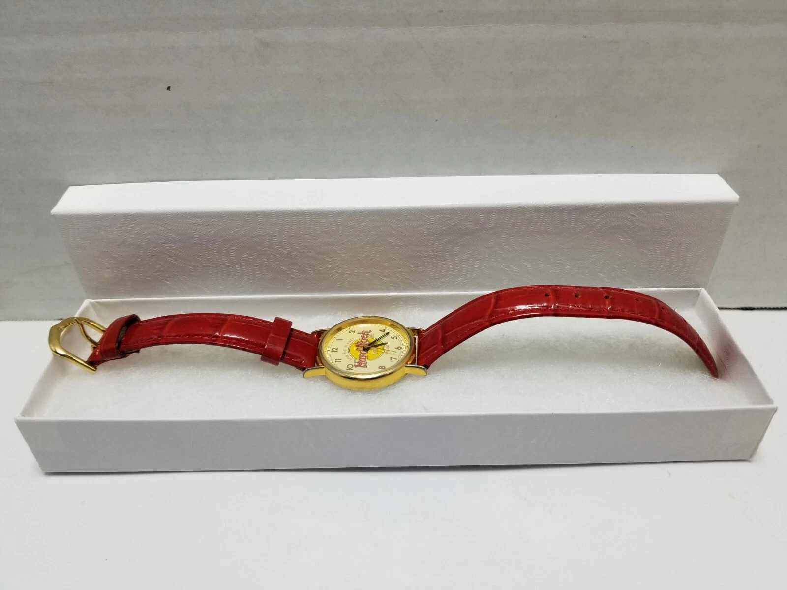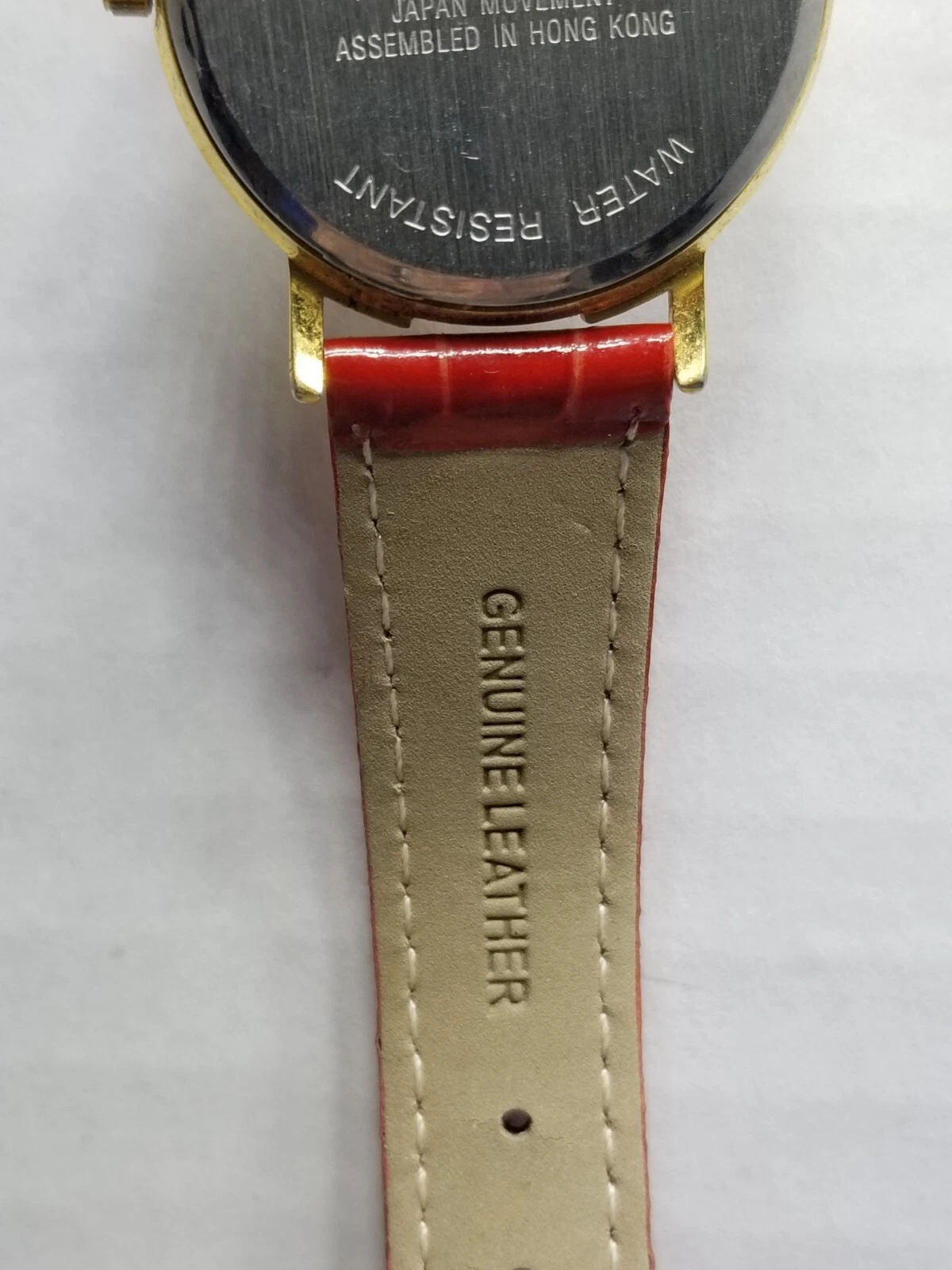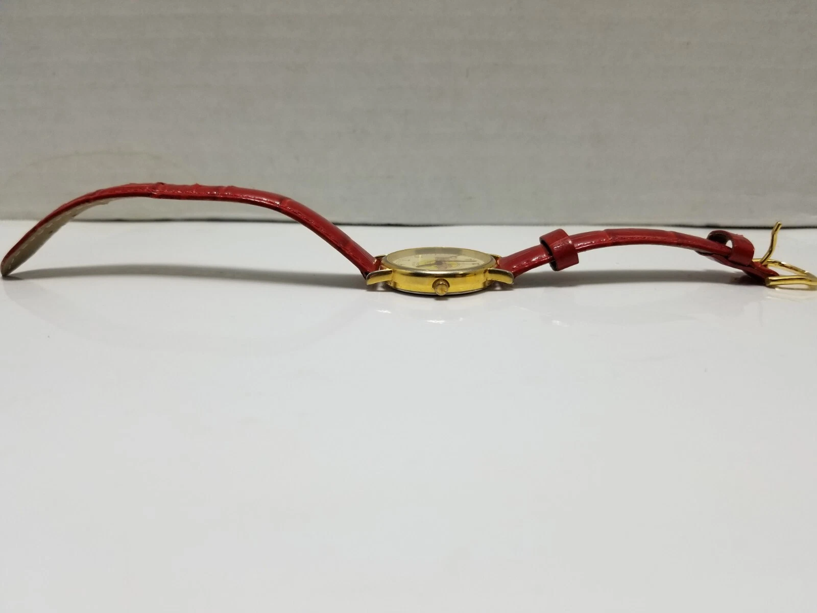 Hard Rock Cafe Watch Orlando Gold Tone Case Red Leather Band Works