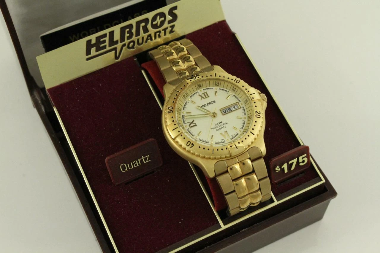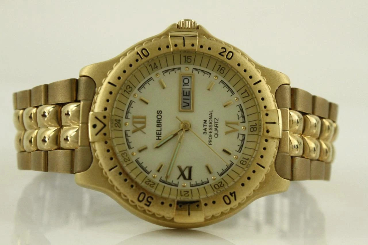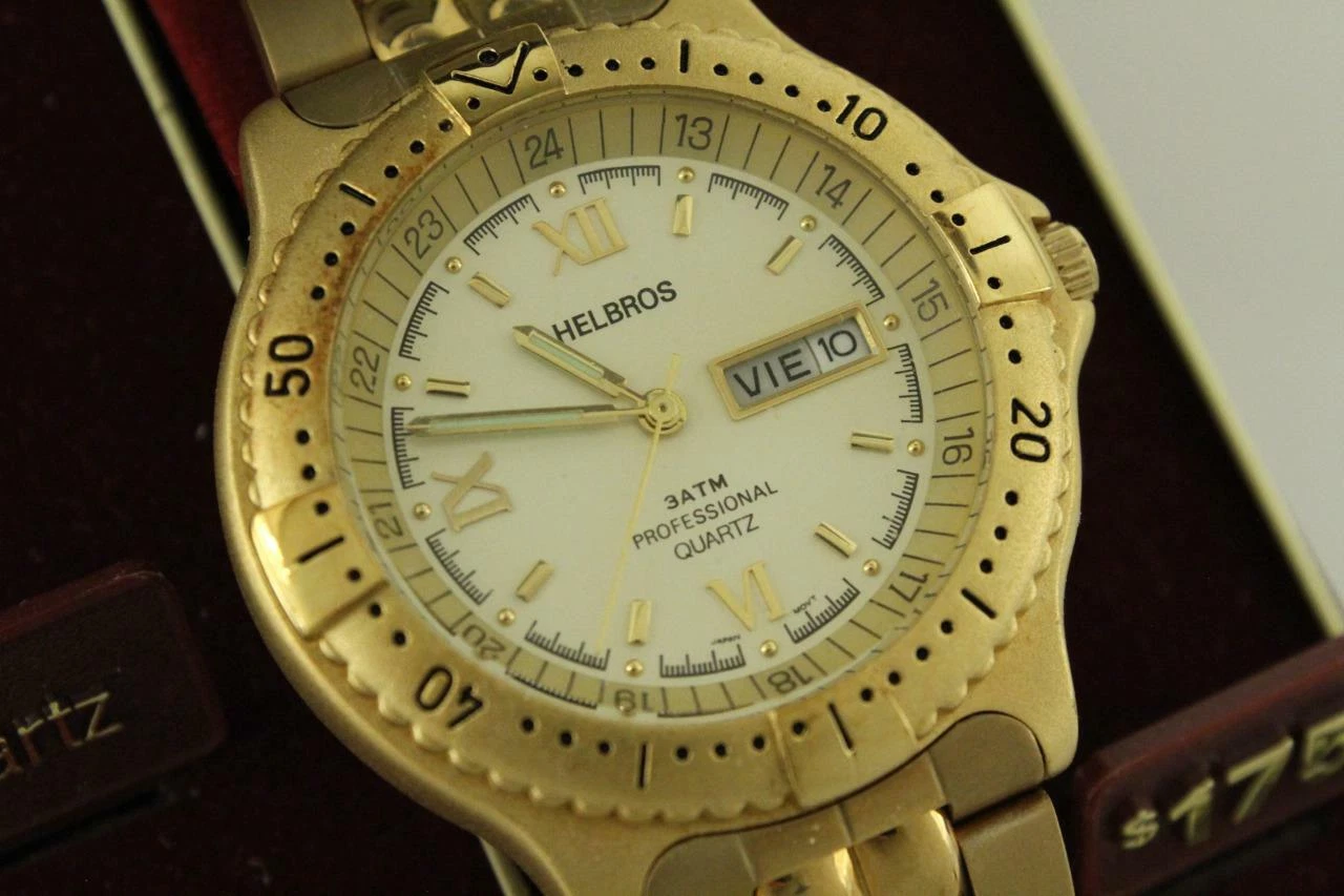 MODERN Estate Jewelry Watch HELBROS Quartz 3ATM Professional Gold Tone 87431B