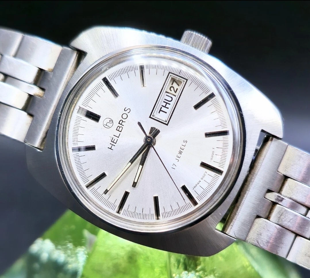 Vintage HELBROS 1960's Retro Manual Wind Day/Date Men's Watch W/ Superb Design !