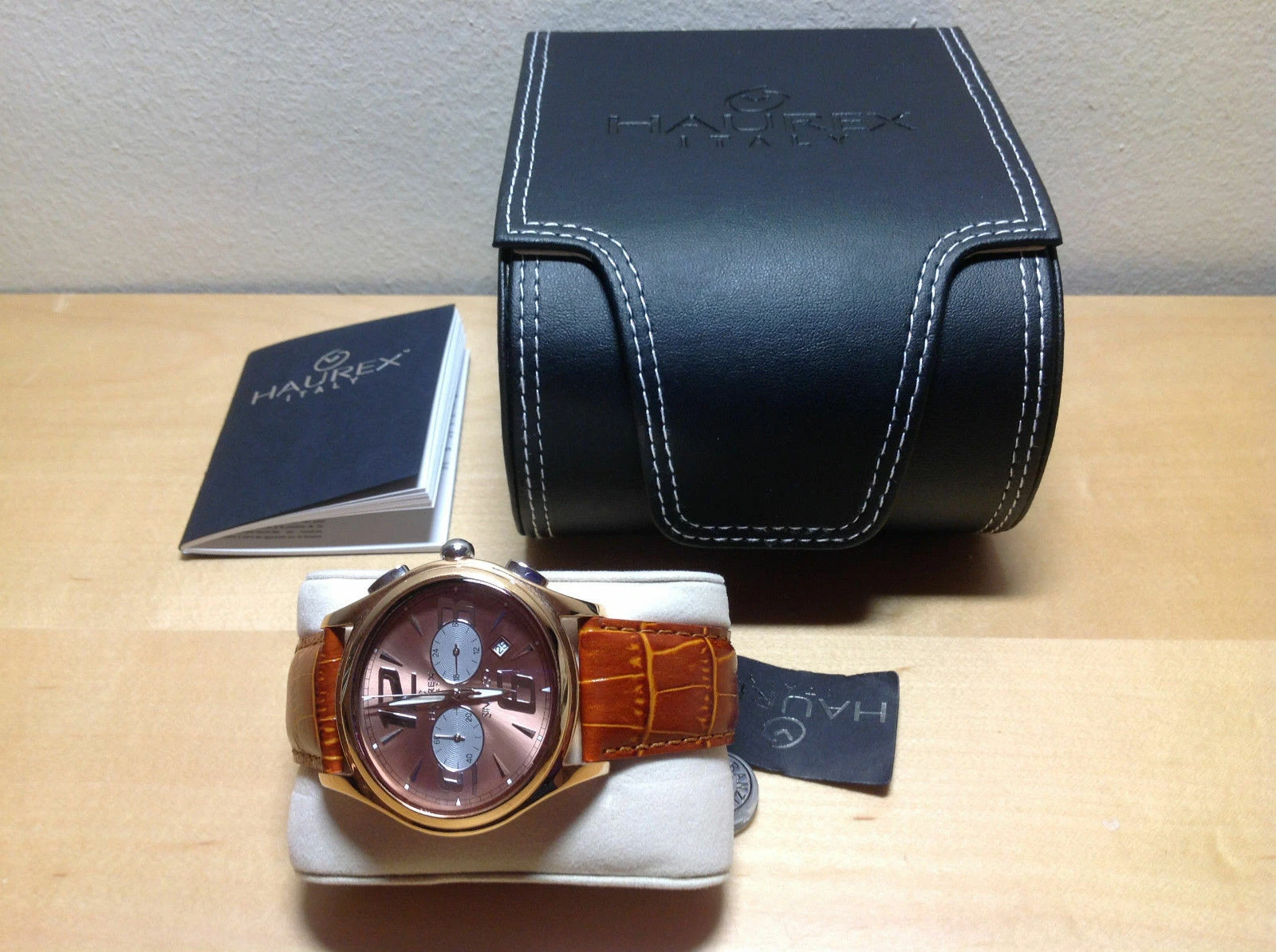 New - Watch Montre Haurex Italy Chronograph - Quartz - Brown Leather