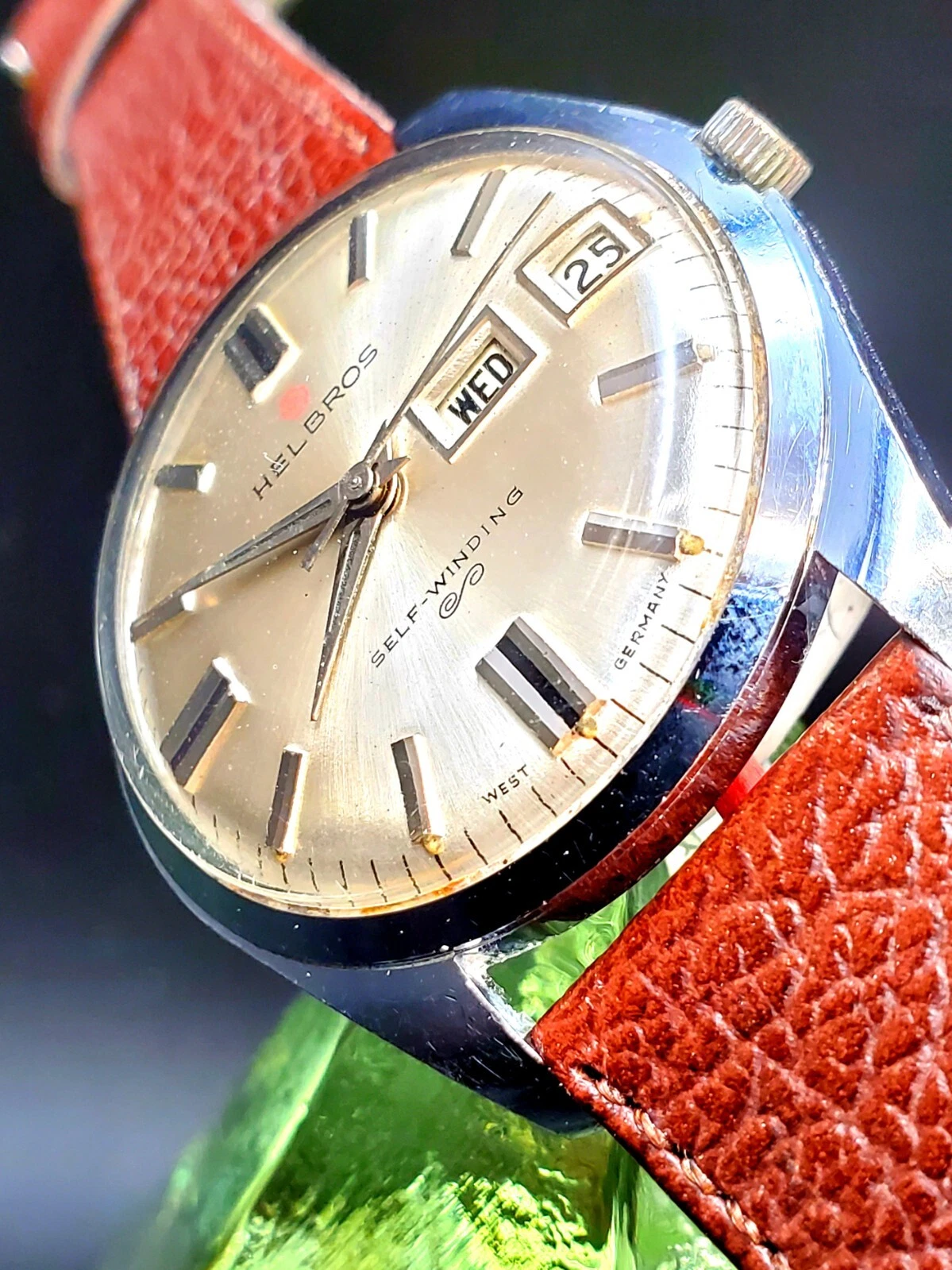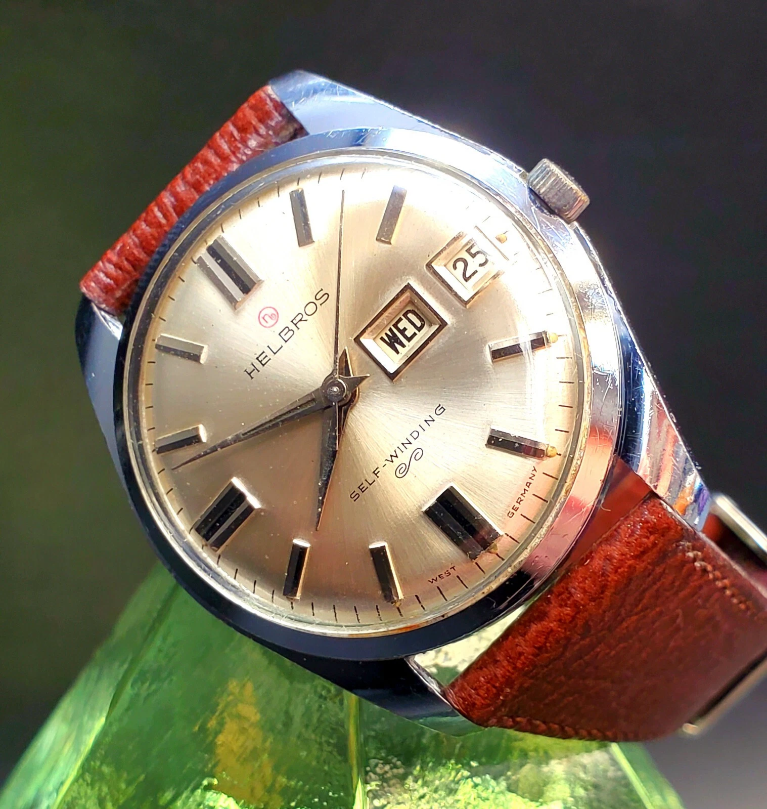 Vintage HELBROS 1960's Automatic Stainless Steel Day & Date Men's Watch !!