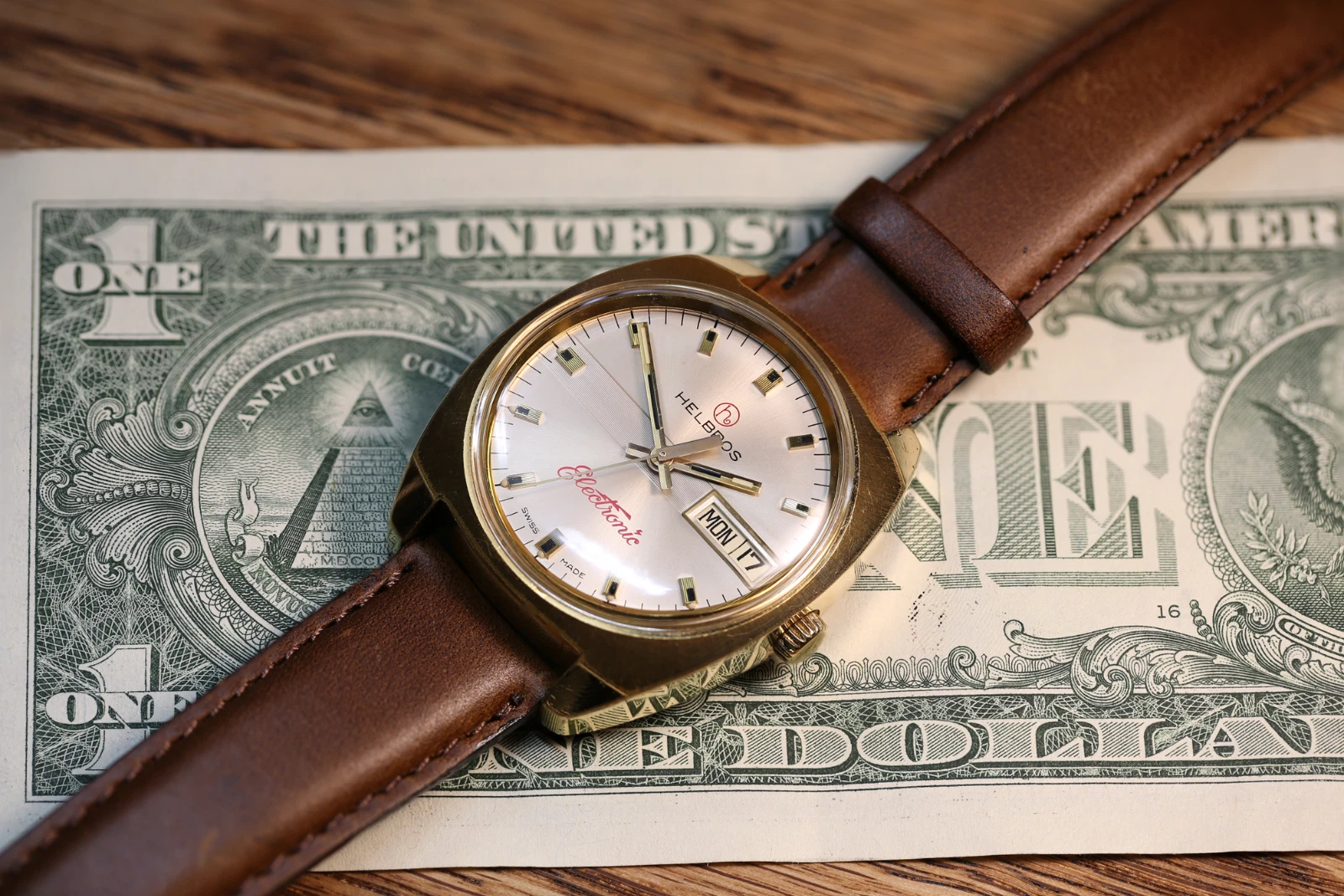 Vintage Swiss HELBROS Electronic Transistorized 7 Jewels Day Date Men Watch